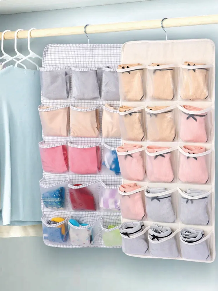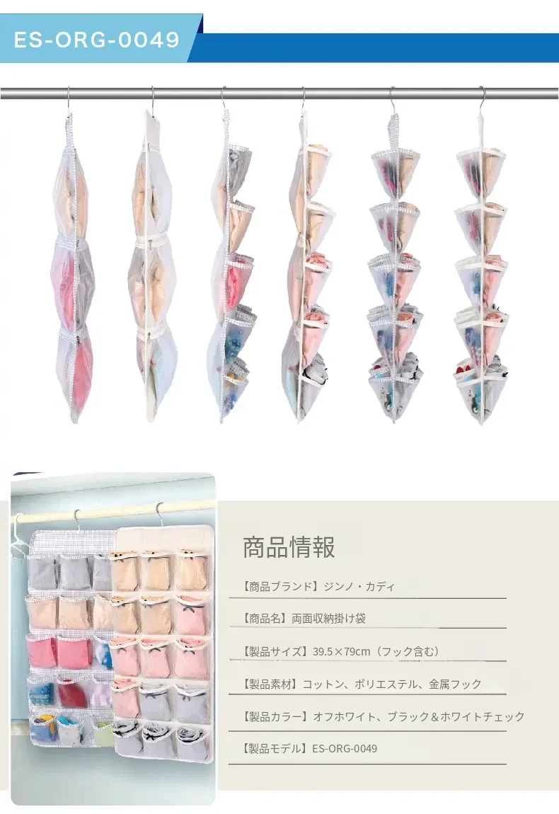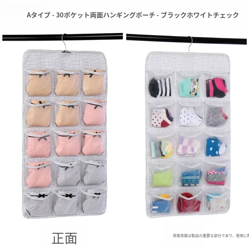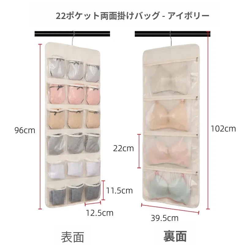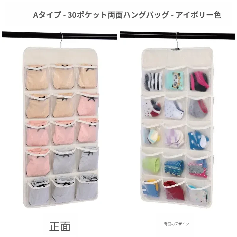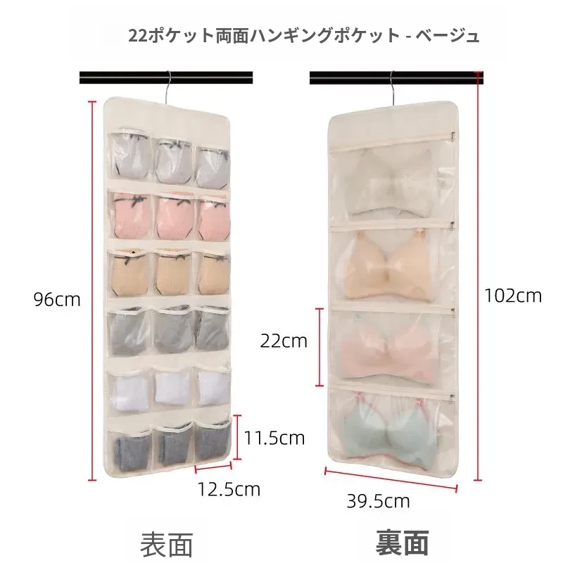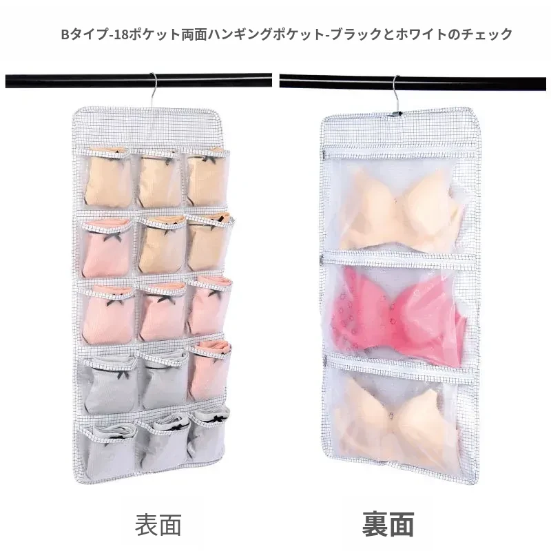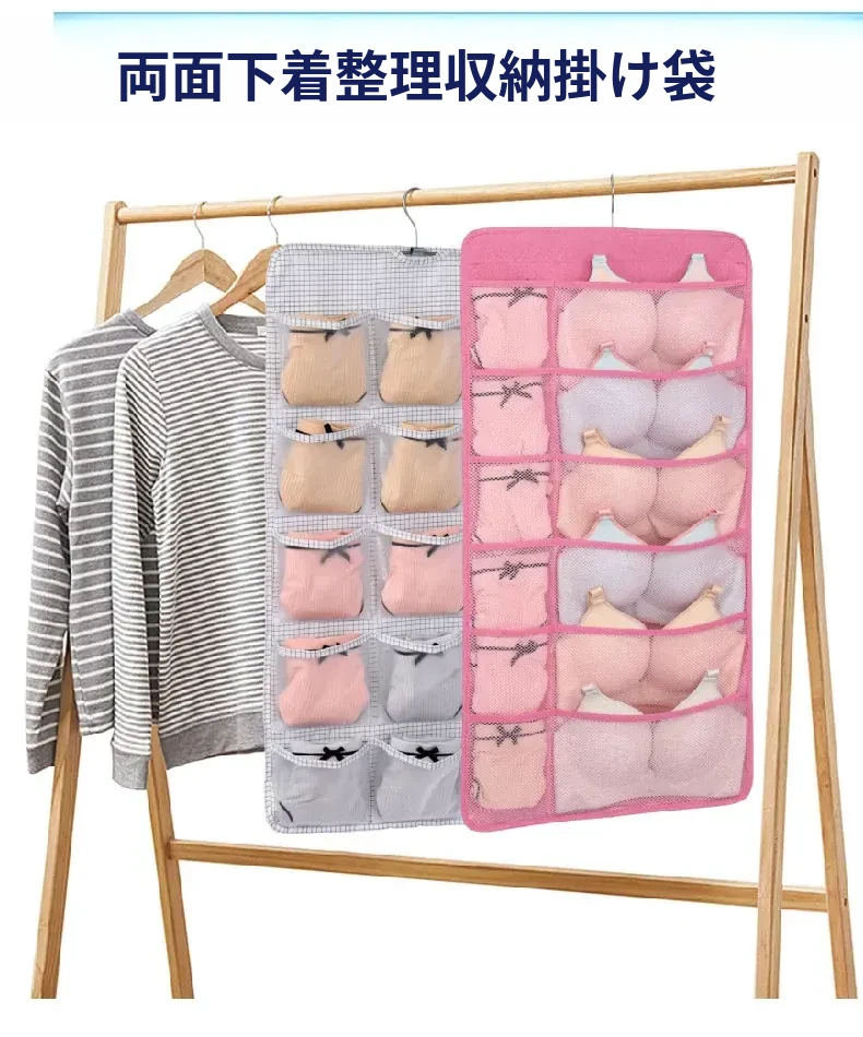 防塵内衣収納袋 ダブルサイドハンギング ソックスオーガナイザー 壁掛けパンツ収納ポケット 整理整頓に最適!おしゃれで実用的、あなたのクローゼットをスッキリさせます!