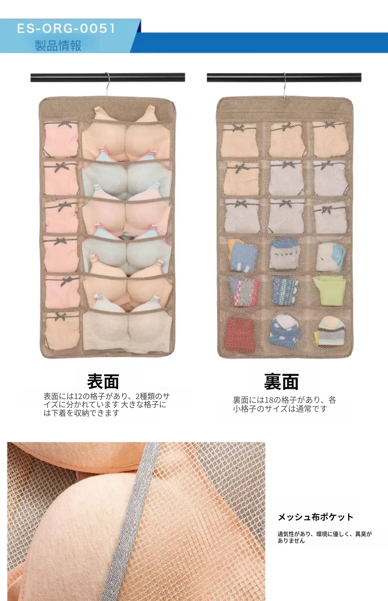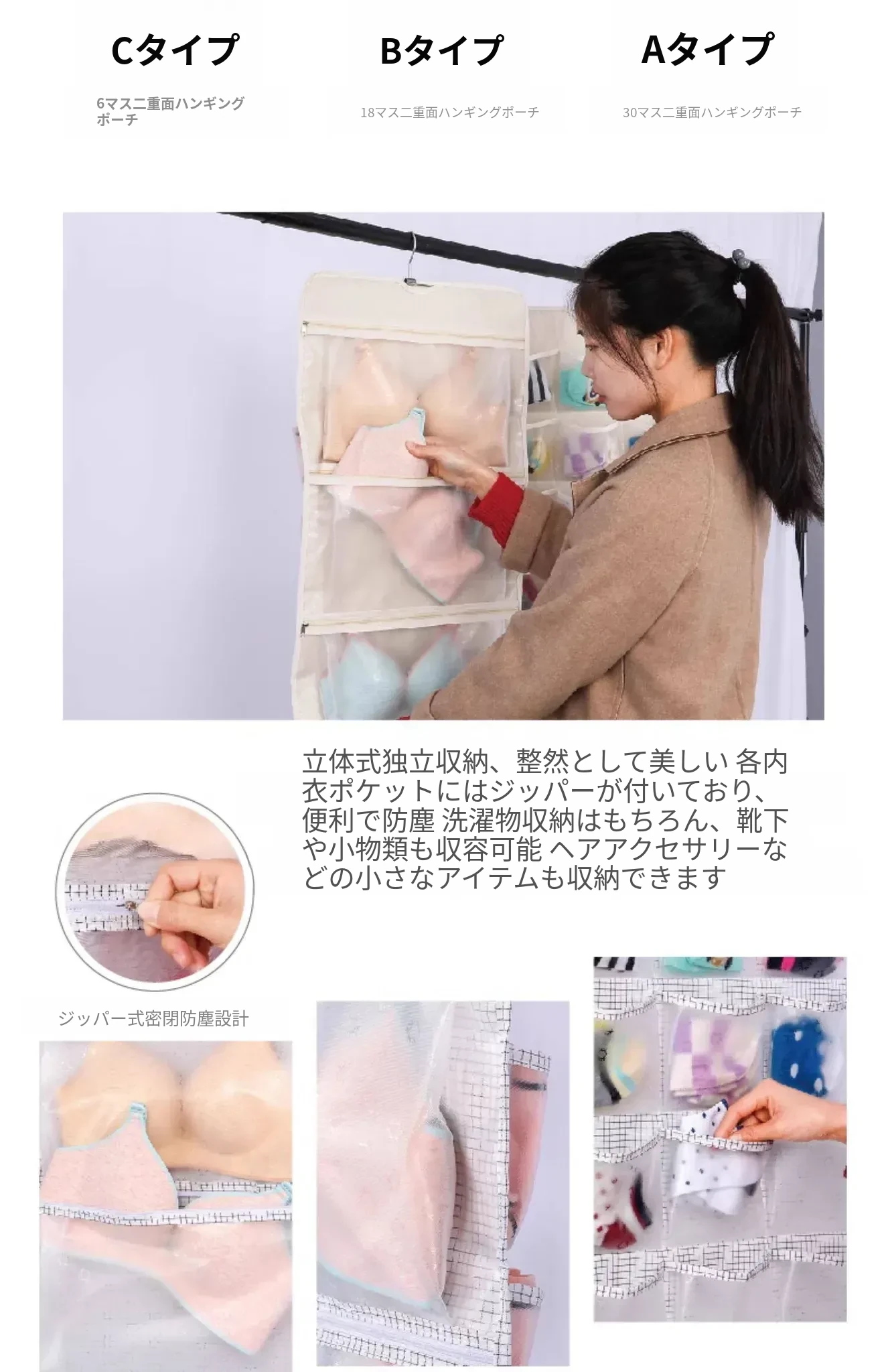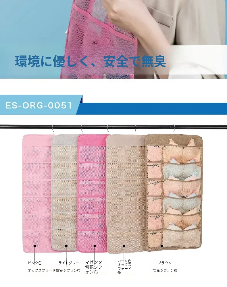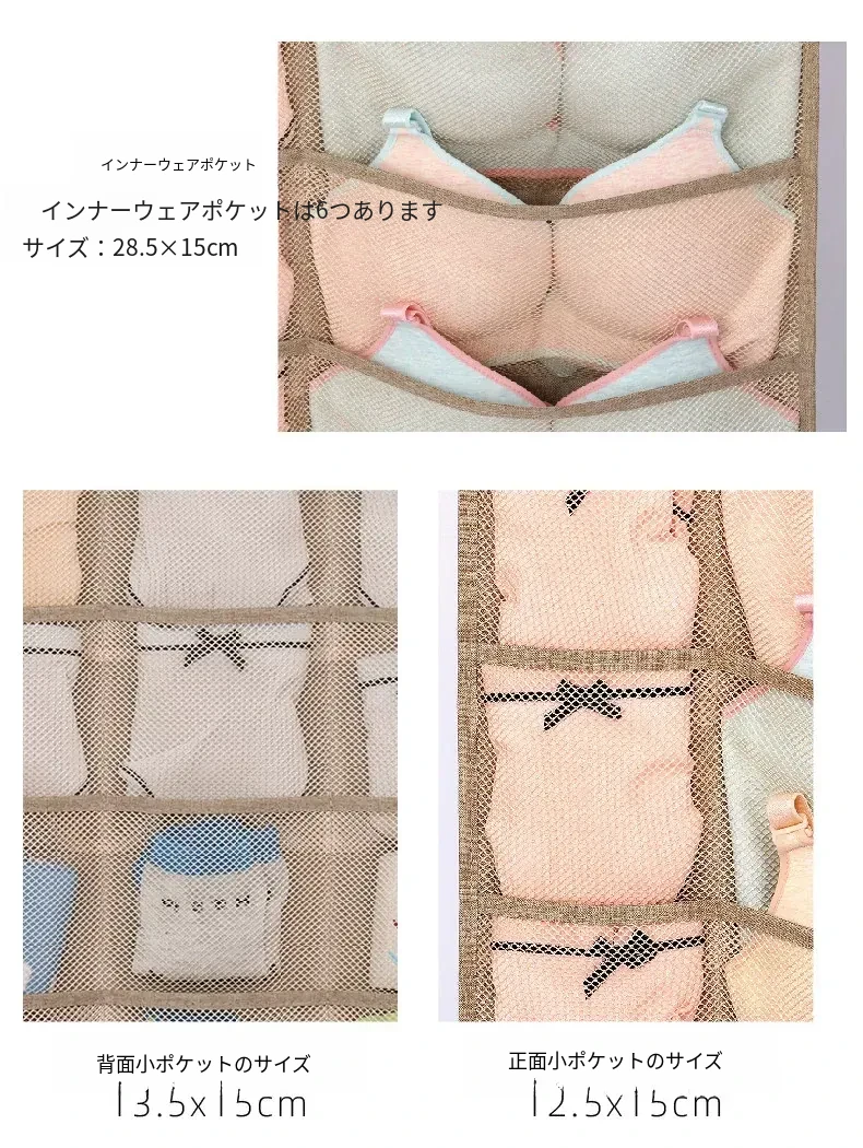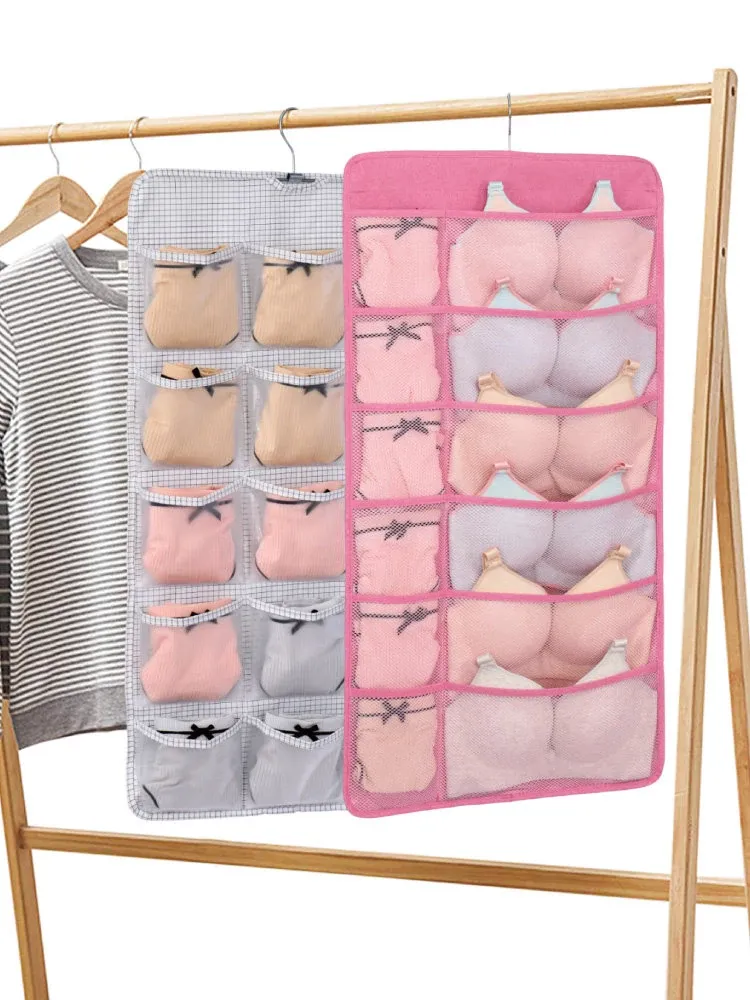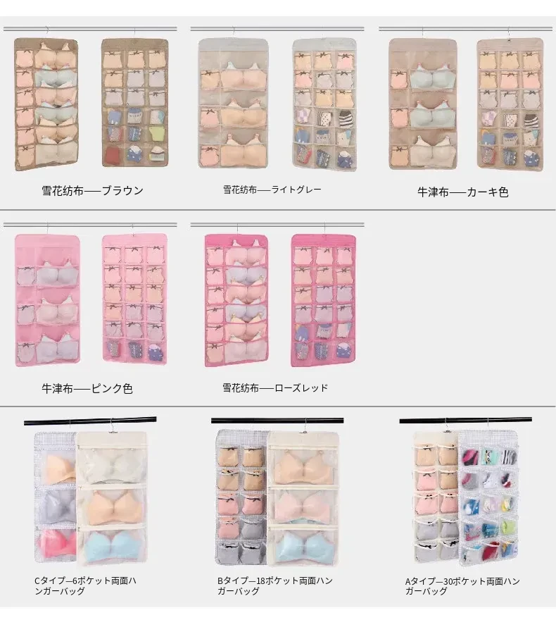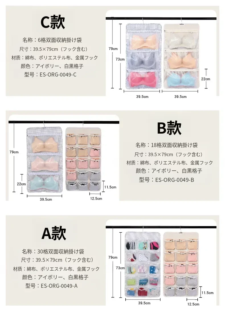 防塵内衣収納袋 ダブルサイドハンギング ソックスオーガナイザー 壁掛けパンツ収納ポケット 整理整頓に最適!おしゃれで実用的、あなたのクローゼットをスッキリさせます!