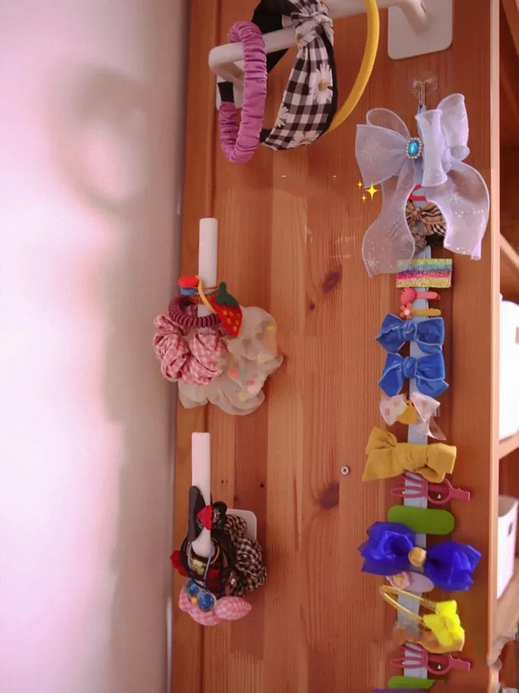 ヘアアクセサリー収納ラック - ヘアバンドやゴムをスッキリ整理!壁に掛けられ、傷を残さず簡単取り付け。おしゃれなディスプレイで、あなたのアクセサリーを引き立てます!