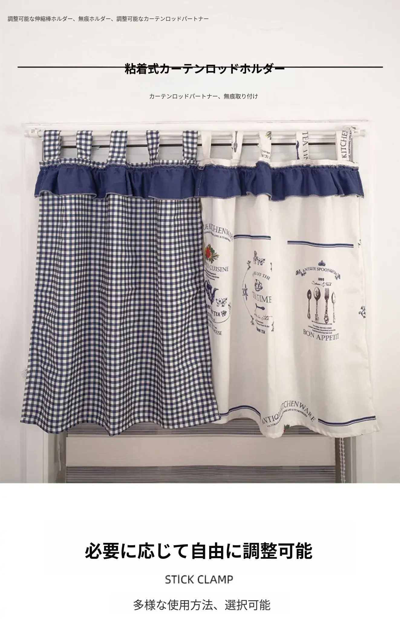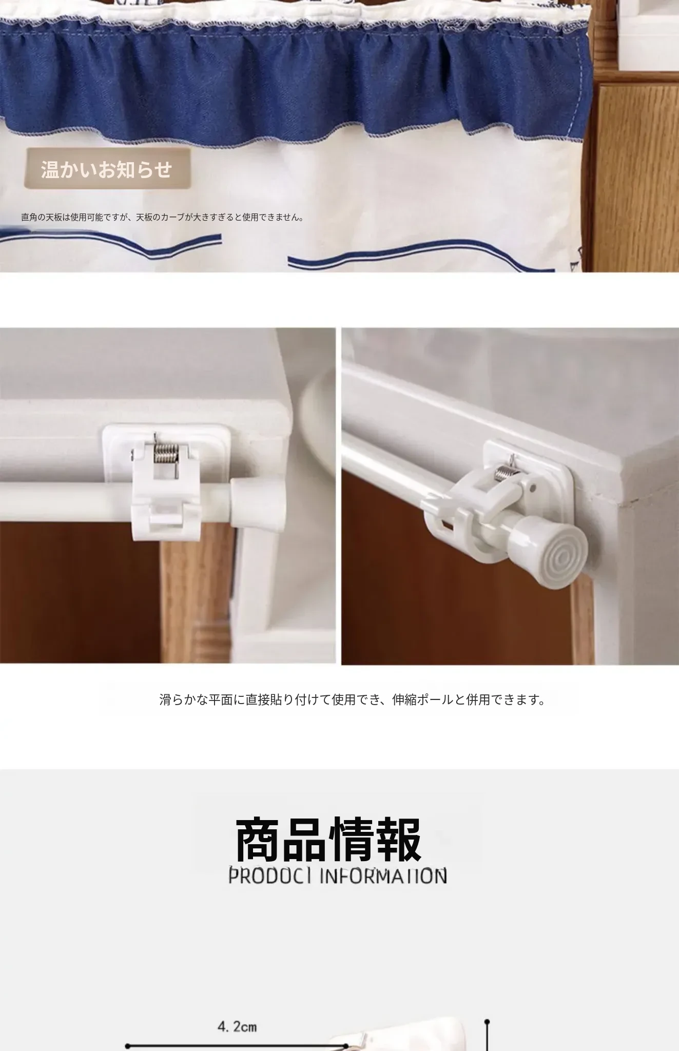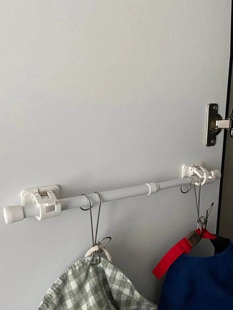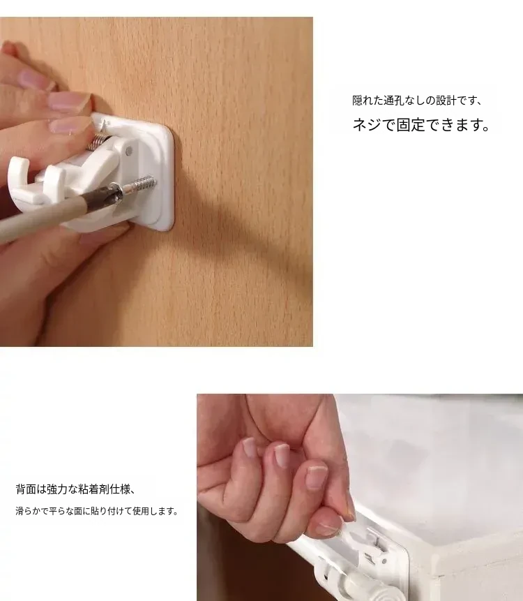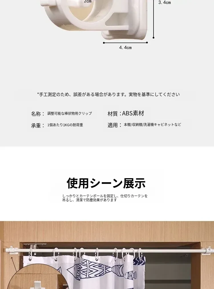 家庭用カーテンロッド固定クリップ - 無痕で取り付け簡単!タオルバーや寝室のサポートに最適な伸縮式ロッドアクセサリー。おしゃれで便利な収納を実現!