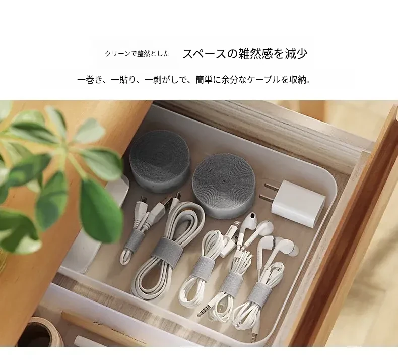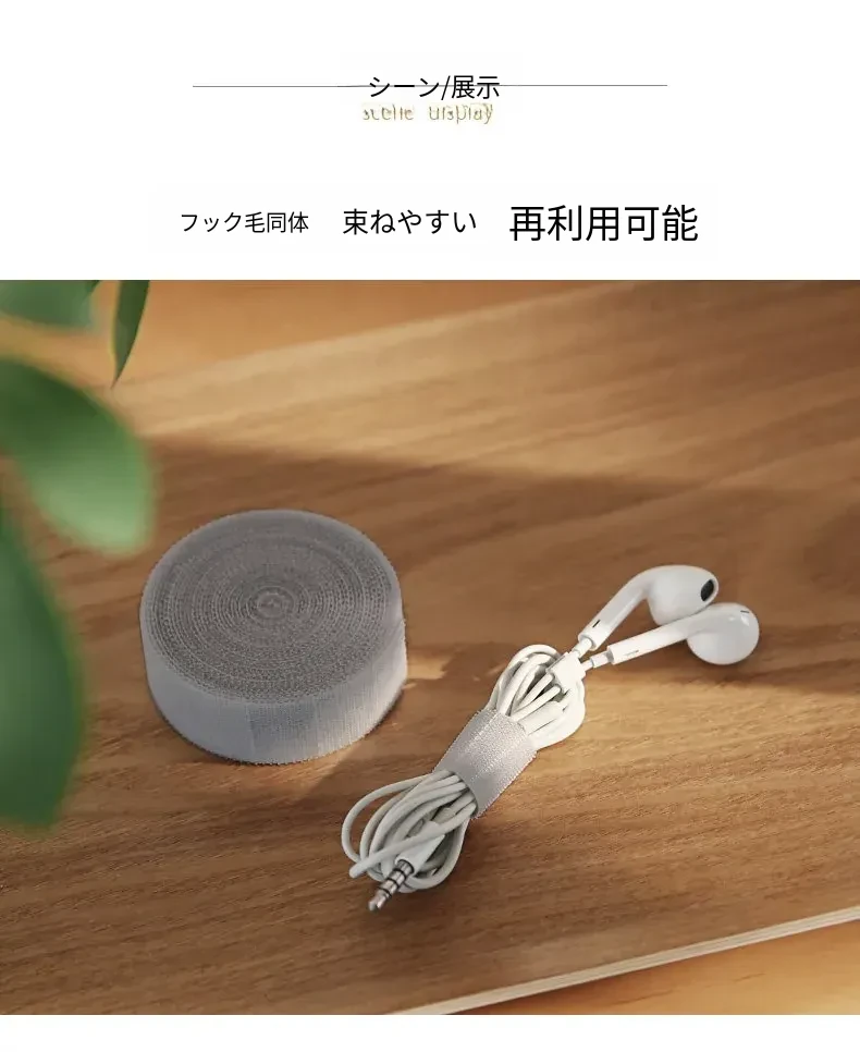 日本式マジックテープケーブル整理グッズ!充電ケーブルやイヤフォンをすっきりまとめる便利アイテム。絡まりを防ぎ、スッキリとしたデスク環境を実現!