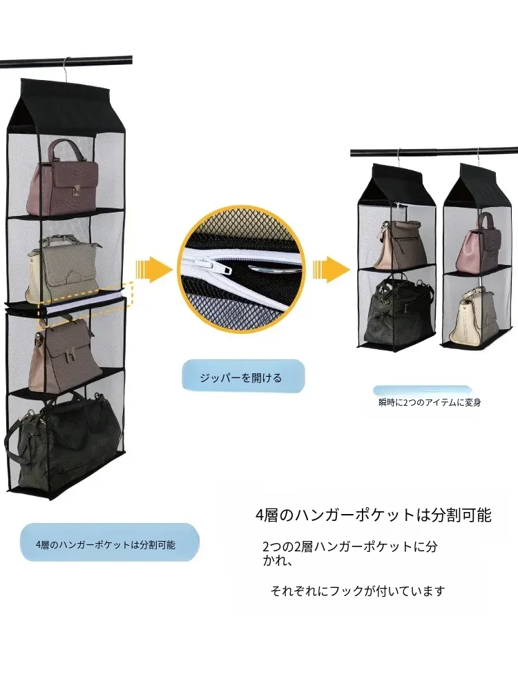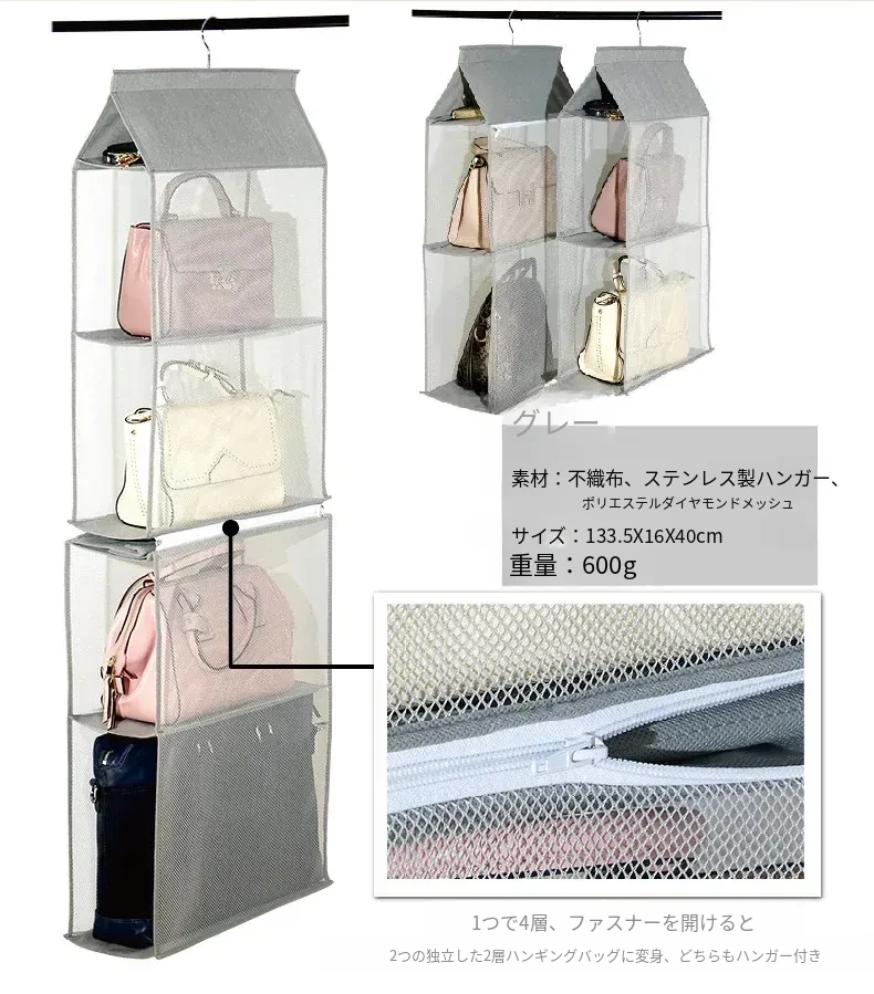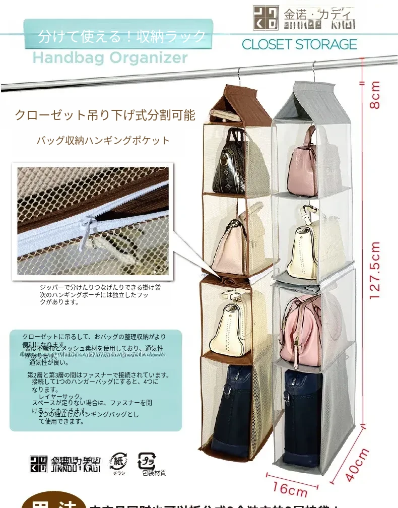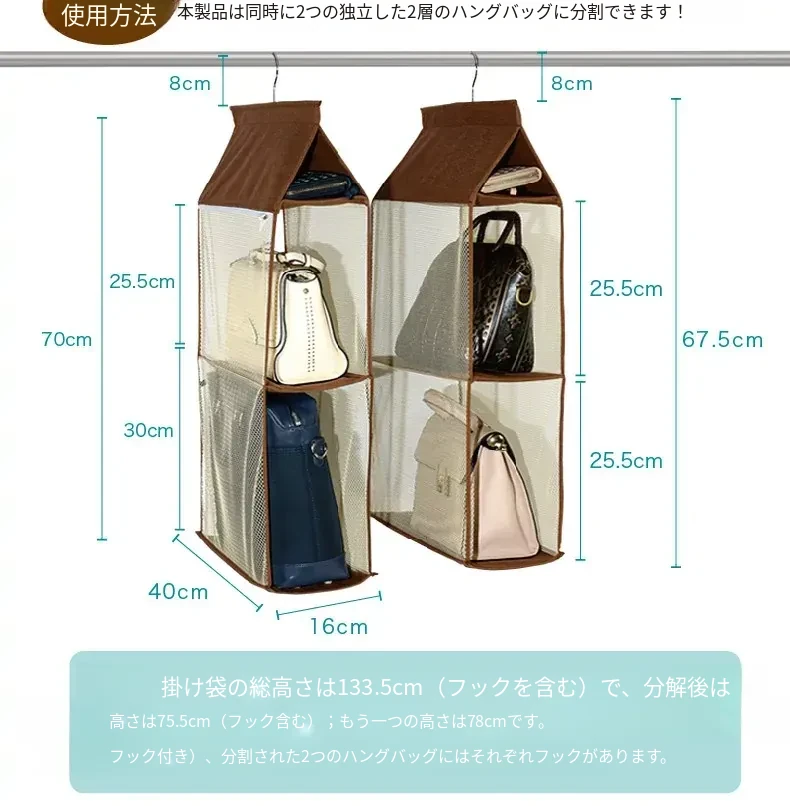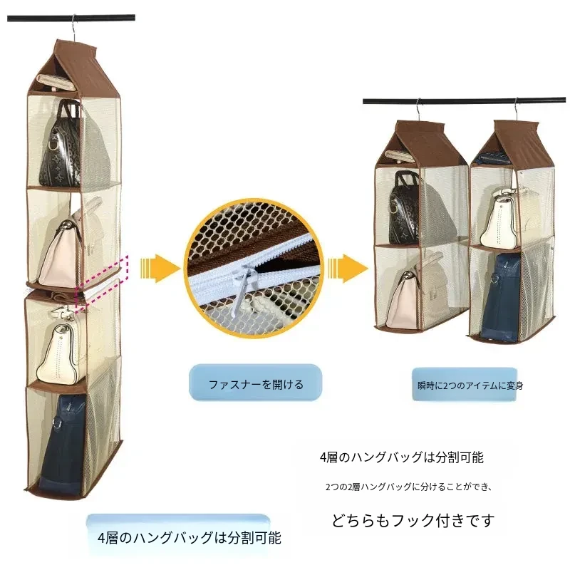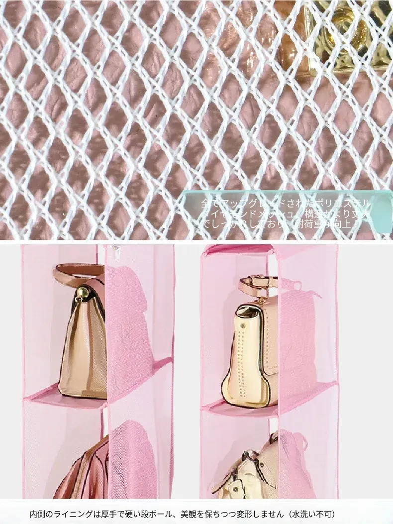 日本製 壁掛けバッグ収納ポケット - クローゼット用ハンドバッグ収納の必需品!おしゃれで実用的な布製、防塵効果抜群のバッグハンガーで、スペースを有効活用!