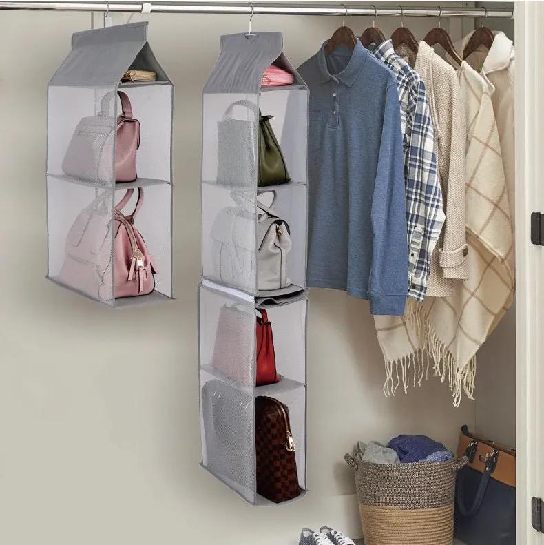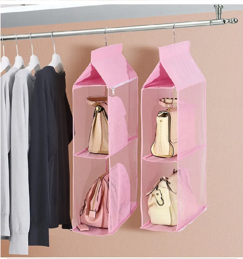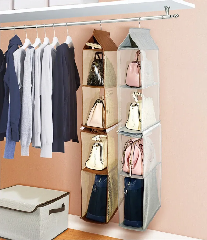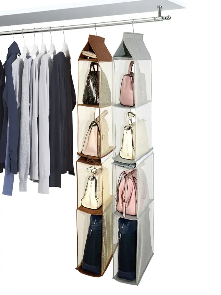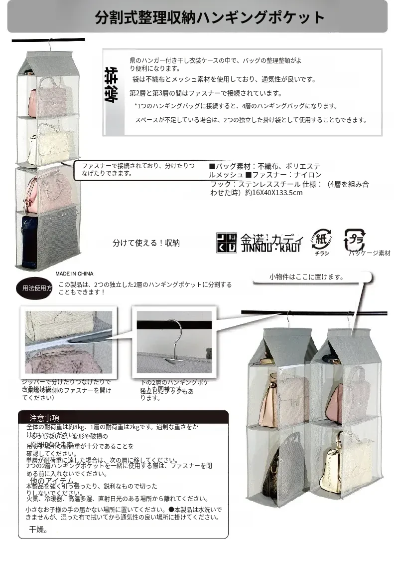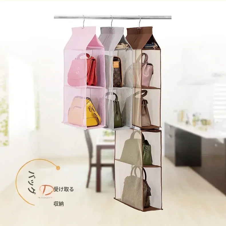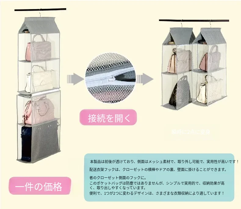 日本製 壁掛けバッグ収納ポケット - クローゼット用ハンドバッグ収納の必需品!おしゃれで実用的な布製、防塵効果抜群のバッグハンガーで、スペースを有効活用!