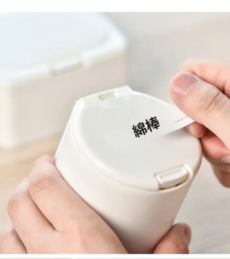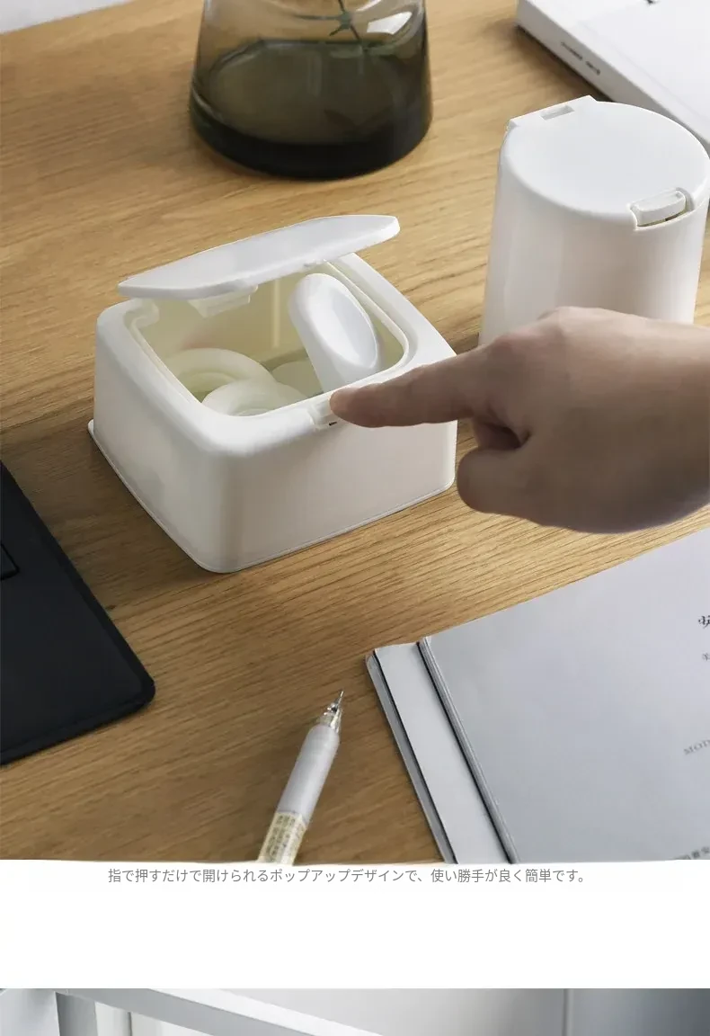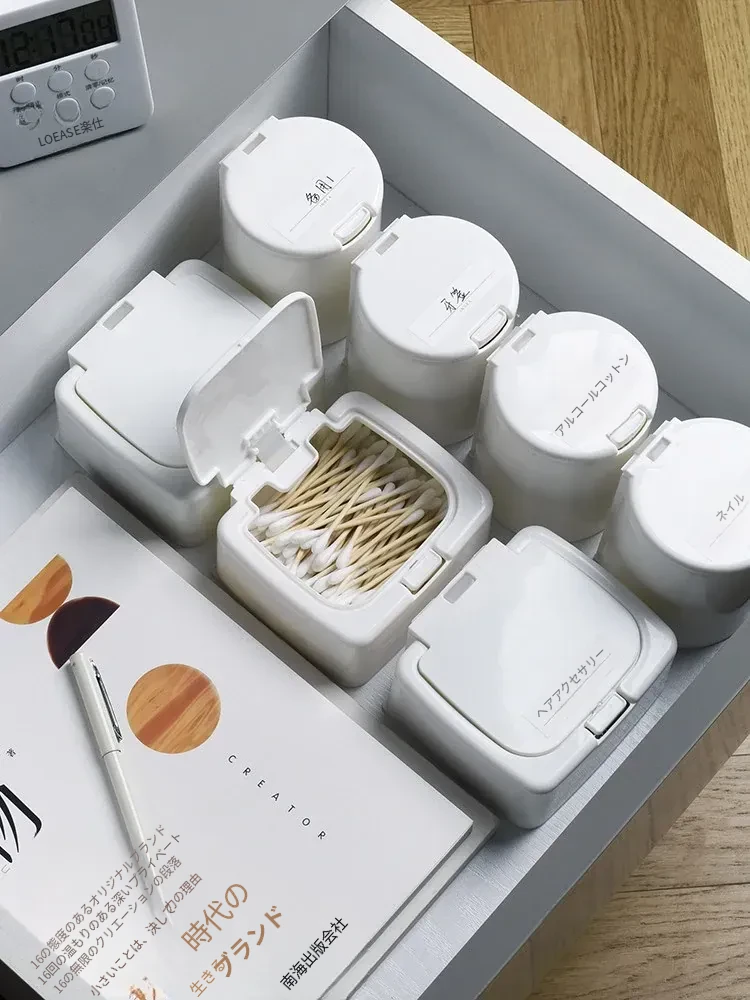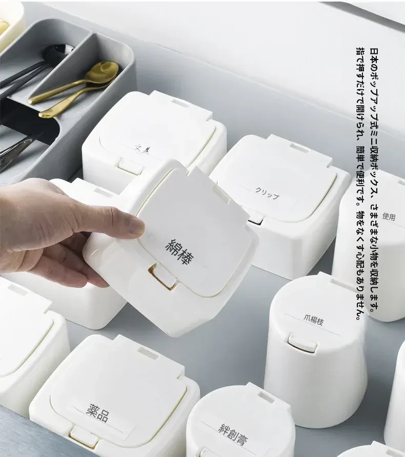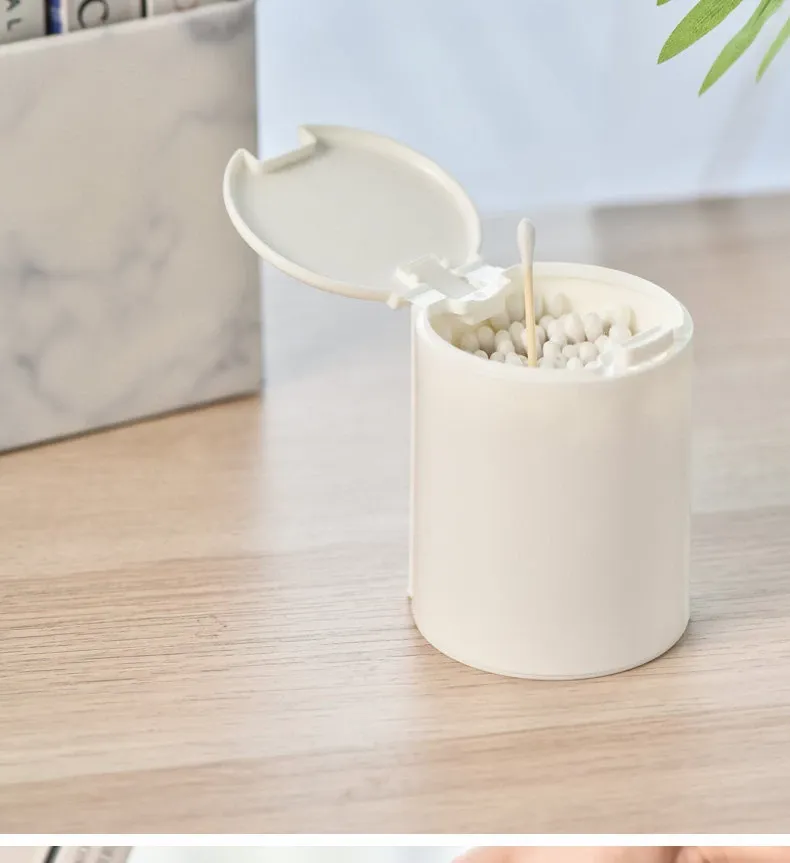 ミニ携帯用コットン棒収納ボックス - デスク上にぴったりなボタン式収納ケース!小物をすっきり整理できる化粧用コットンのふた付き収納ボックス。あなたのメイクアップエッセンシャルをスタイリッシュに保ちましょう!
