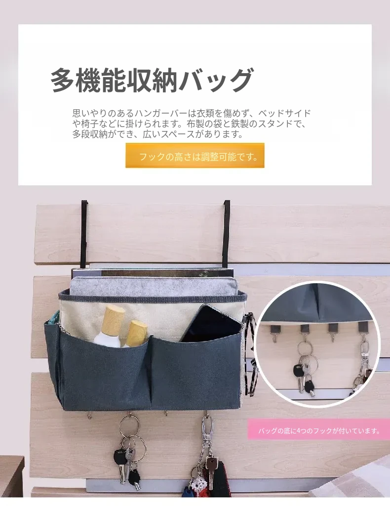 学生寮にぴったり!多機能布製収納ポケット ベッドサイドでスマートに整理整頓!小物もすっきり収納できる便利アイテム 寝室をおしゃれに演出します!