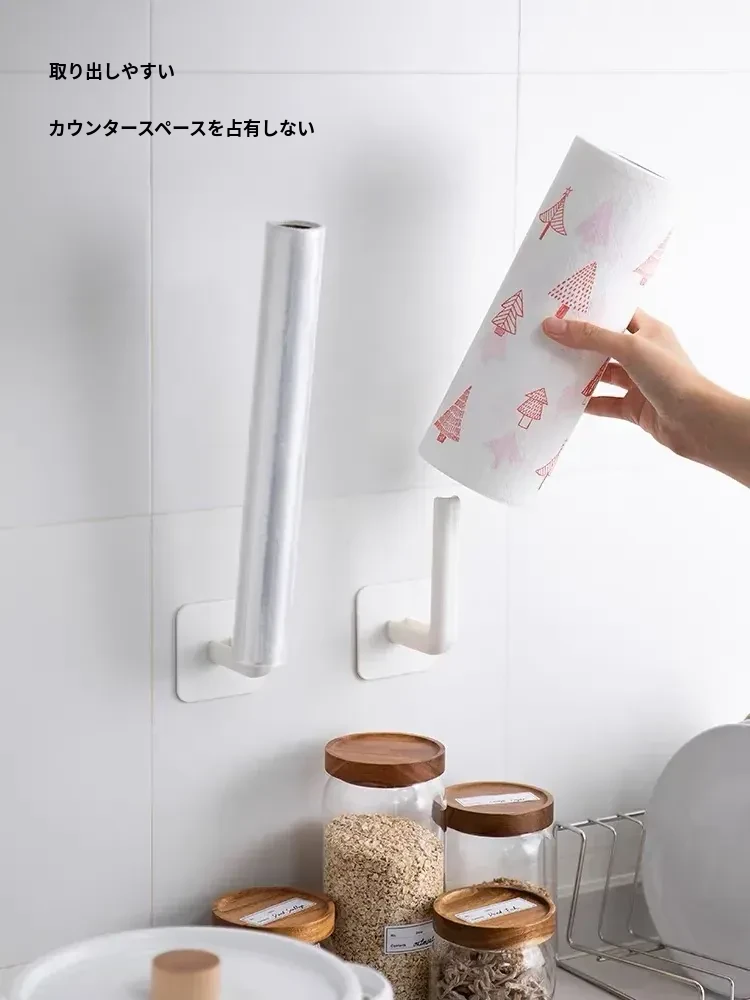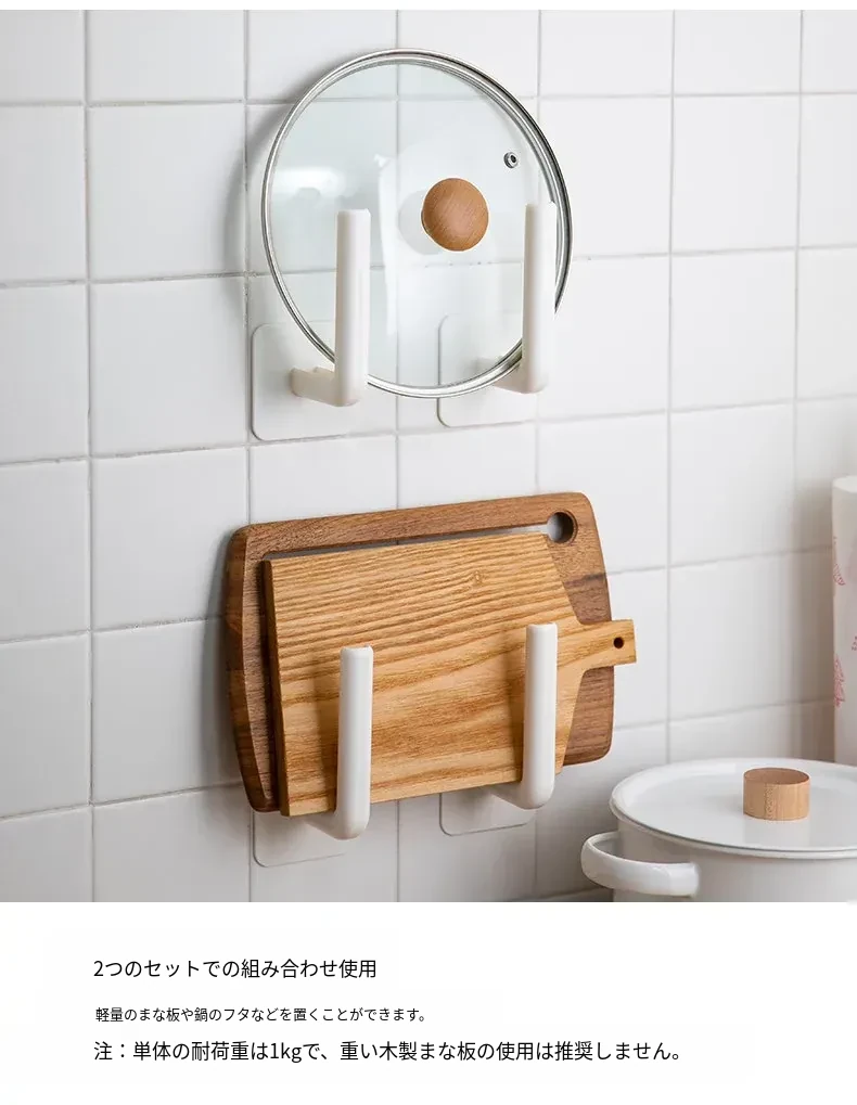 多機能L型フック 穴あけ不要のキッチン収納ラック まな板・鍋蓋・ティッシュをスマートに整理!使いやすさ抜群の便利アイテム!