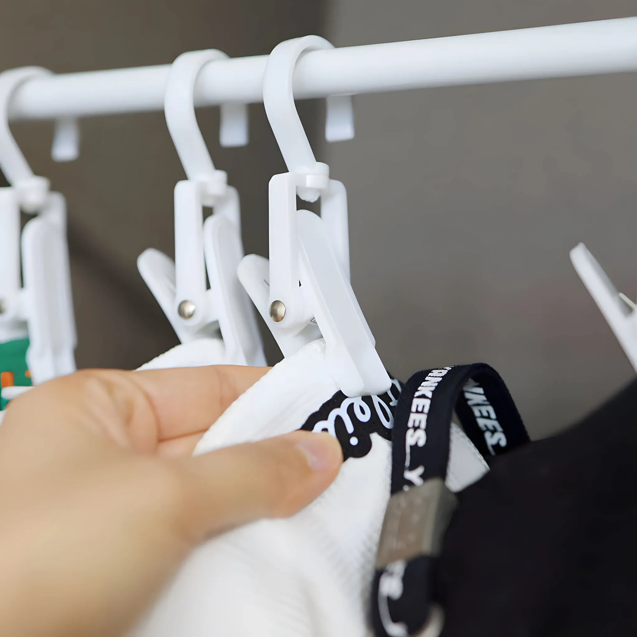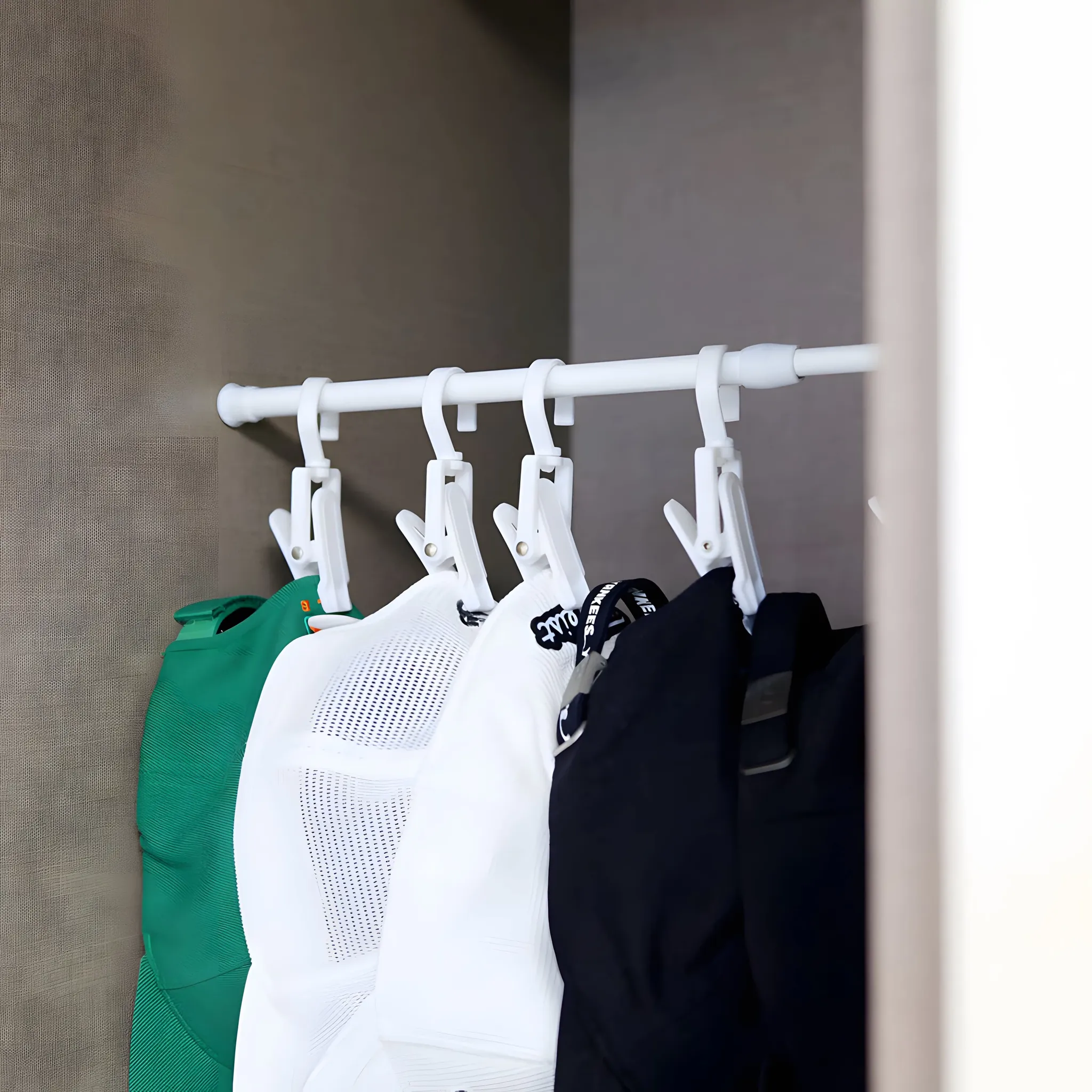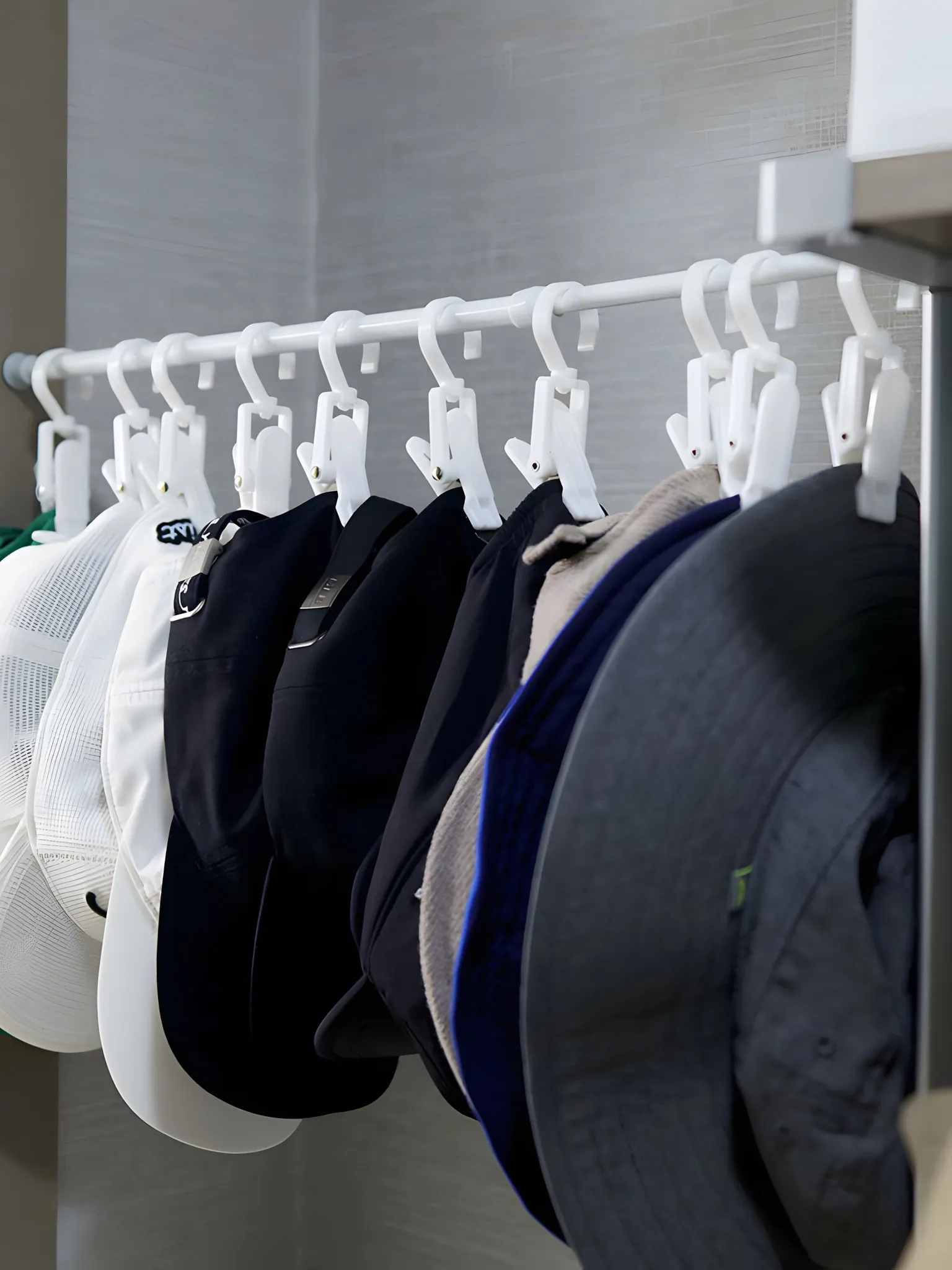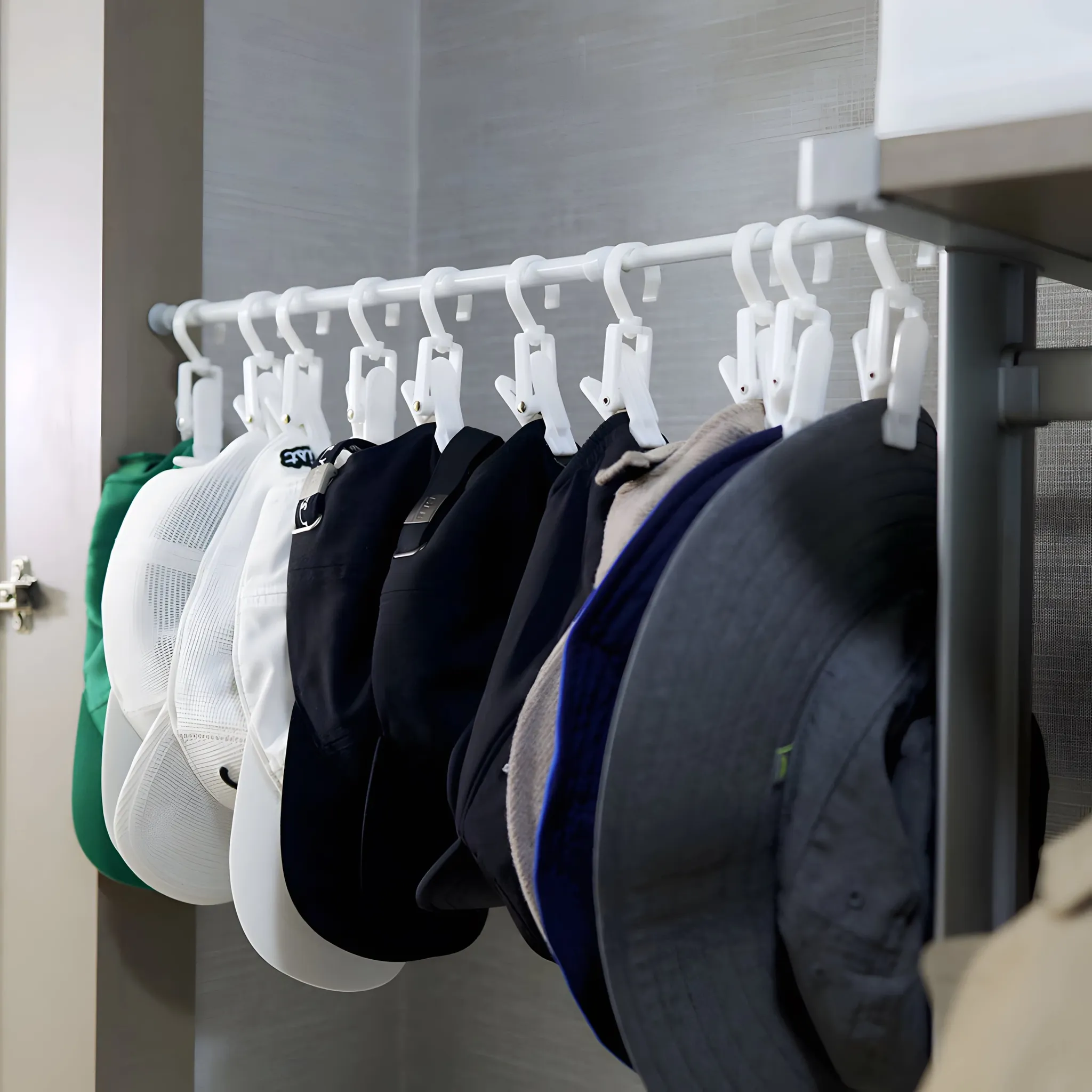 帽子収納クリップハンガー - 穴を開けずに簡単取り付け!衣類整理に最適な伸縮式ラックで、クローゼットをスッキリと整頓。使いやすさ抜群の収納アイテムです!