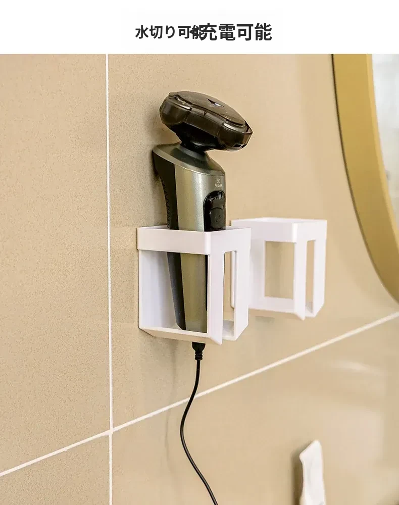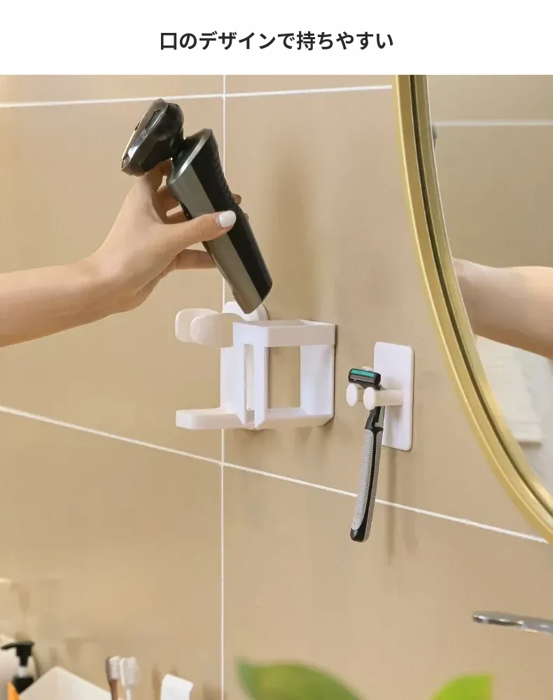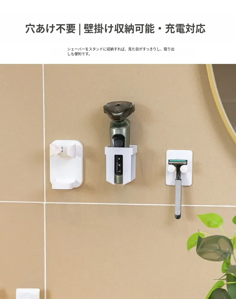 穴あけ不要!多機能電動シェーバー収納スタンド - おしゃれなバスルーム用ひげ剃りホルダーでスッキリ整理!