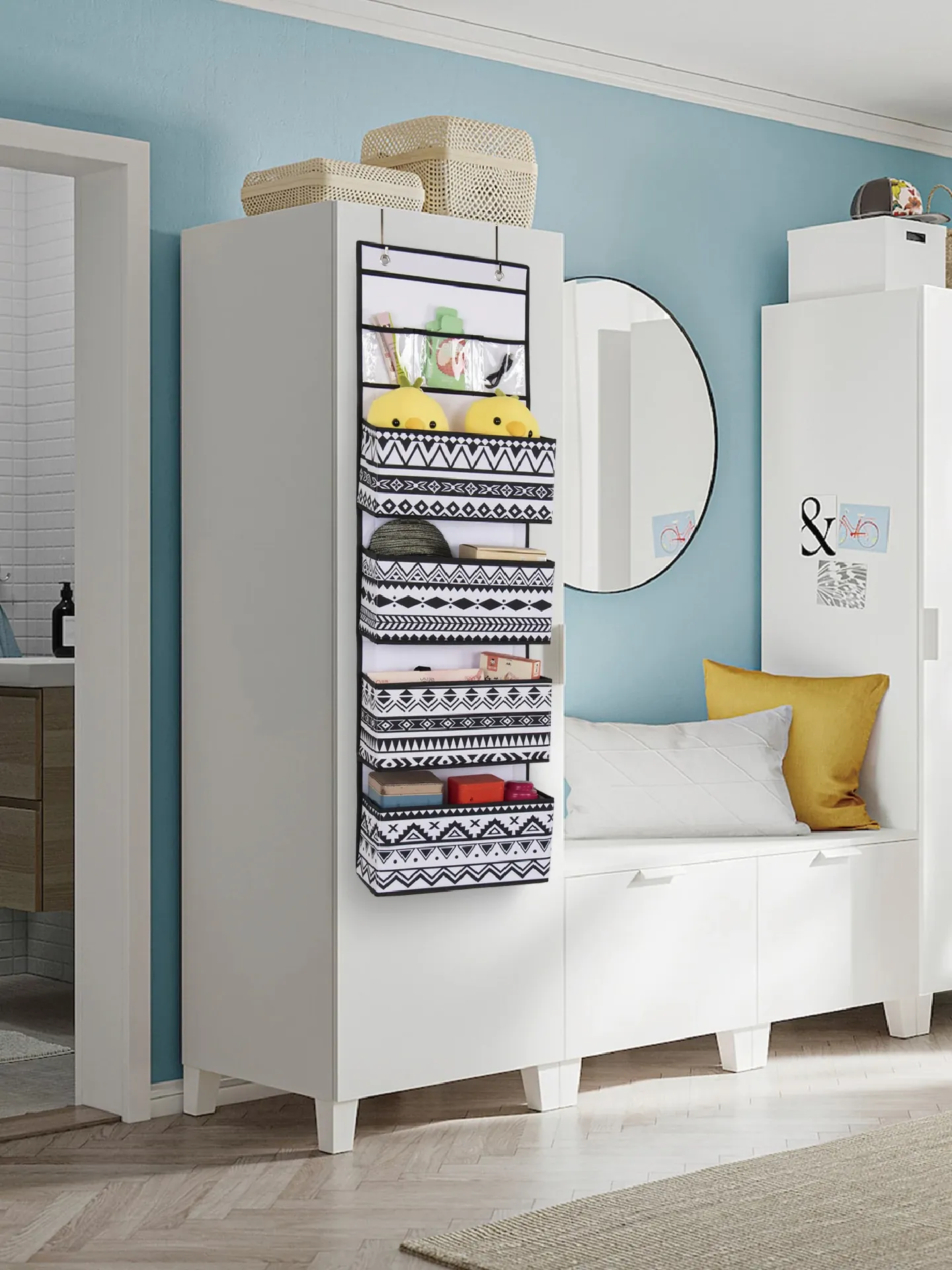 穴を開けずに取り付け可能!多層壁掛け収納袋 - 寮生活に最適な便利アイテム。クローゼットのサイドをスッキリ整理できる魔法の収納ラック!