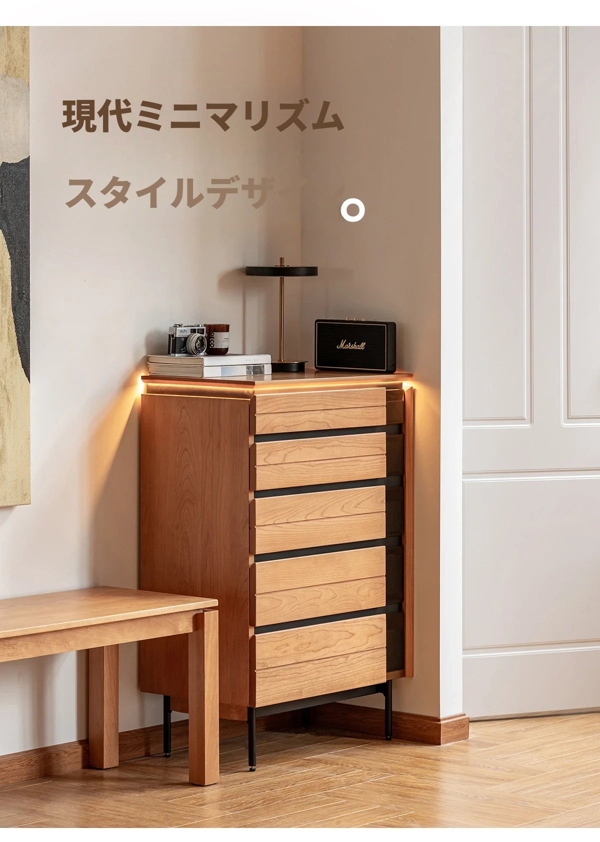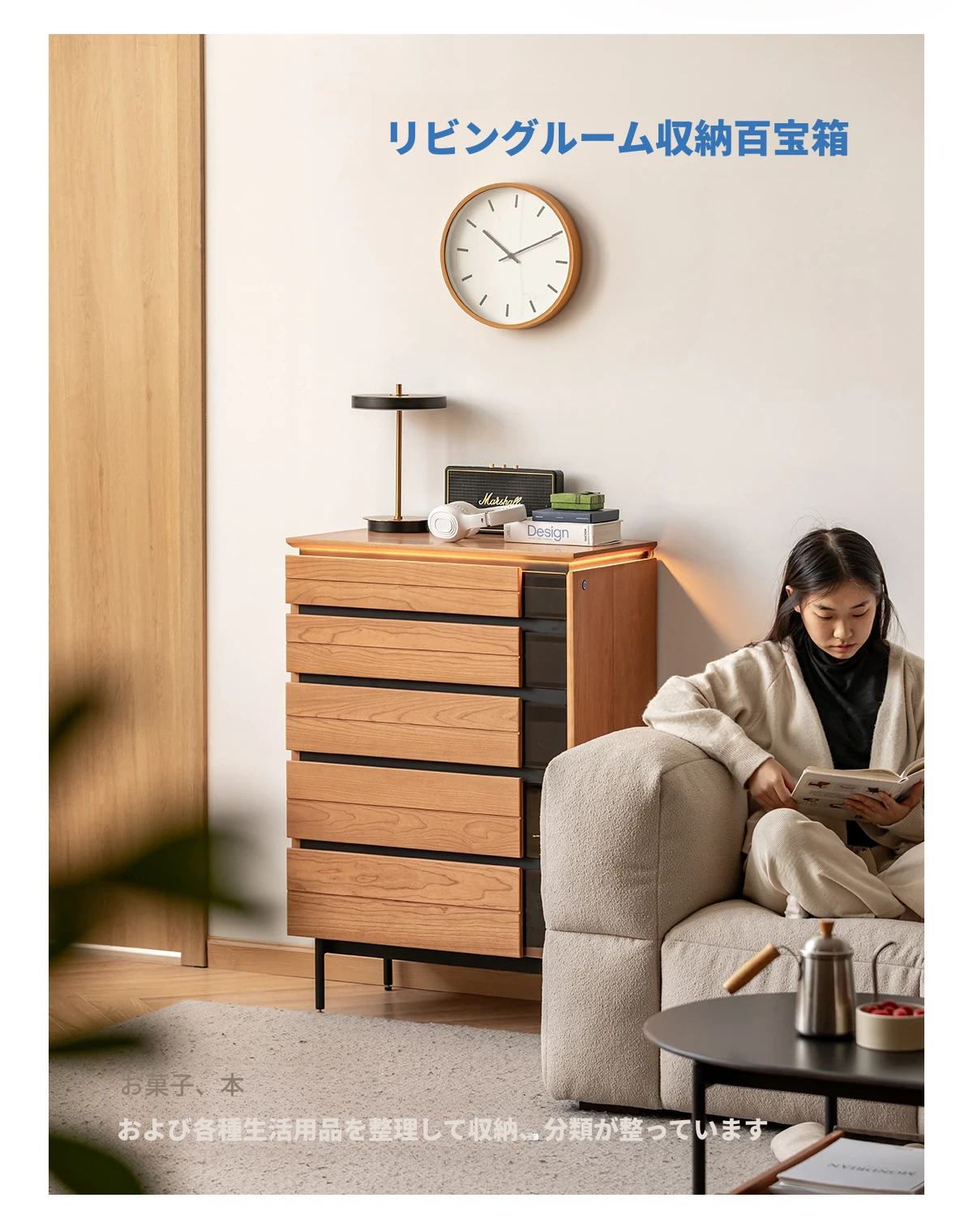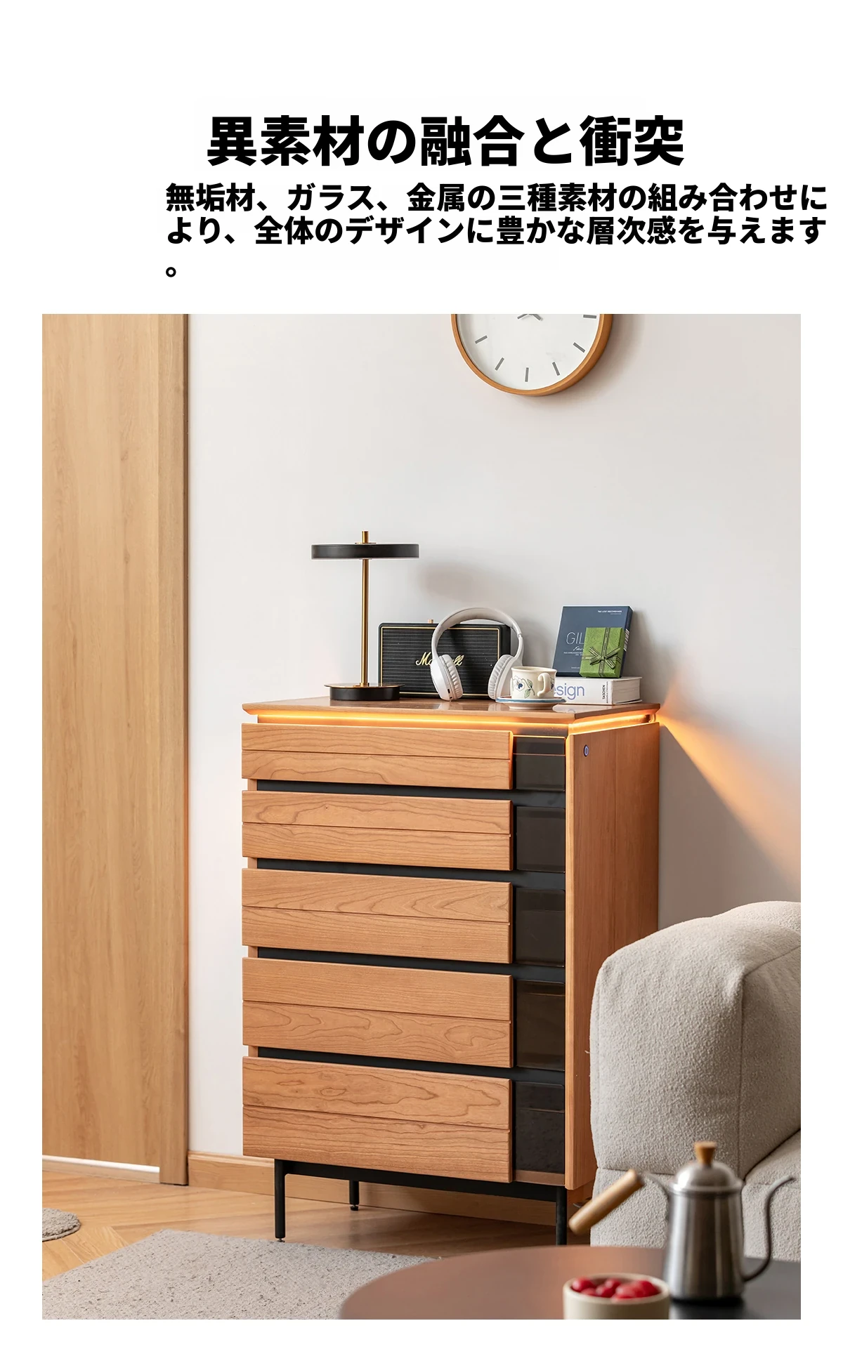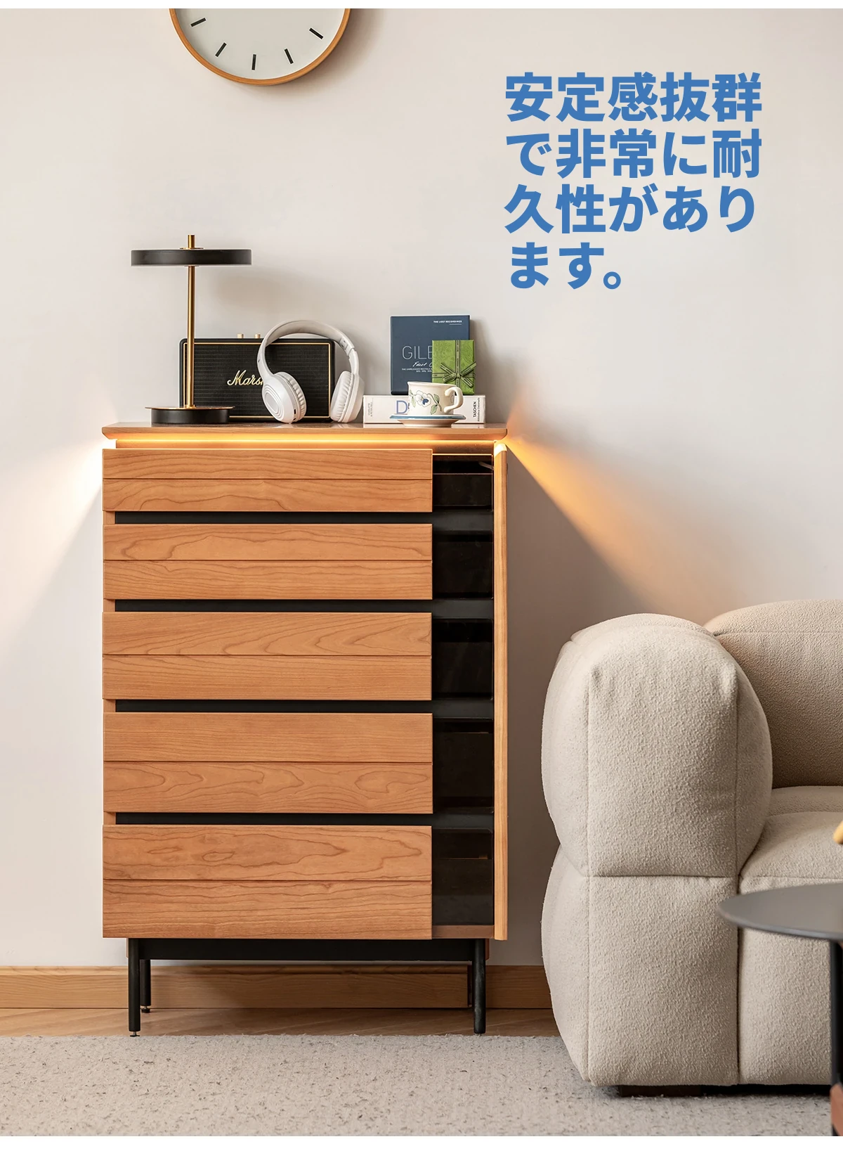 北欧風デザイン!自然な木目が美しい半実木の5段チェスト - おしゃれなリビング収納家具