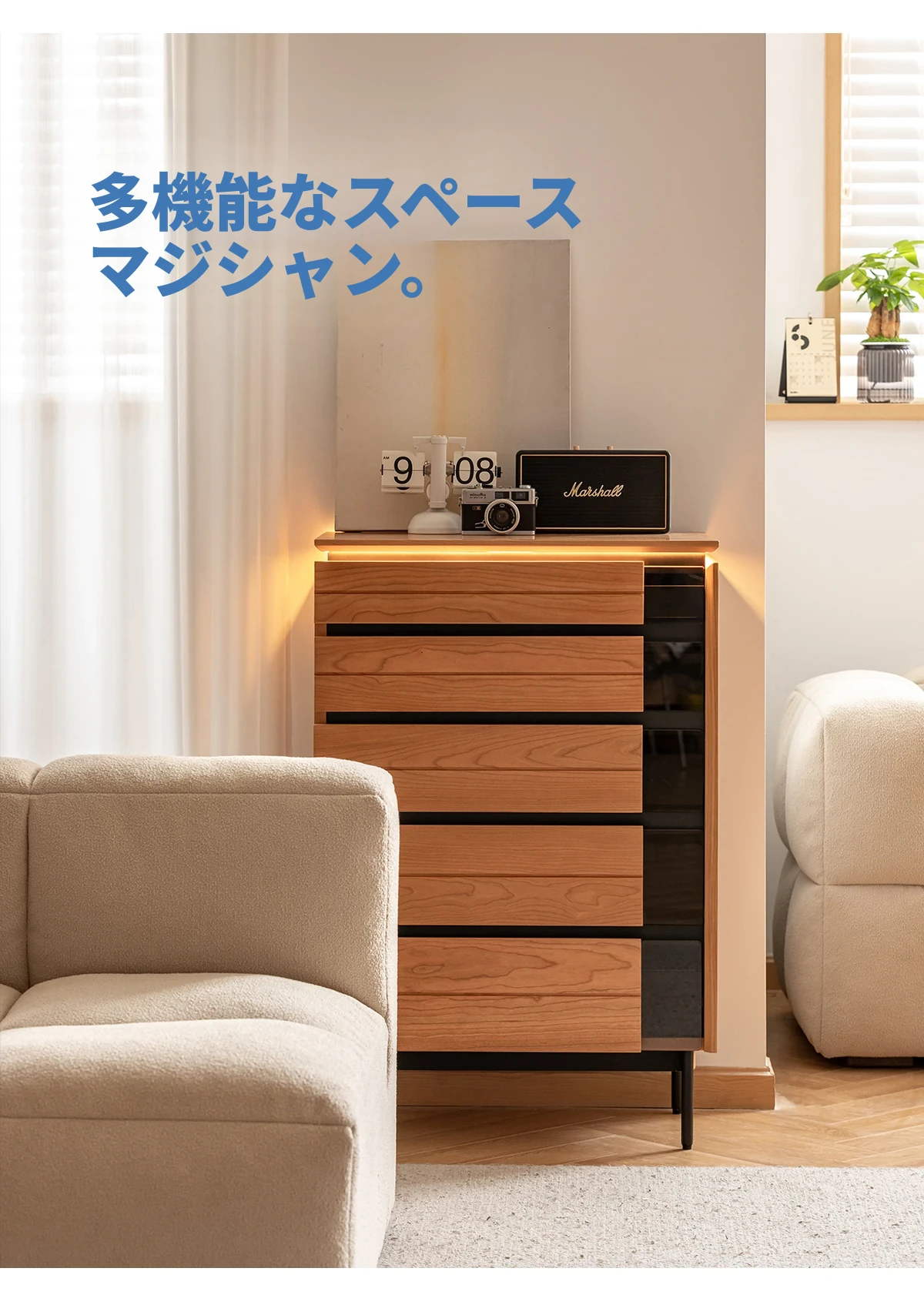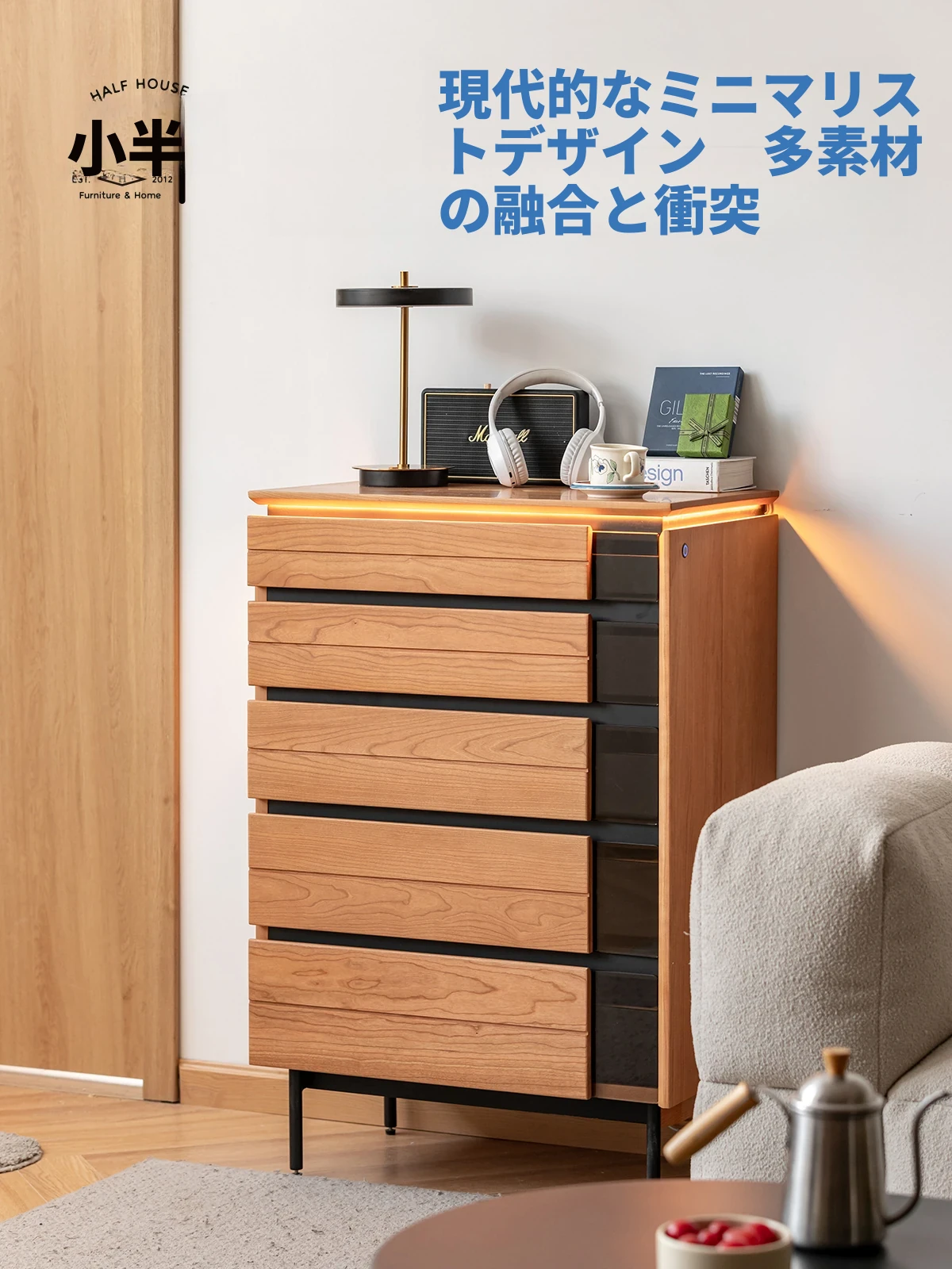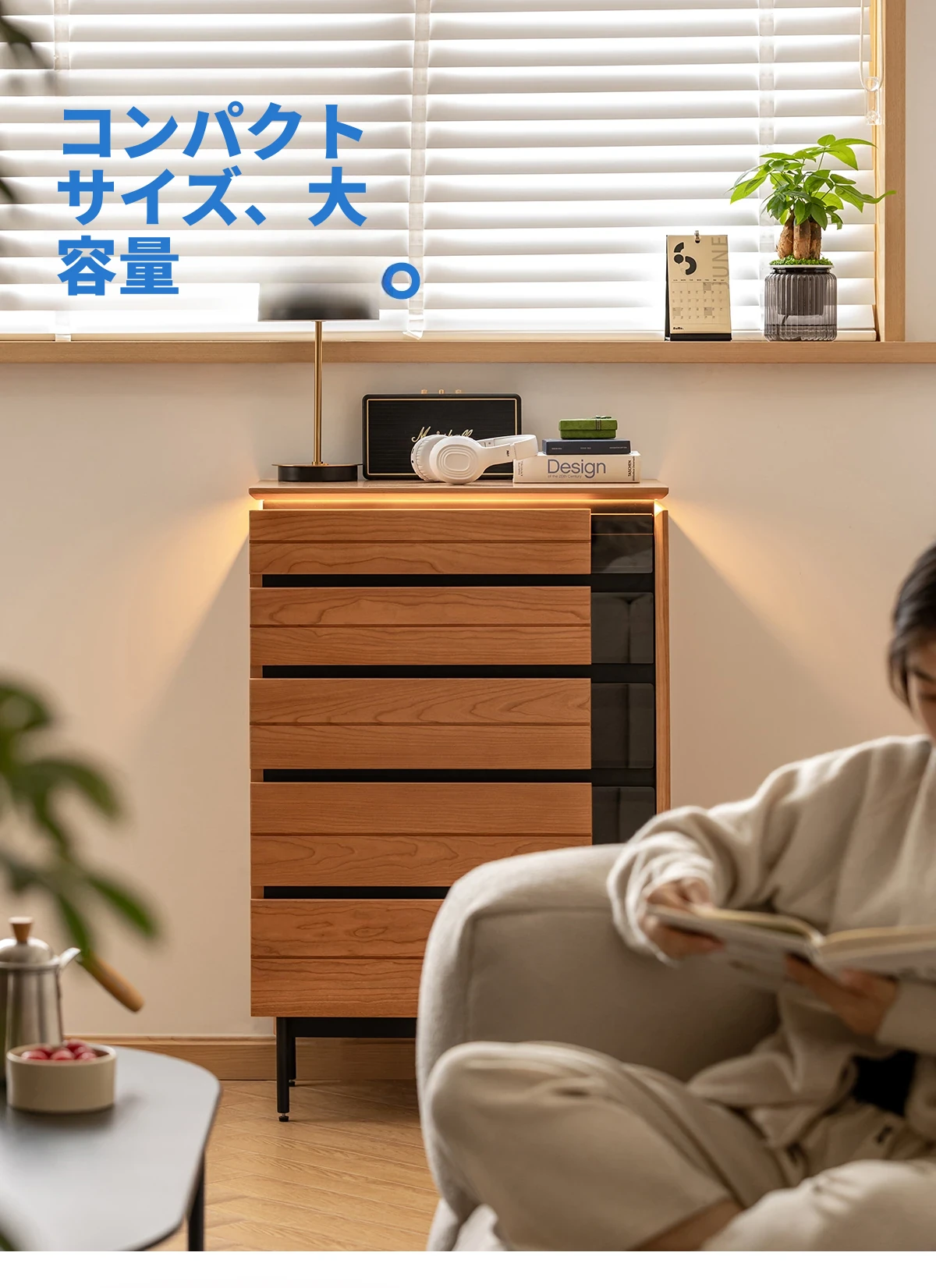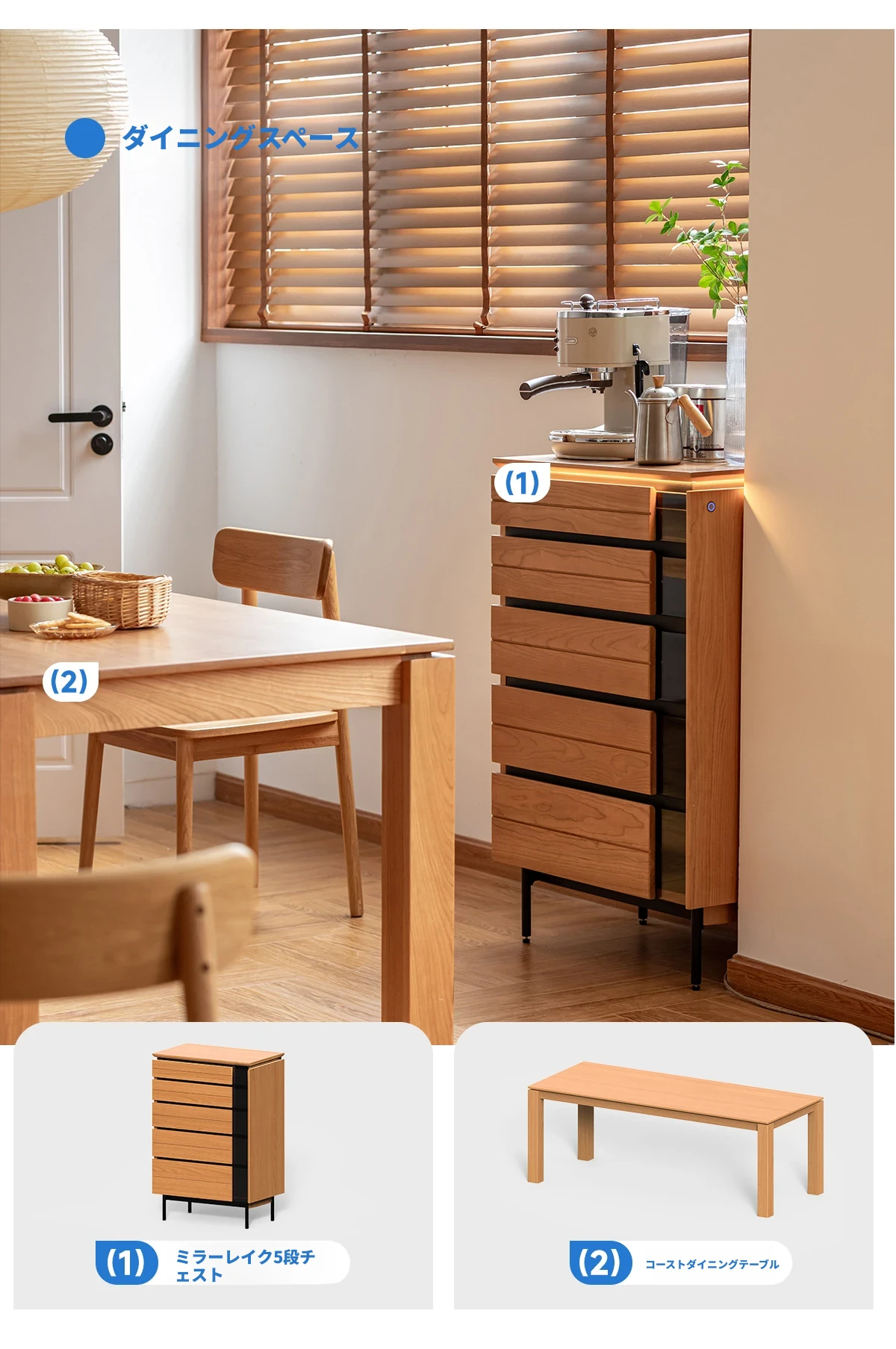 北欧風デザイン!自然な木目が美しい半実木の5段チェスト - おしゃれなリビング収納家具