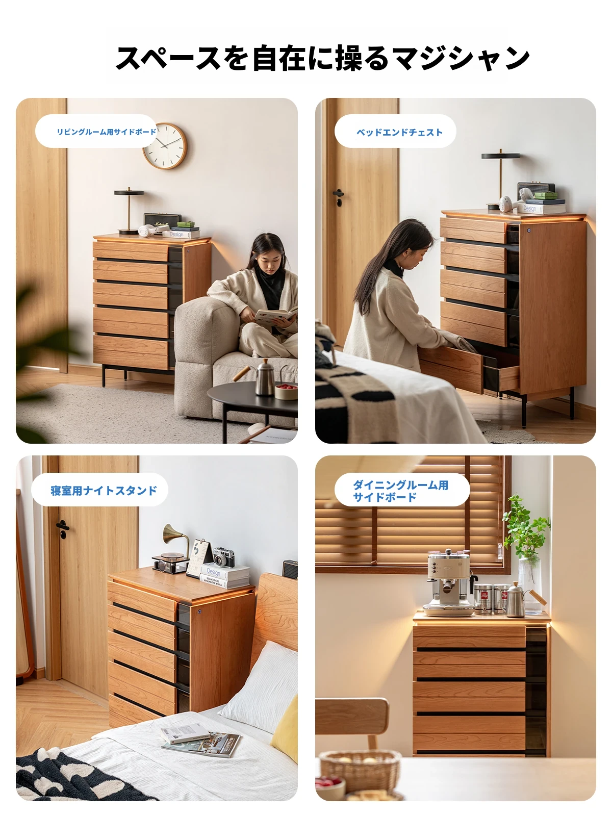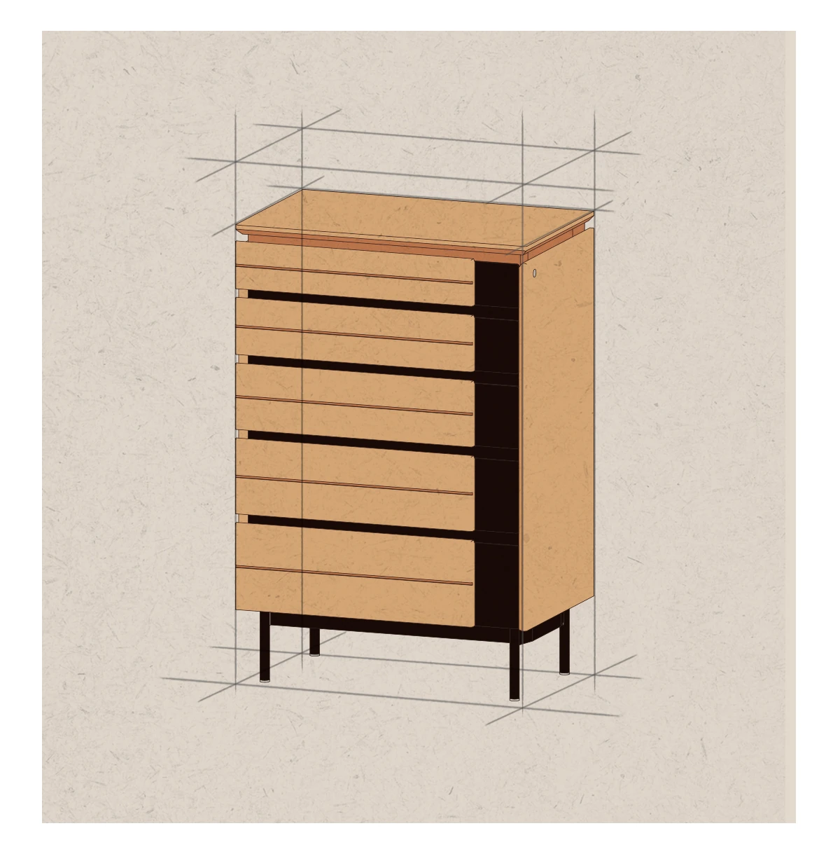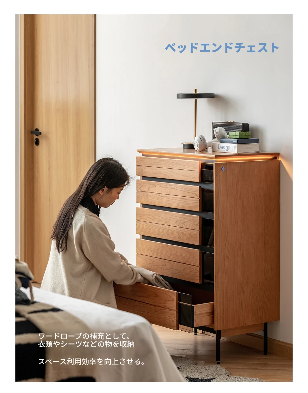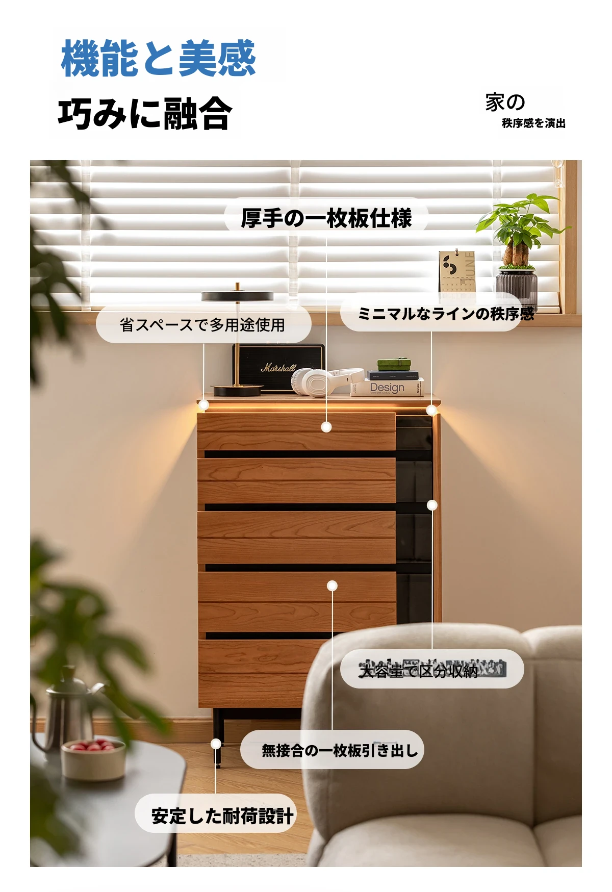 北欧風デザイン!自然な木目が美しい半実木の5段チェスト - おしゃれなリビング収納家具