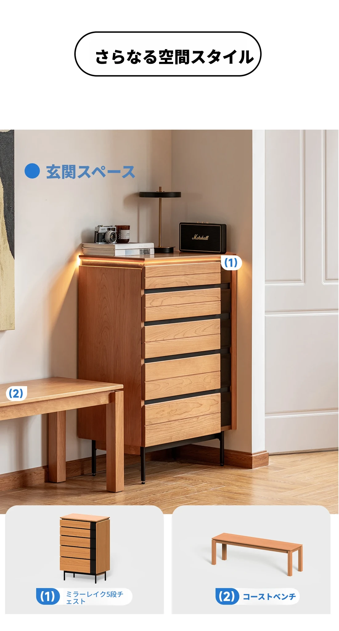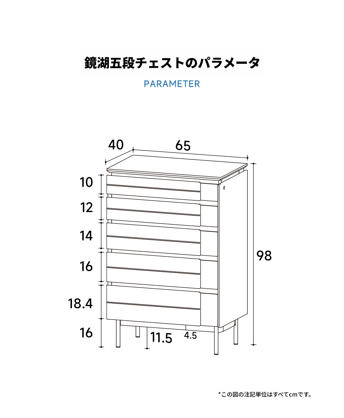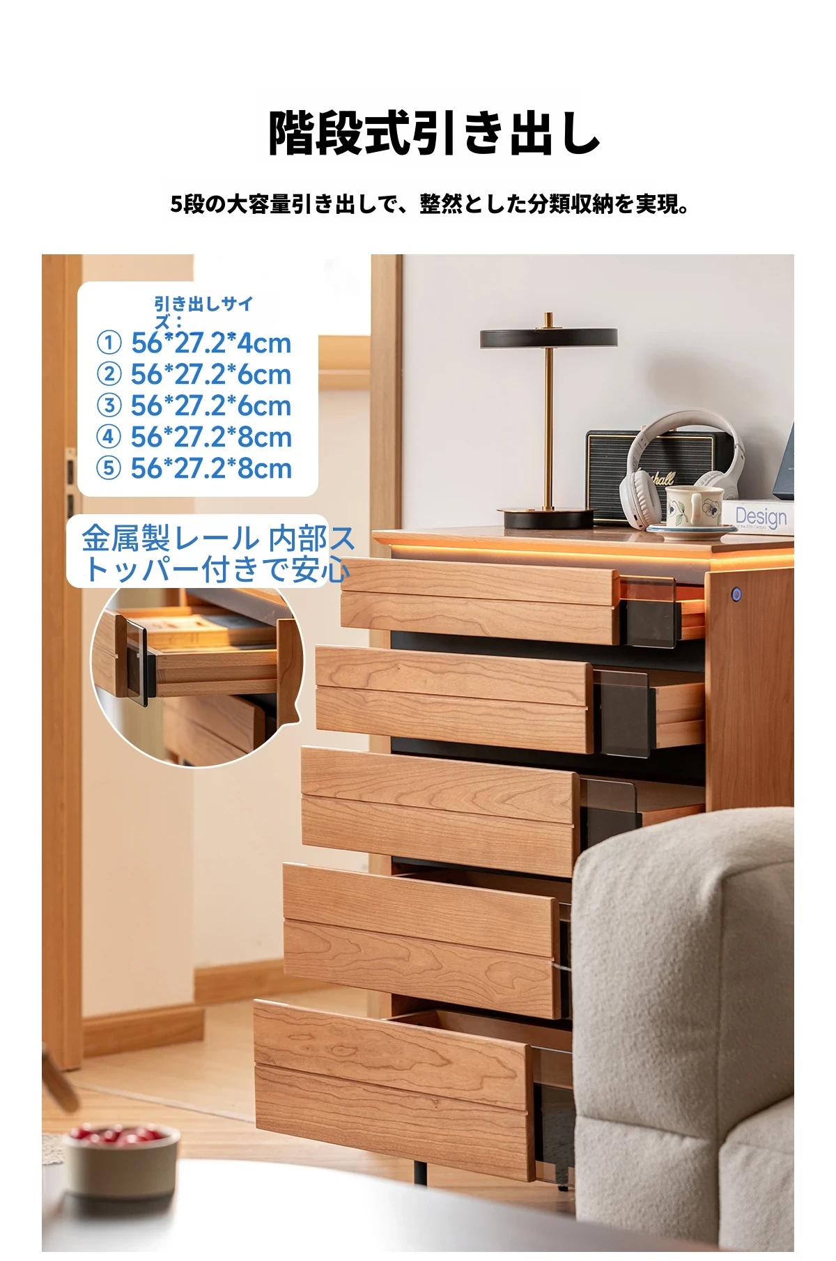 【チェリーウッド】鏡湖五段チェスト