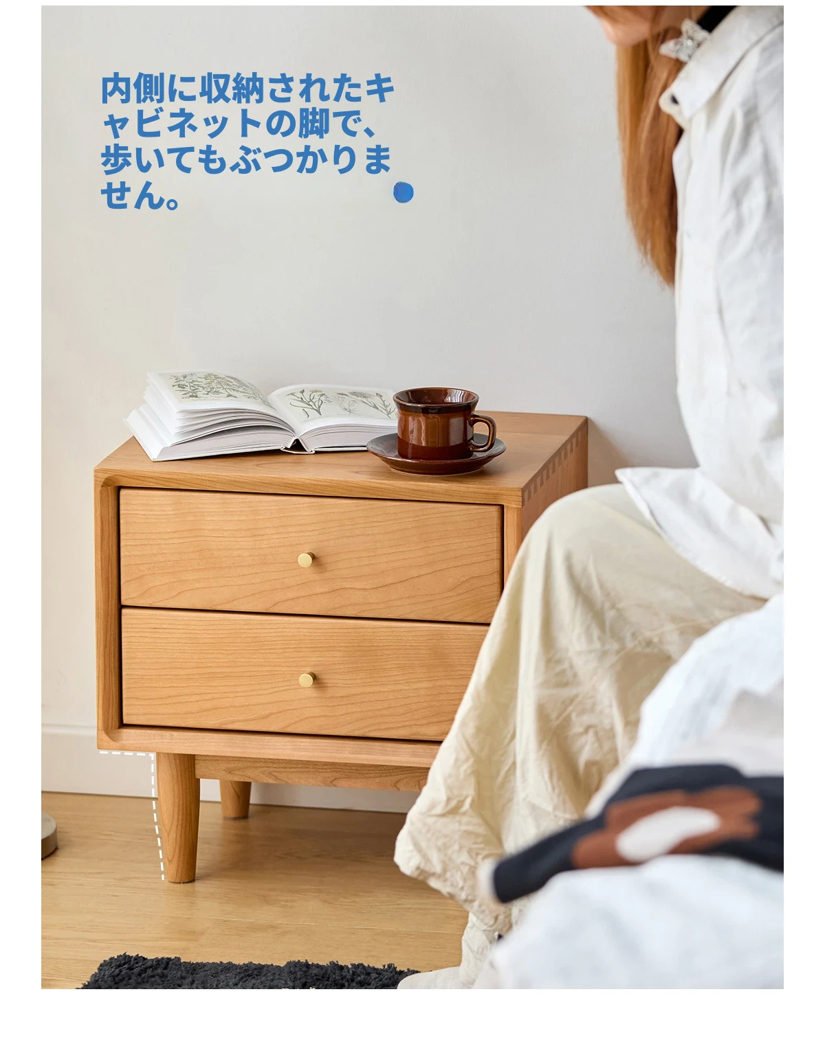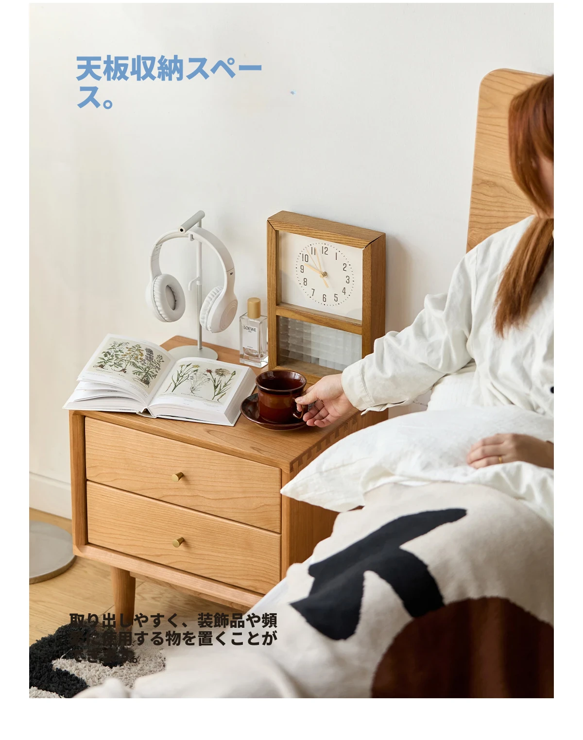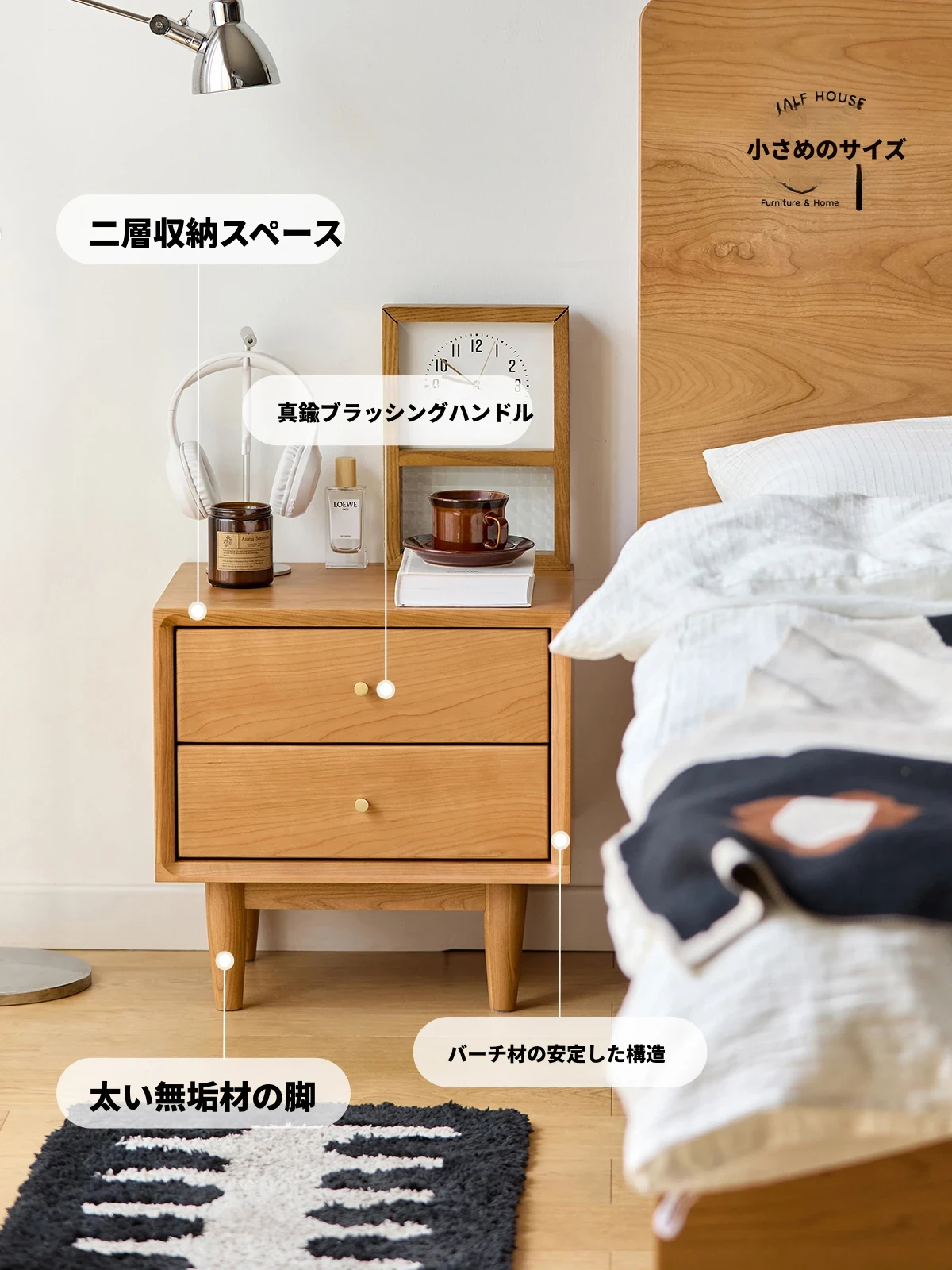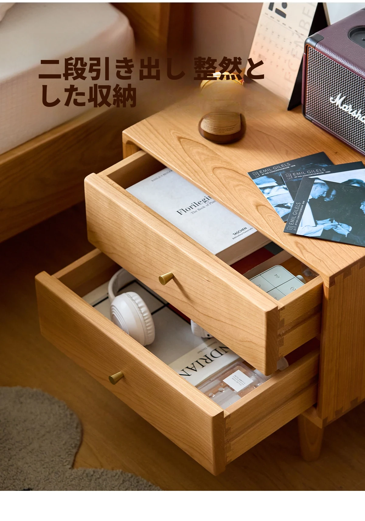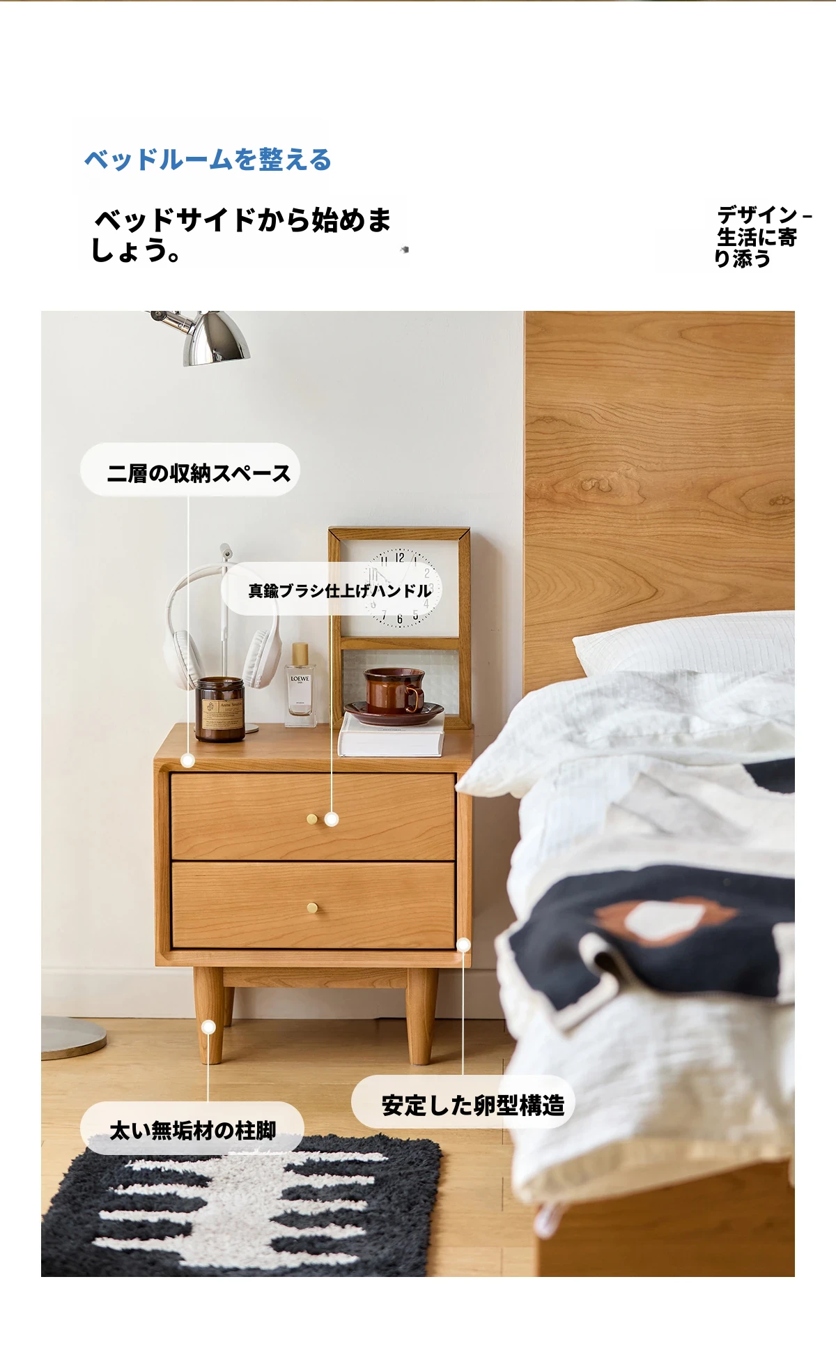 北欧スタイルの天然木製ベッドサイド家具 - スマート収納でお部屋をすっきり美しく