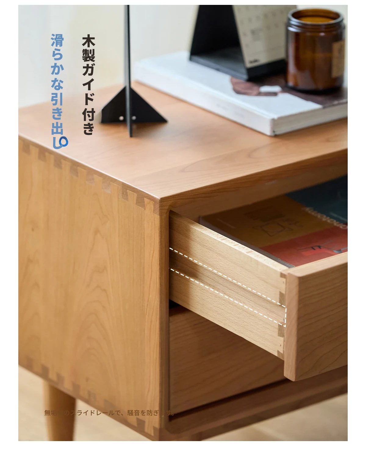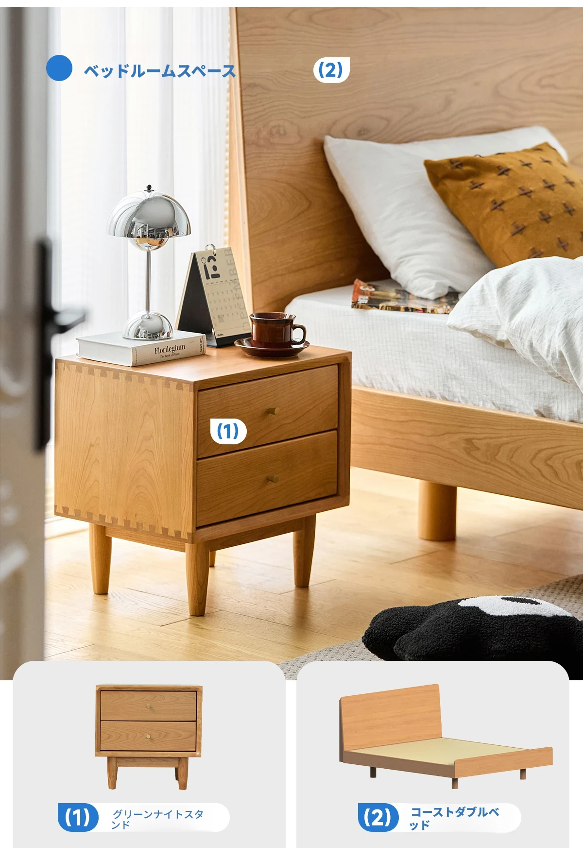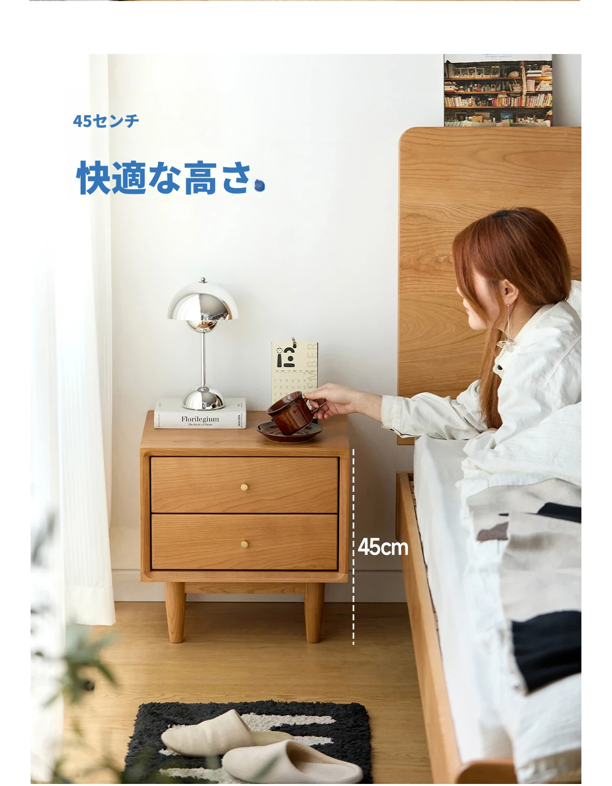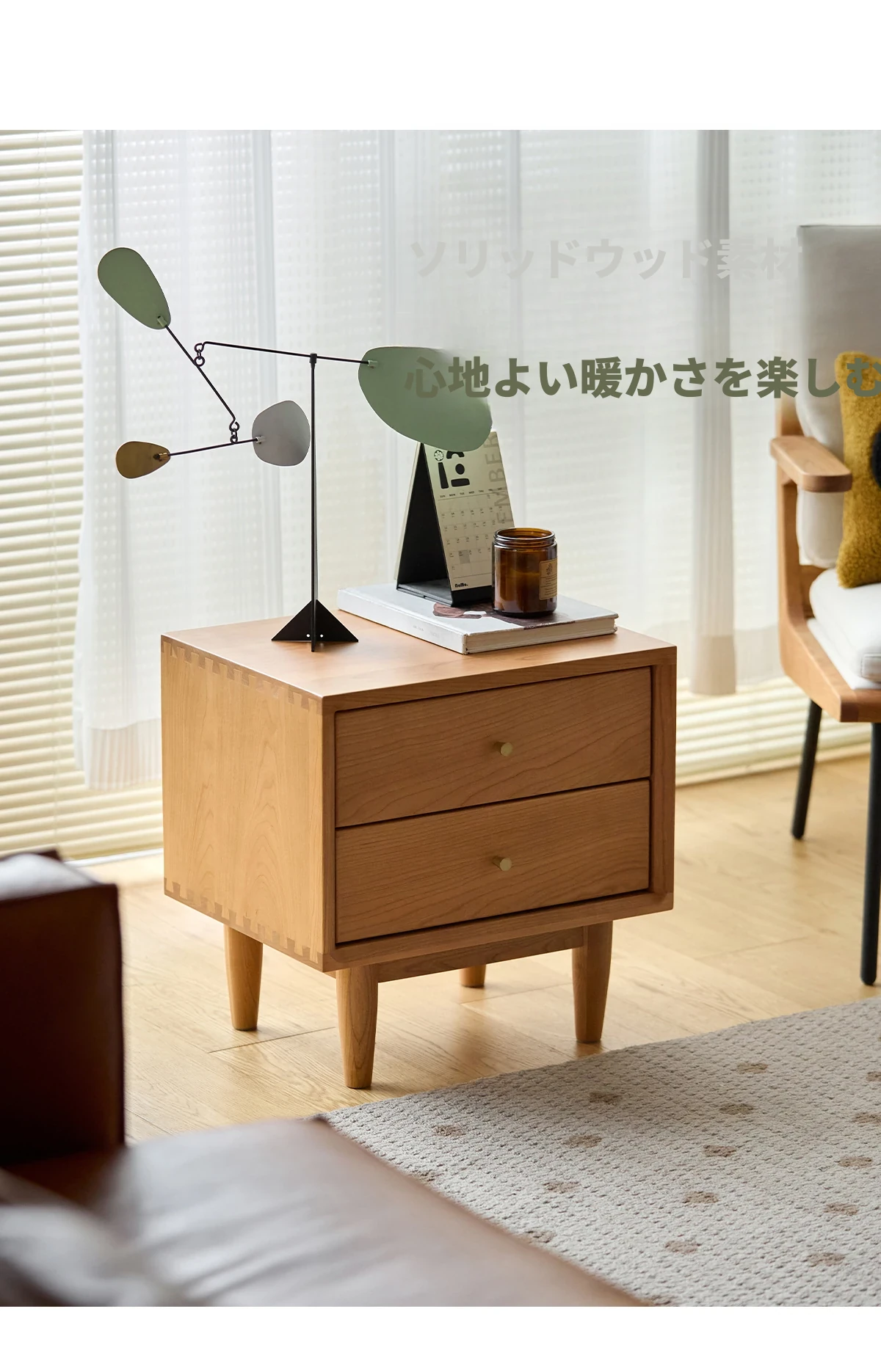 北欧スタイルの天然木製ベッドサイド家具 - スマート収納でお部屋をすっきり美しく