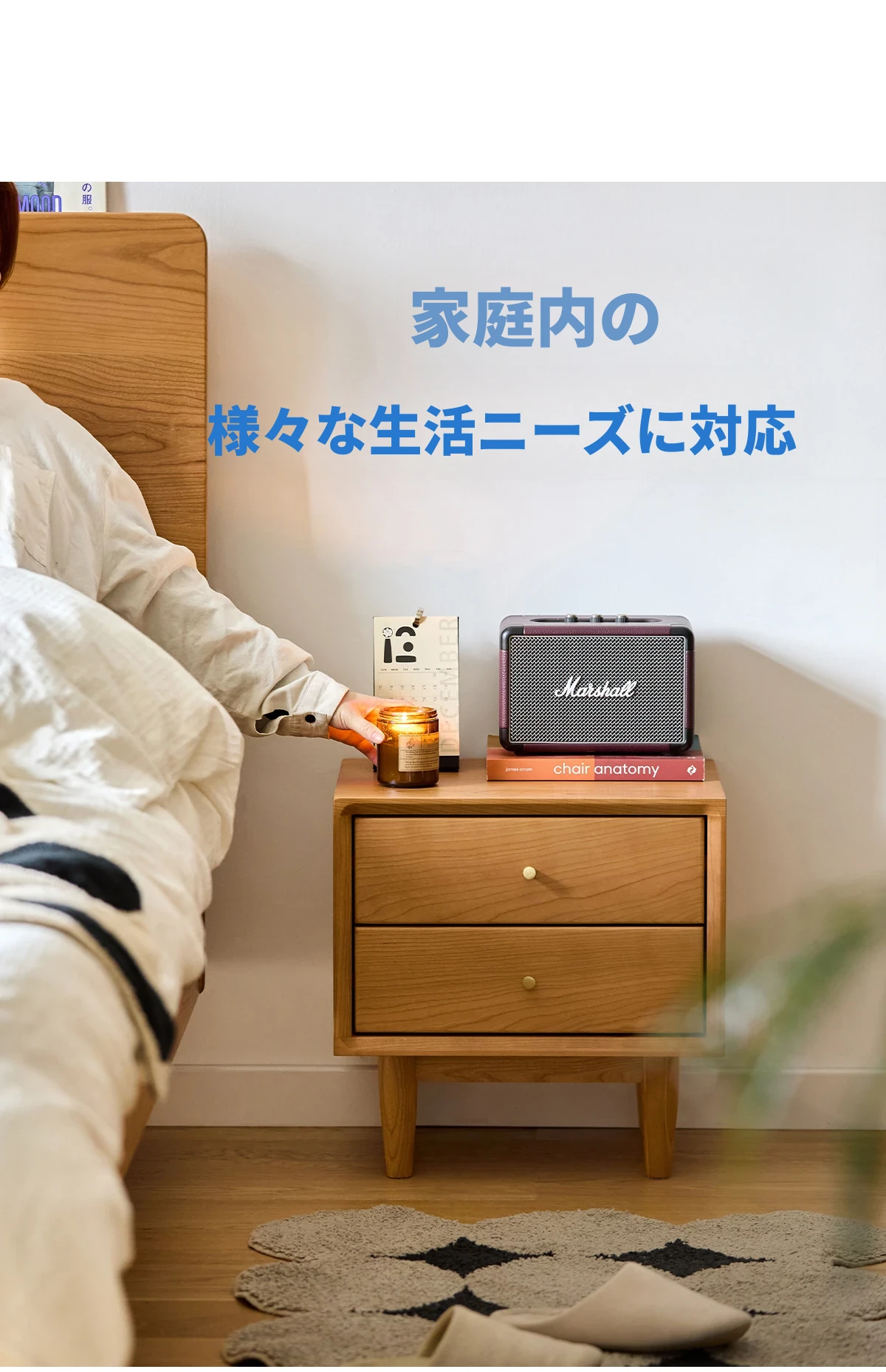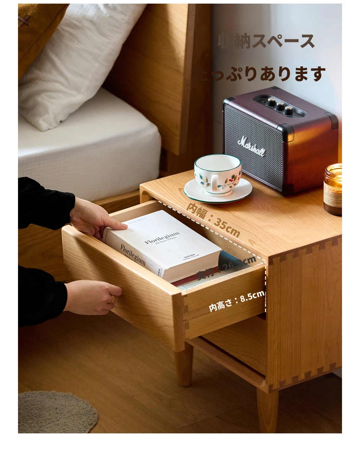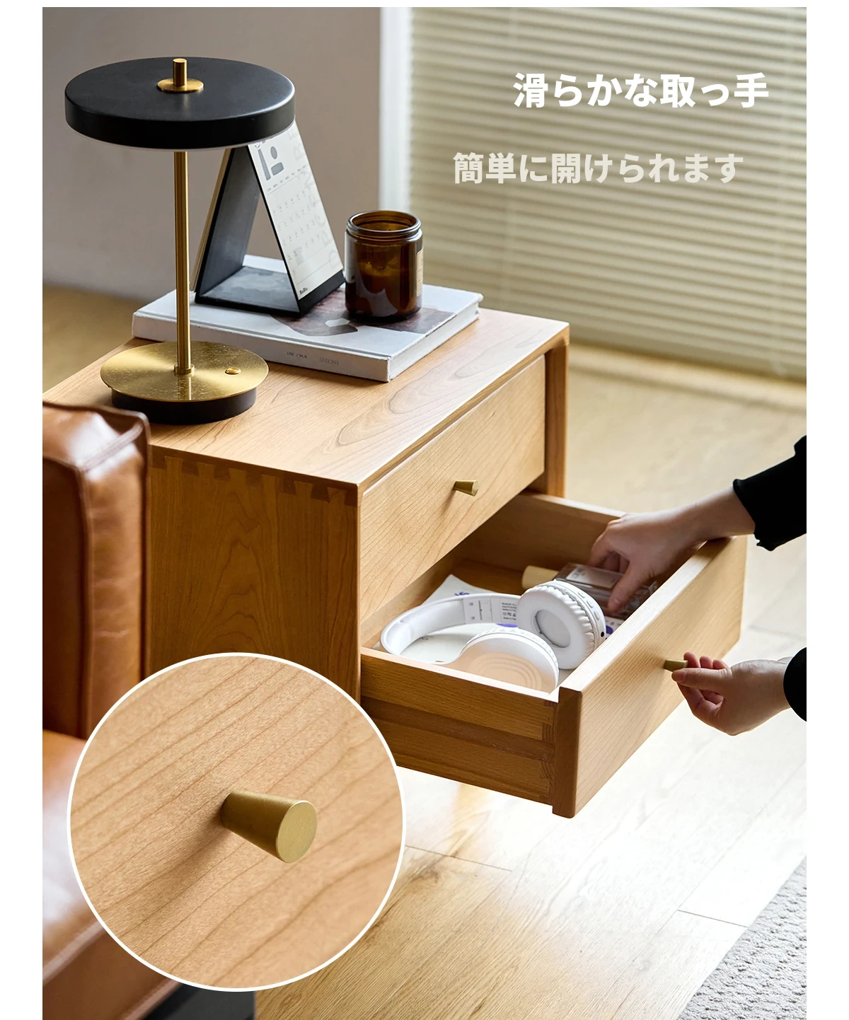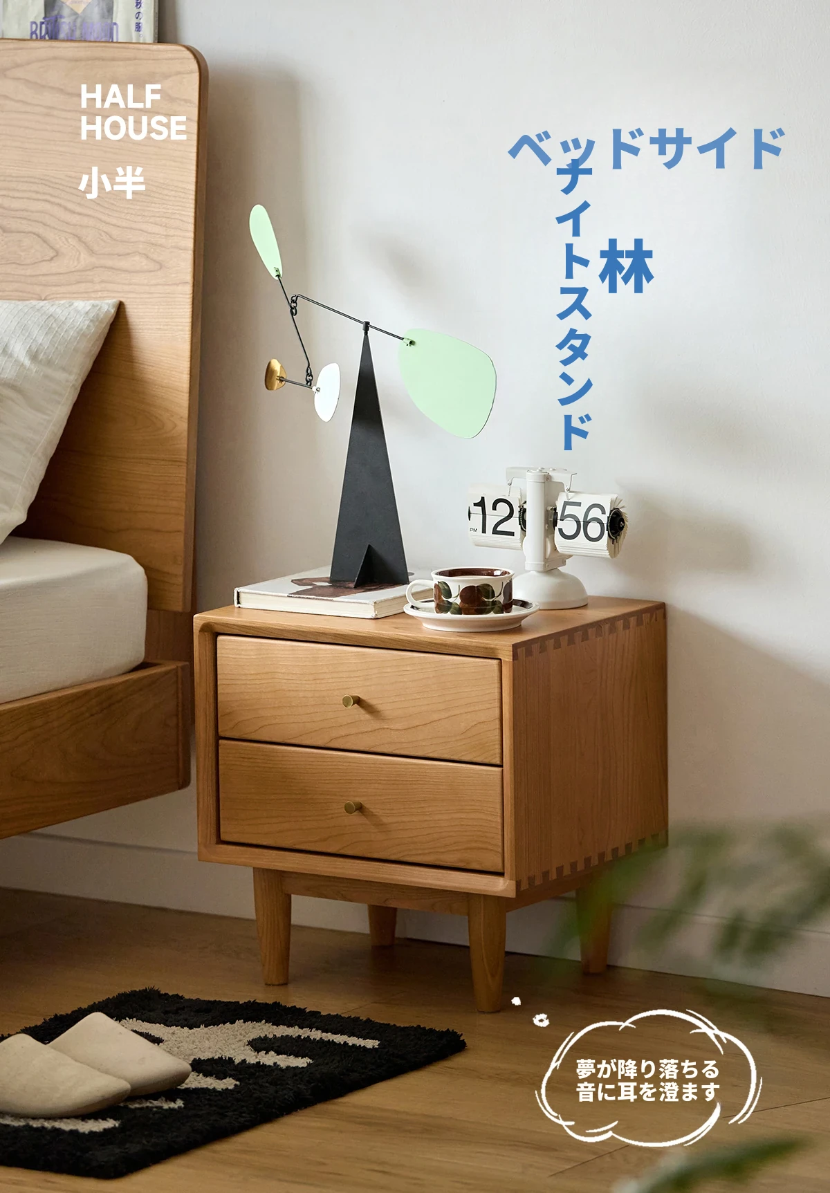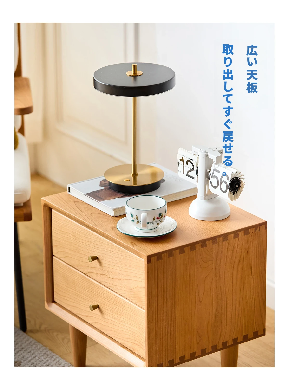 北欧スタイルの天然木製ベッドサイド家具 - スマート収納でお部屋をすっきり美しく
