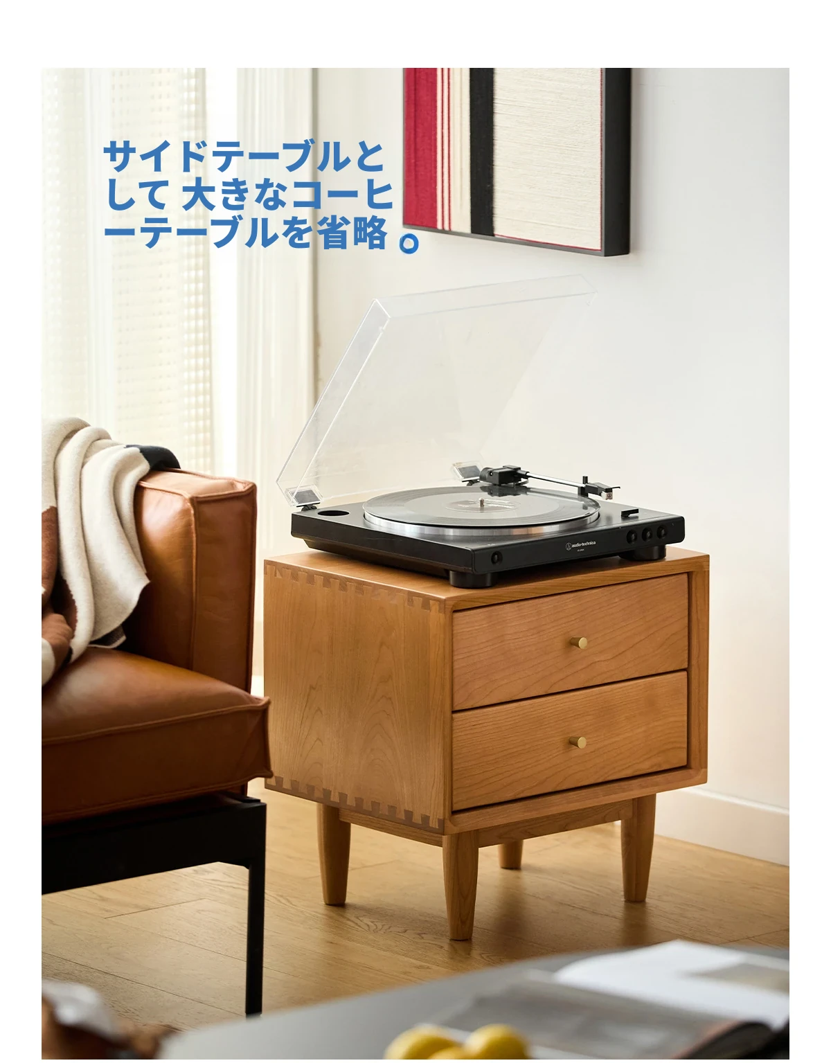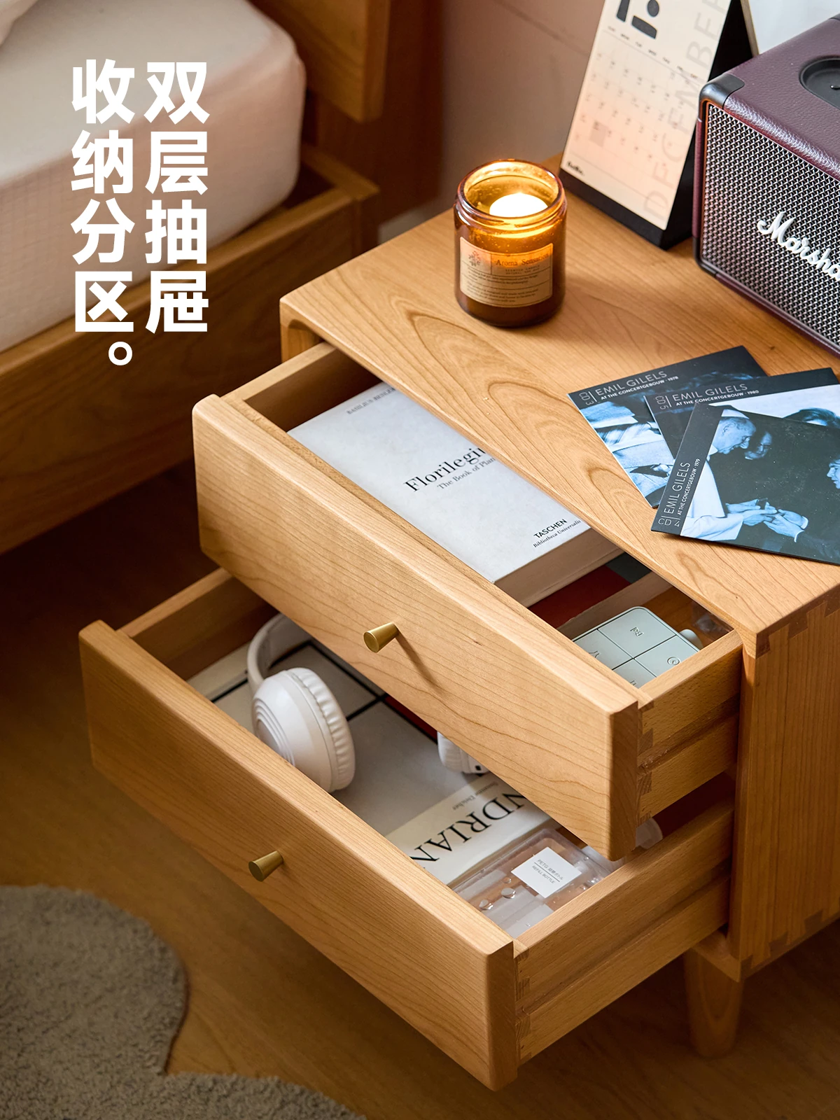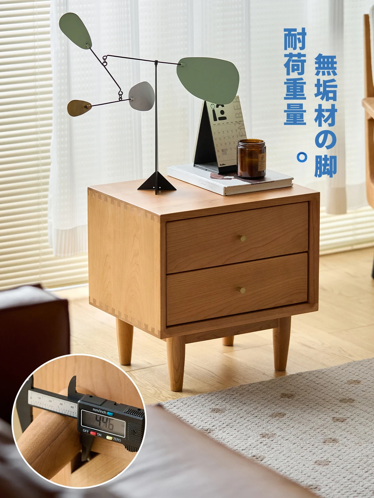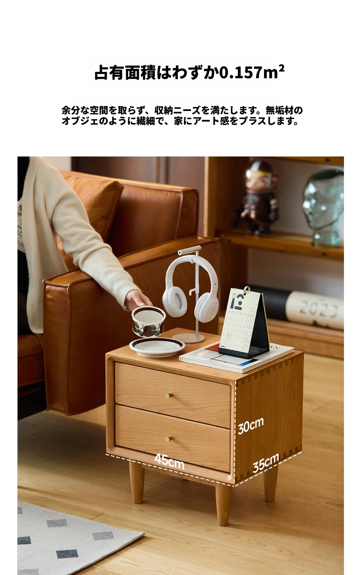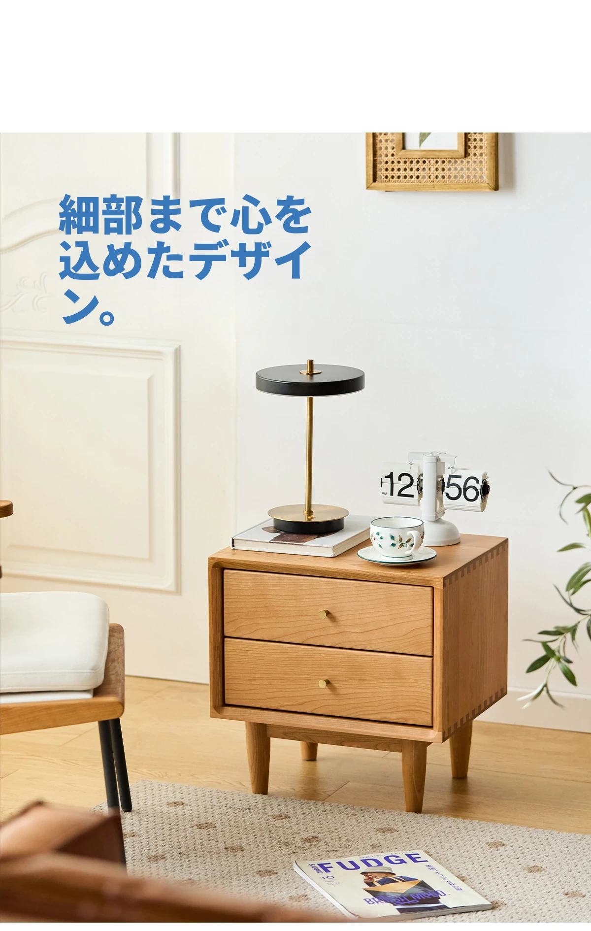北欧スタイルの天然木製ベッドサイド家具 - スマート収納でお部屋をすっきり美しく