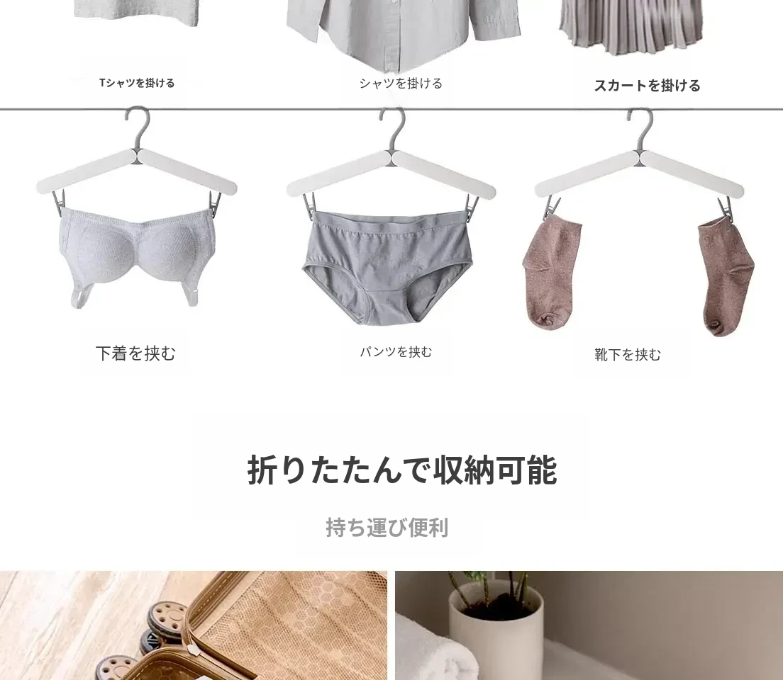 折りたたみソックスハンガー - 旅行や出張、学生寮に最適!コンパクトで持ち運び便利、衣類をしっかり干せる優れたアイテムです。収納も簡単で、スペースを節約。あなたの旅のお供に最適です!