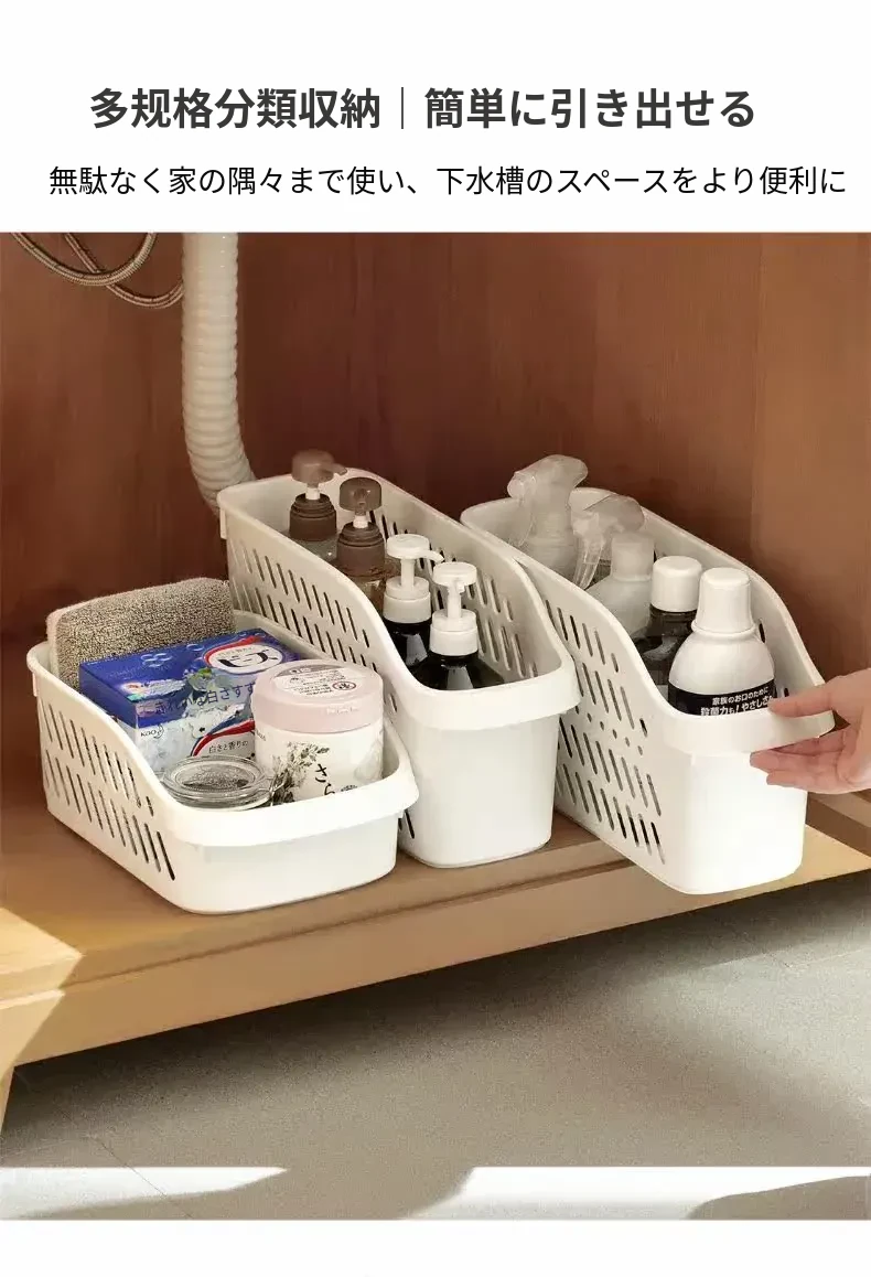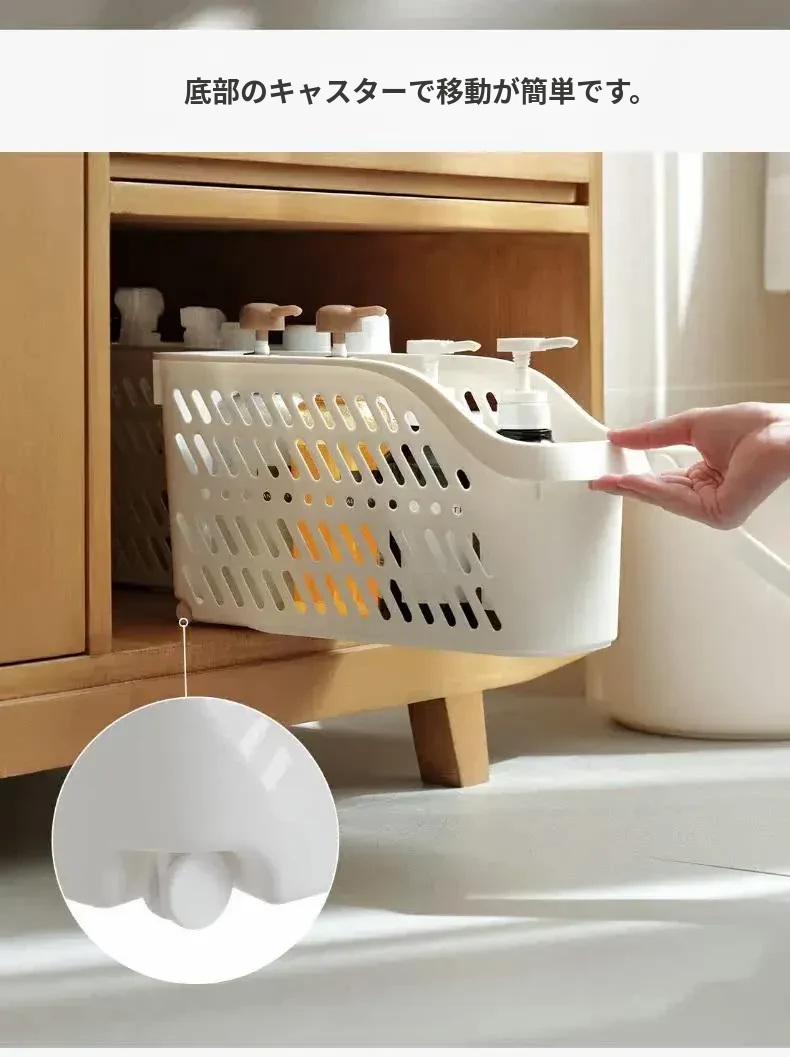 キッチン収納ラック 滑り輪付き収納バスケット シンク下キャビネット便利アイテム 収納ボックス 調味料整理に最適なキャビネット内の神アイテム!