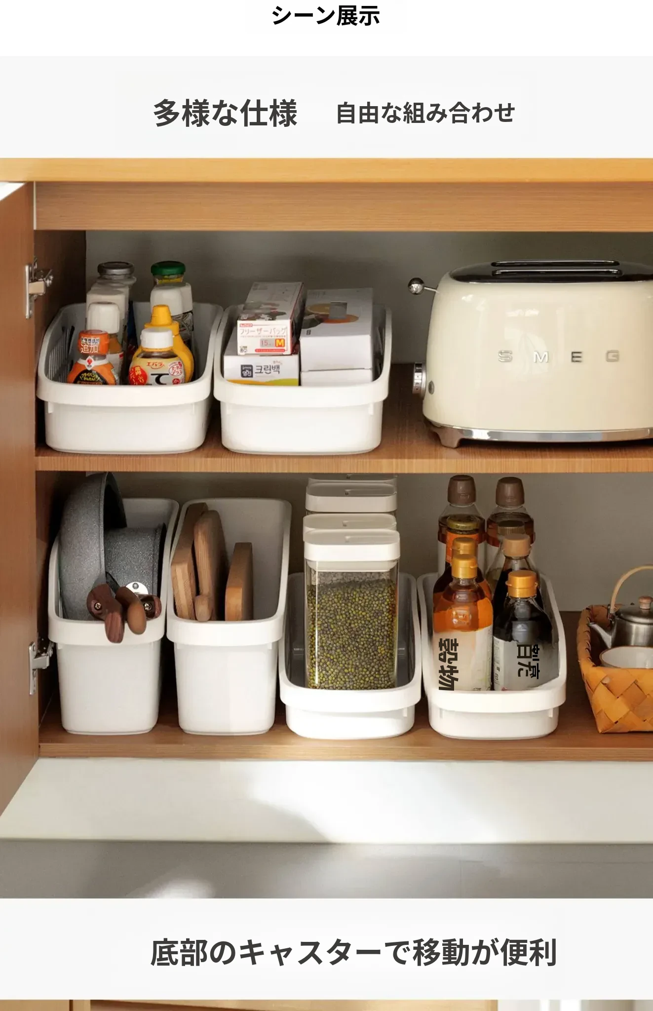 キッチン収納ラック 滑車付き収納バスケット 水槽下キャビネットに最適な収納ボックス 調味料や小物をスッキリ整理する便利アイテム!