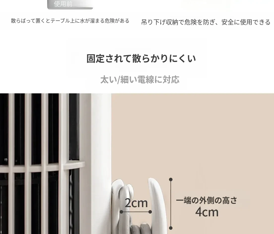シリコン製コード整理器 - キッチンや家庭に最適!穴を開けずに簡単取り付け、電源プラグや家電の配線をすっきり収納。生活空間を美しく整えましょう!
