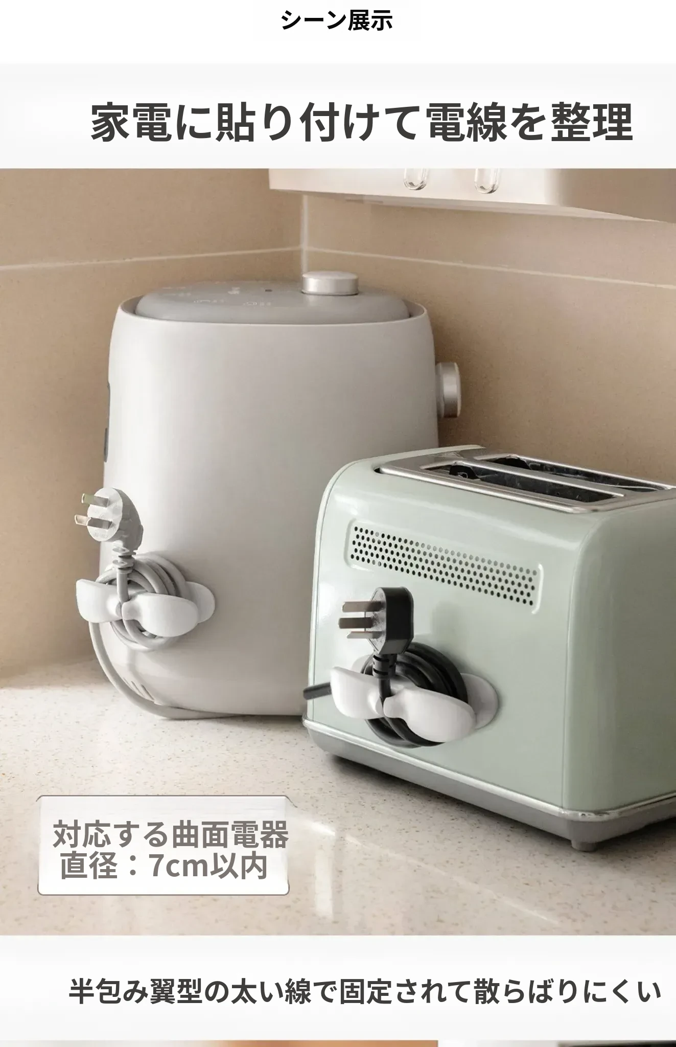 キッチン用電源コード整理器 - シリコン製で柔らかく、家電の配線をスッキリ整理!絡まりを防止し、使いやすさを追求した便利アイテム!