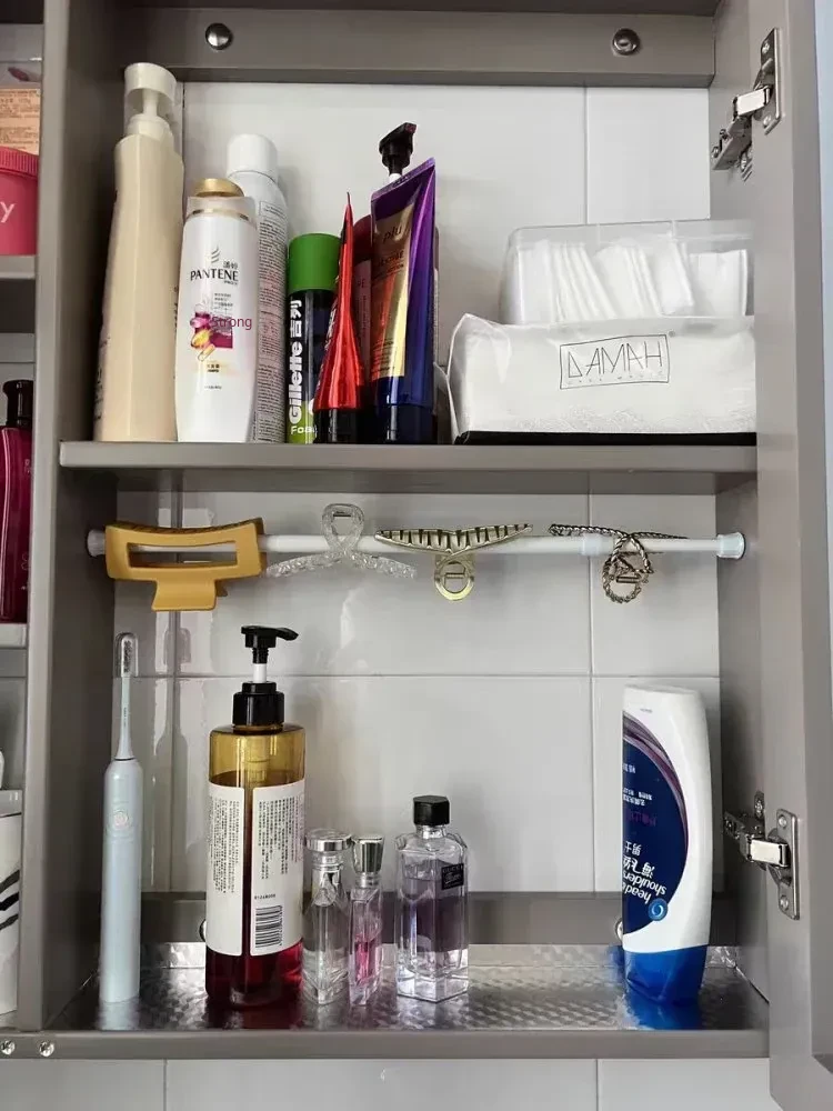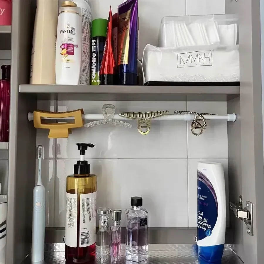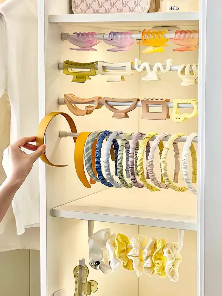 Space-Saving Hair Clip Organizer with Shark Clips - Wall-Mounted, No Drilling Required, Adjustable Rod for Kids' Headbands and Hair Accessories Storage