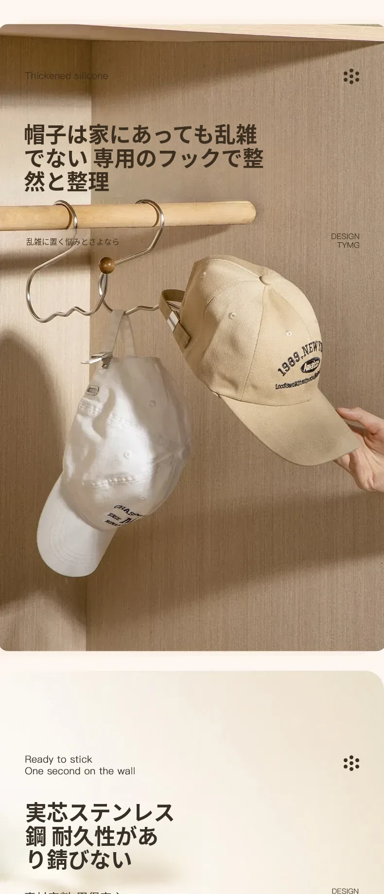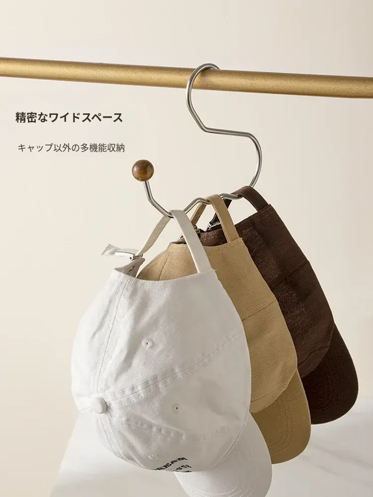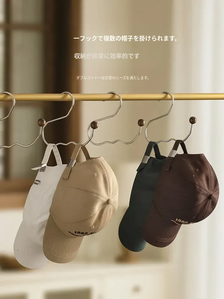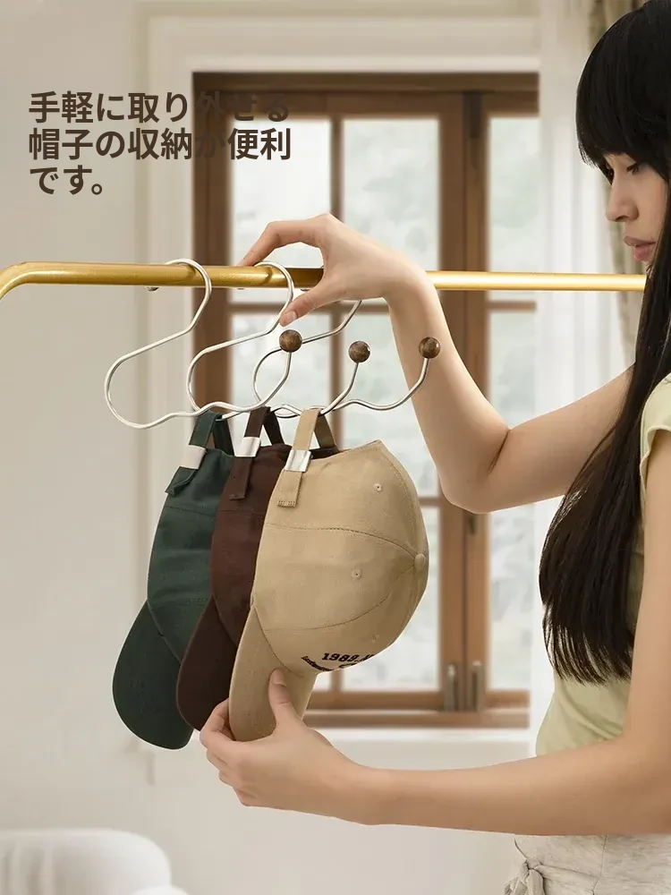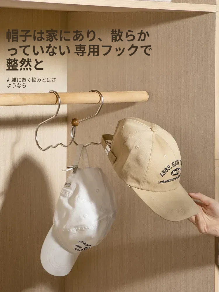 ステンレス製の帽子収納ラック - 穴を開けずに簡単取り付け!多機能木製ハンガーでクローゼットをすっきり整理!おしゃれで実用的な収納アイテムです。