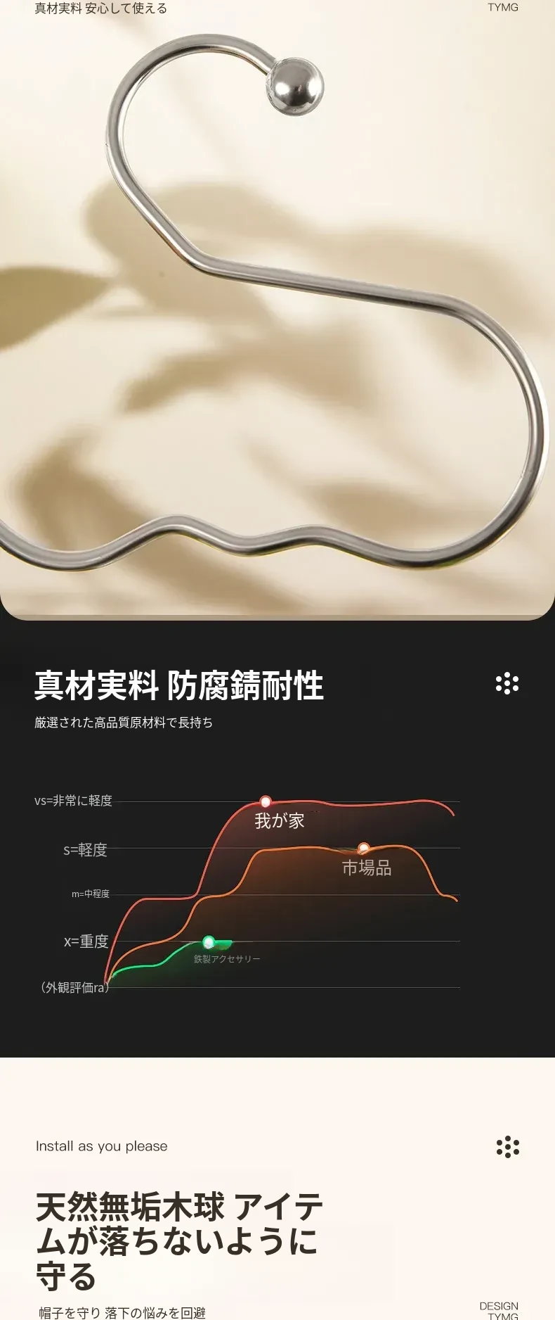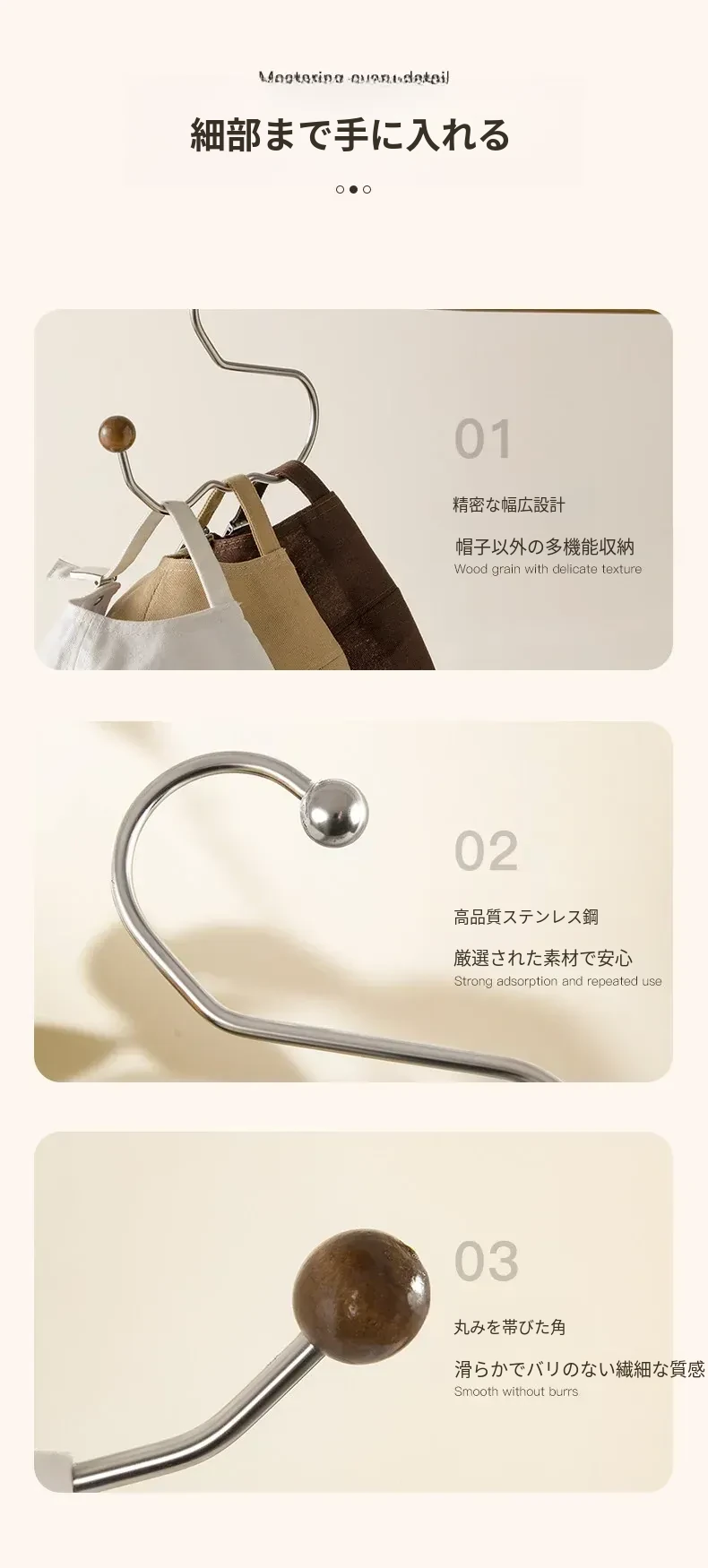 ステンレス製ウッドテクスチャーキャップハンガー