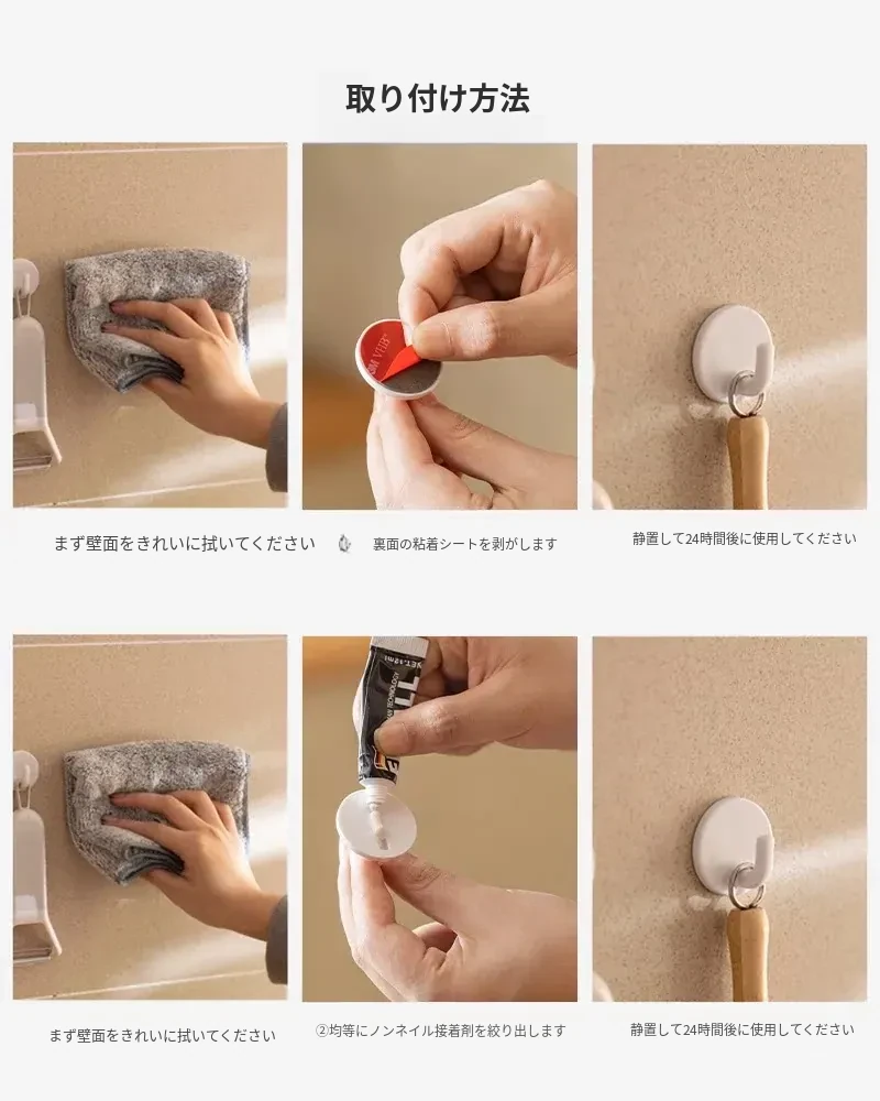 強力粘着フック - バスルームやトイレ、キッチンの鍵を壁に掛けるのに最適!穴を開けずに取り付け可能、跡が残らないので安心!ドアの裏にぴったりフィットする便利な粘着フック。