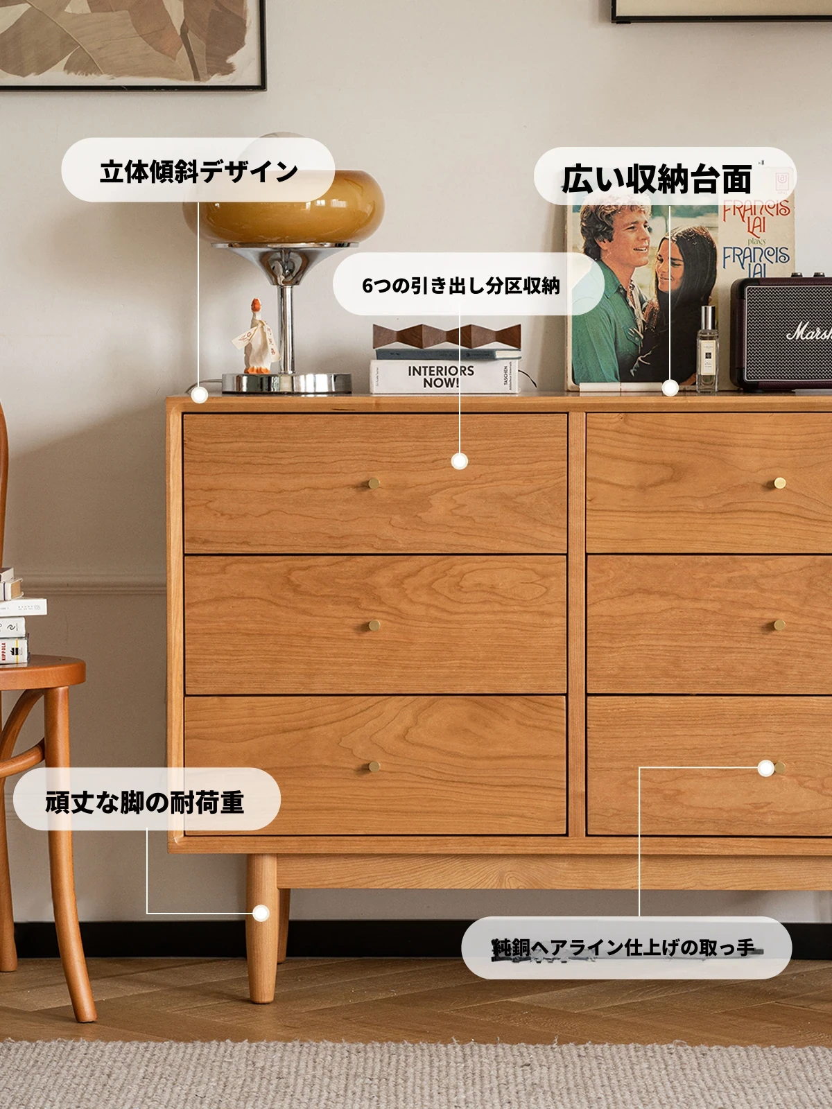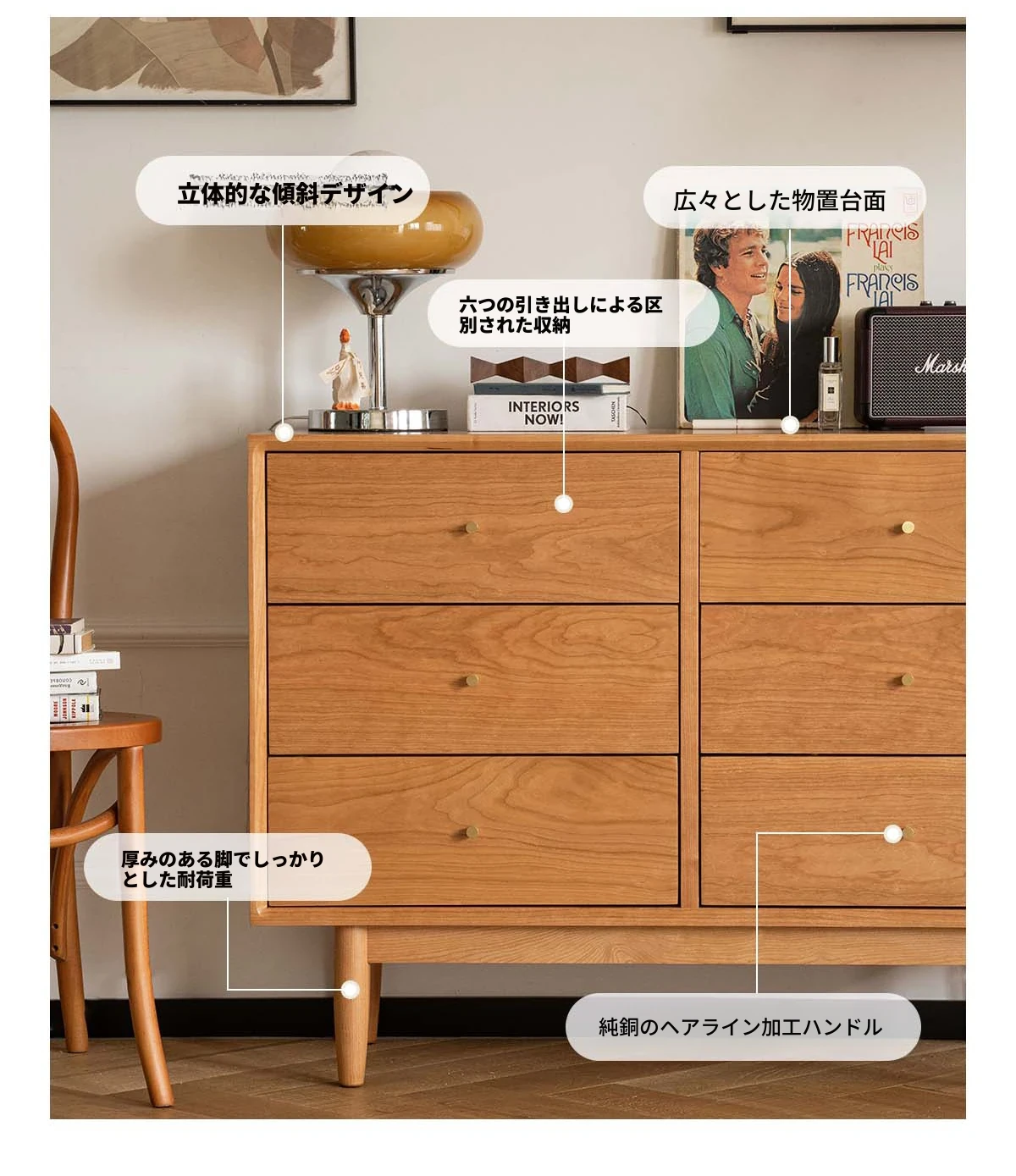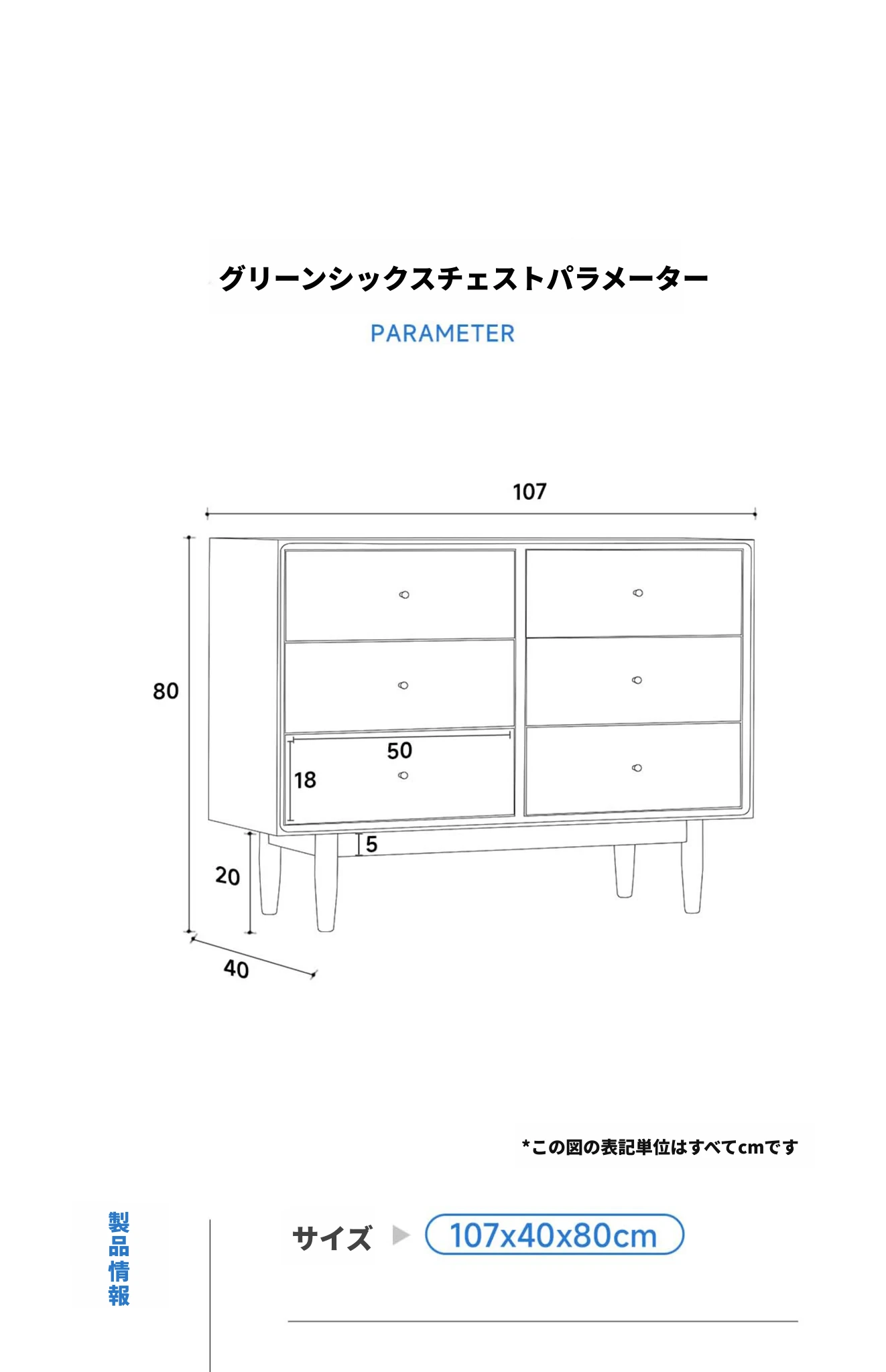 グリーン六段チェスト チェリーホワイト