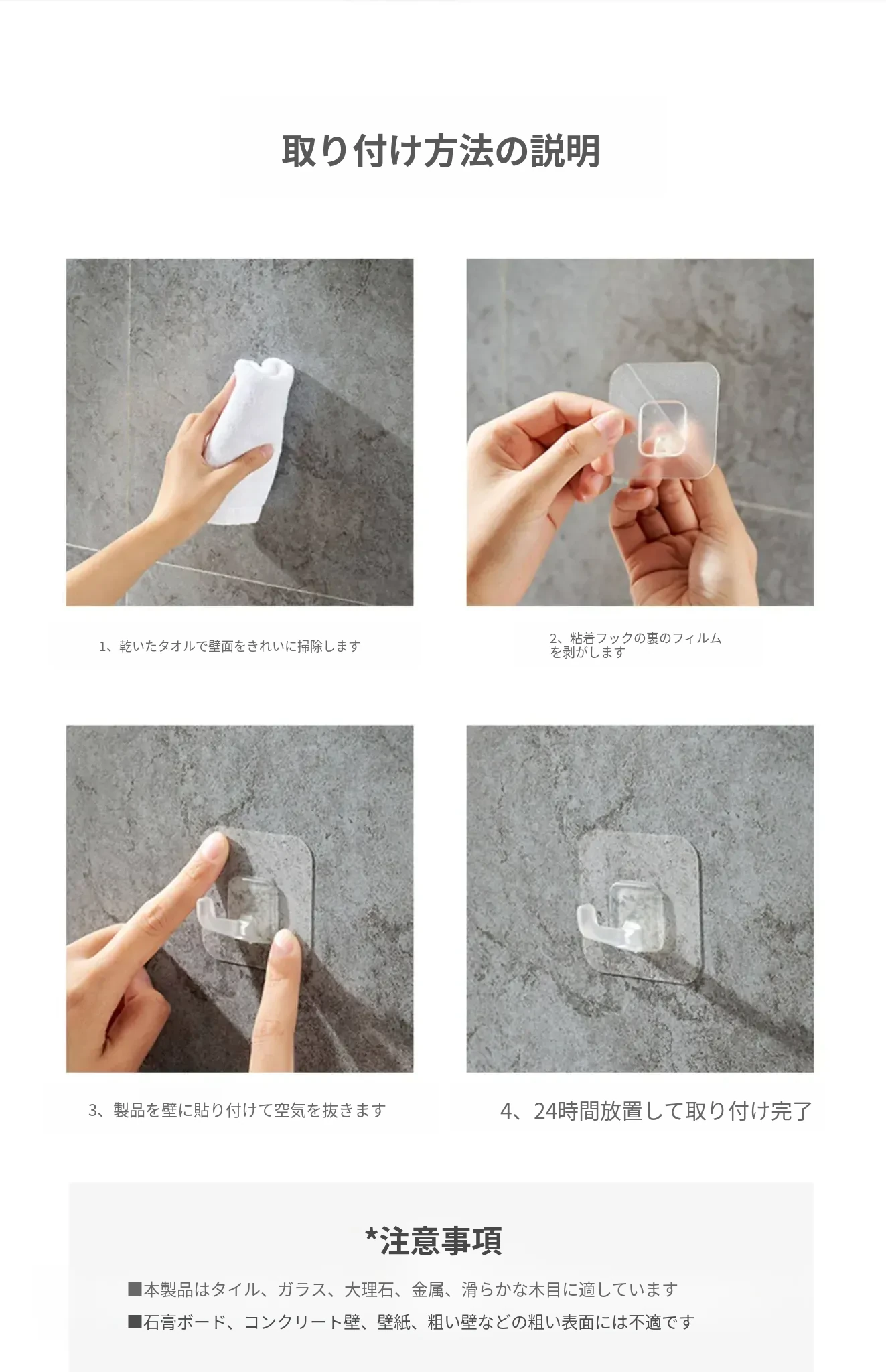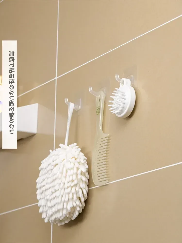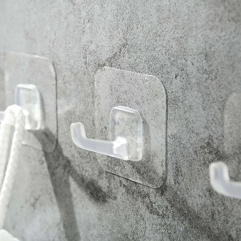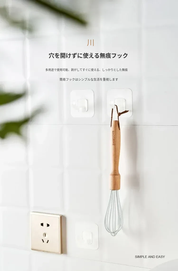 強力粘着フック 壁掛け透明 無痕キッチン用 取り付け不要の粘着フック プラスチック製 ドアの裏に最適!おしゃれで便利な収納アイテム!