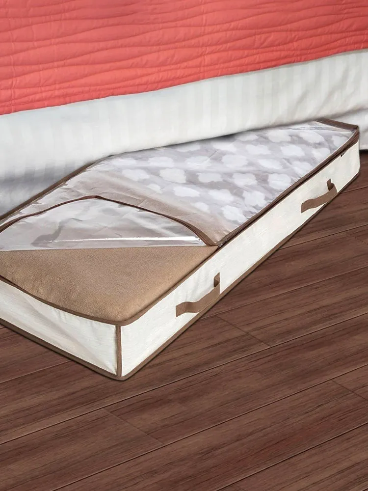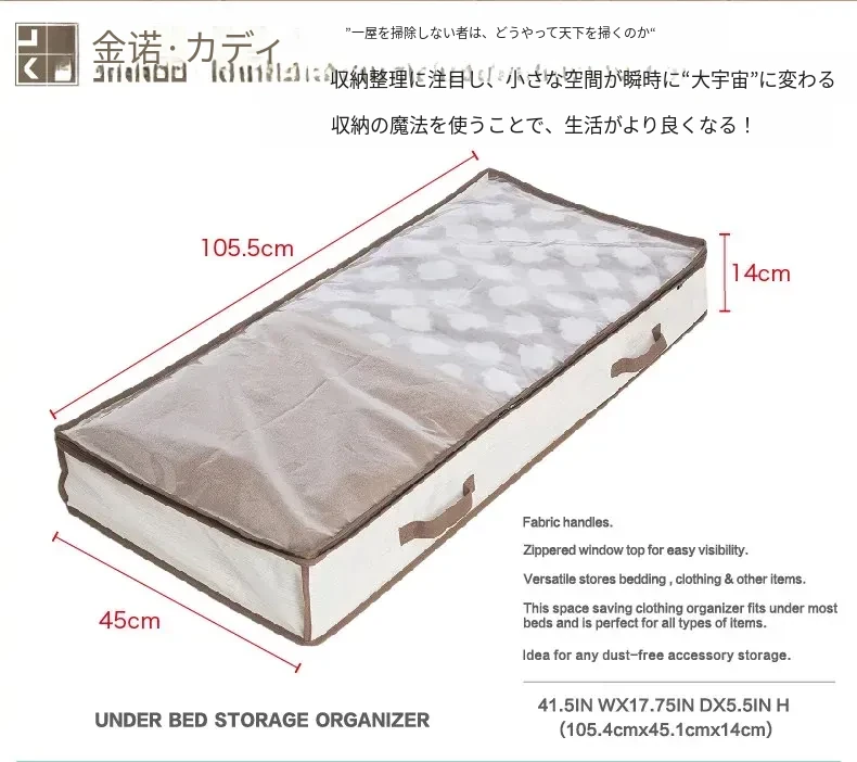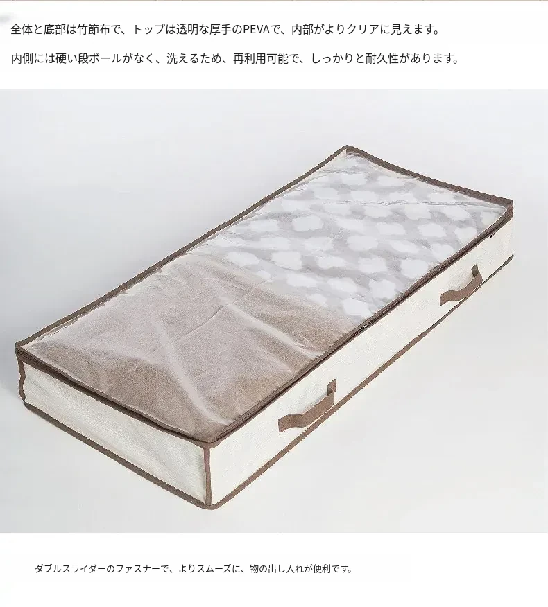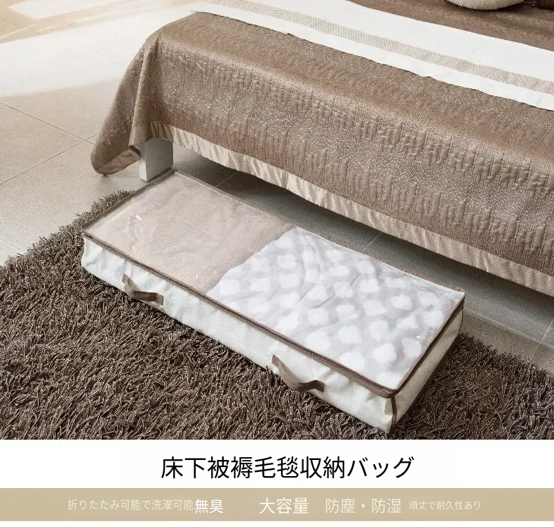 超薄布製ベッド下収納ボックス - 引き出し式毛布&布団整理の必需品!埃を防ぎ、スマートに収納。お部屋をスッキリ片付ける魔法の収納アイテム!