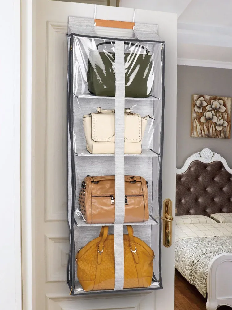 Wall-Mounted Bag Organizer - Space-Saving Hanging Storage for Home, Dorms, and Closets with Full-Cover Transparent Design - Perfect for Hats and Bags!