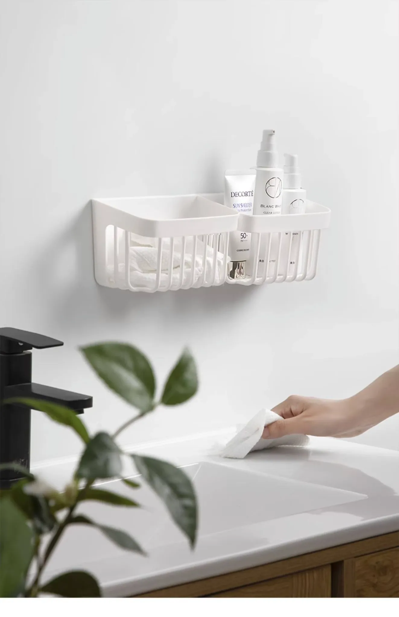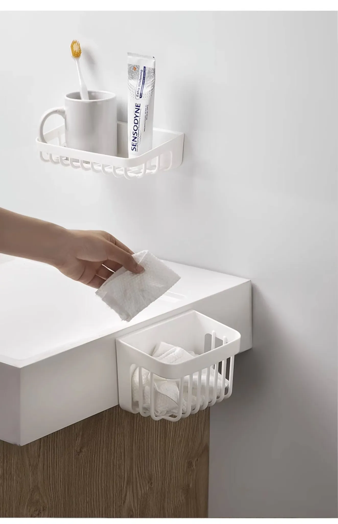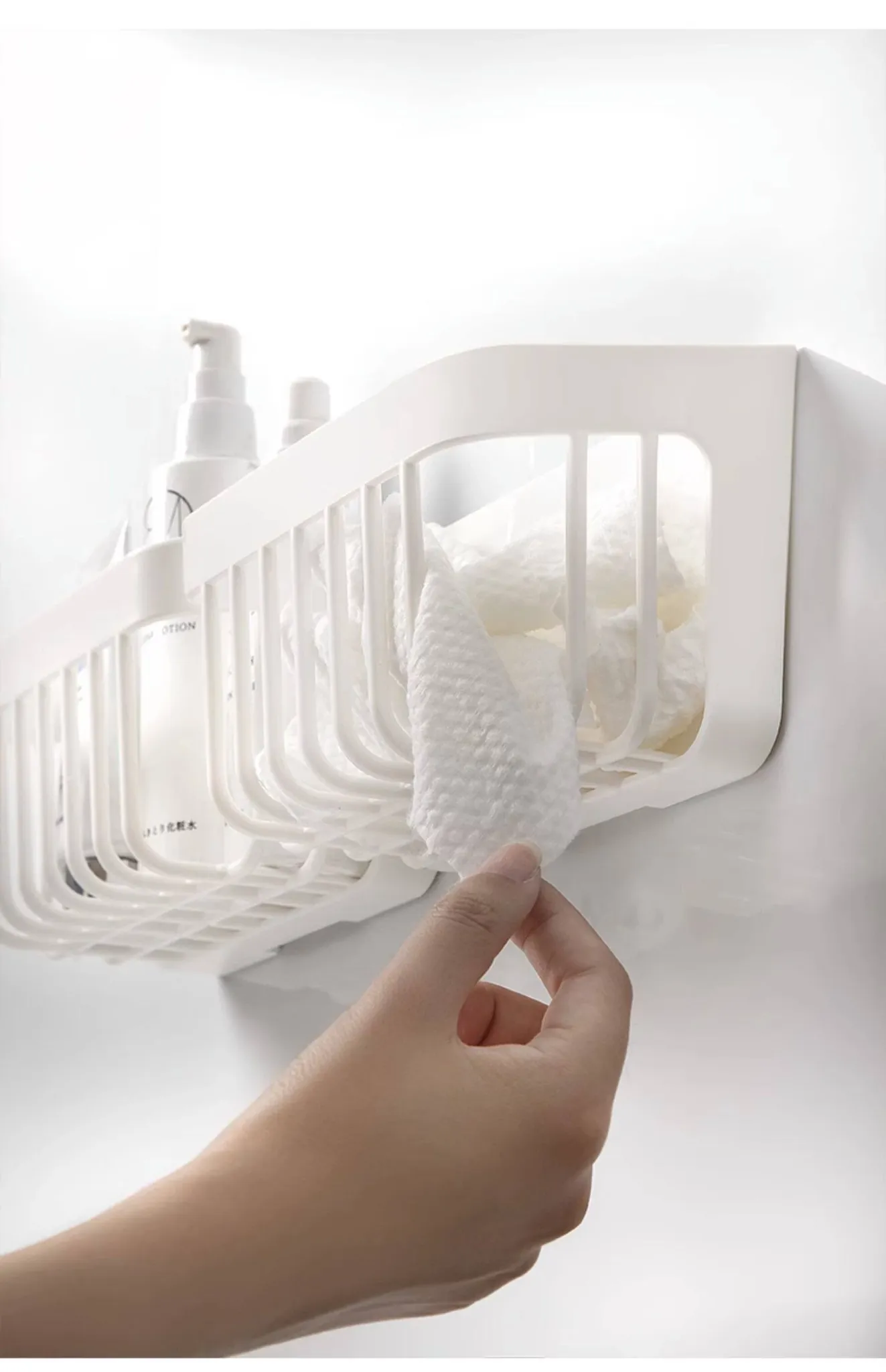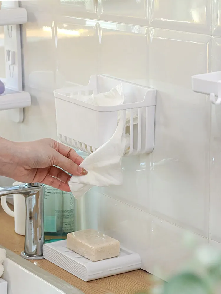 壁掛け式洗顔タオル収納ボックス|使い捨てティッシュリサイクルバスケット|スタイリッシュな収納ラック|水切り機能付きで清潔を保つ便利アイテム!