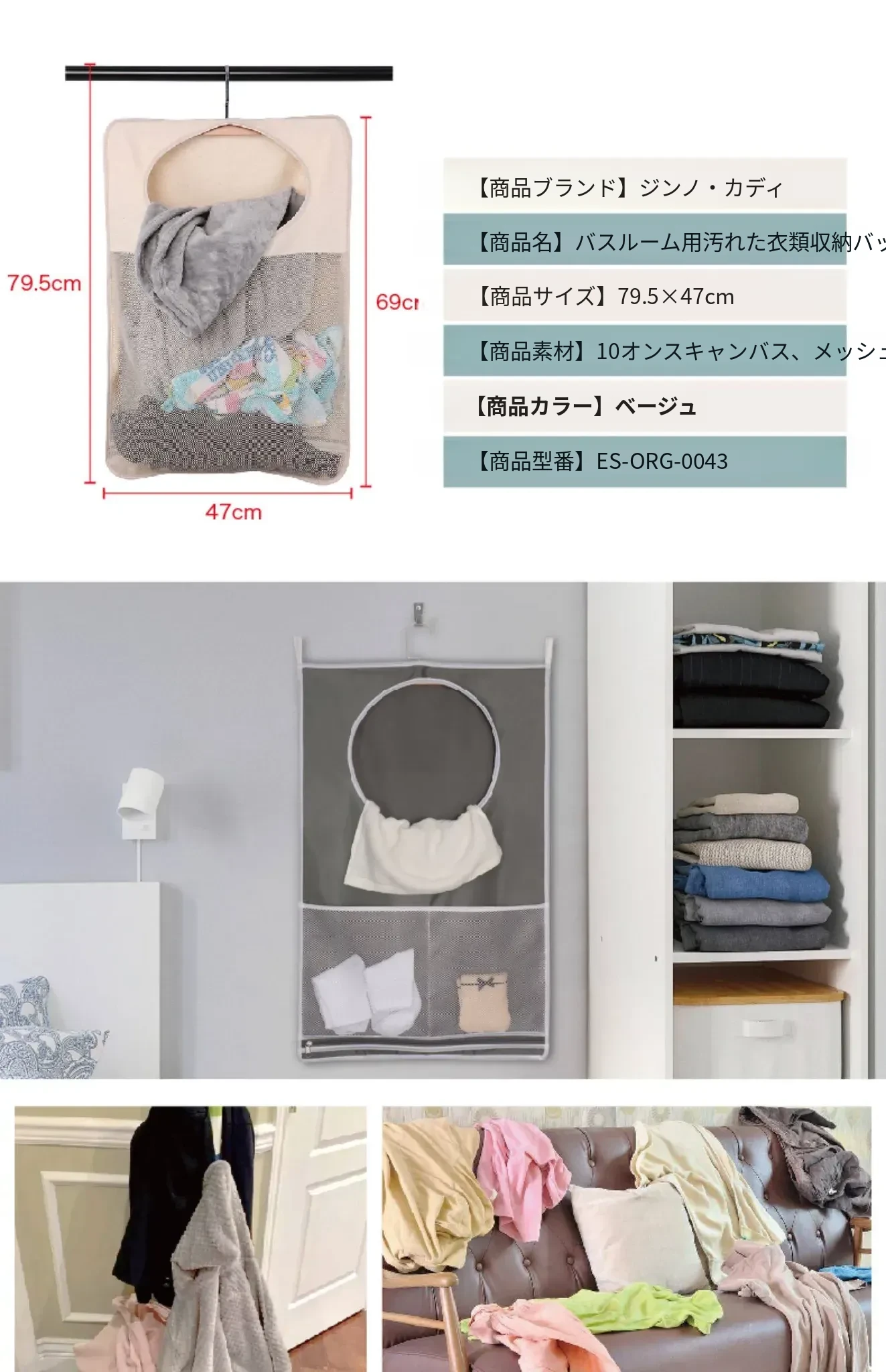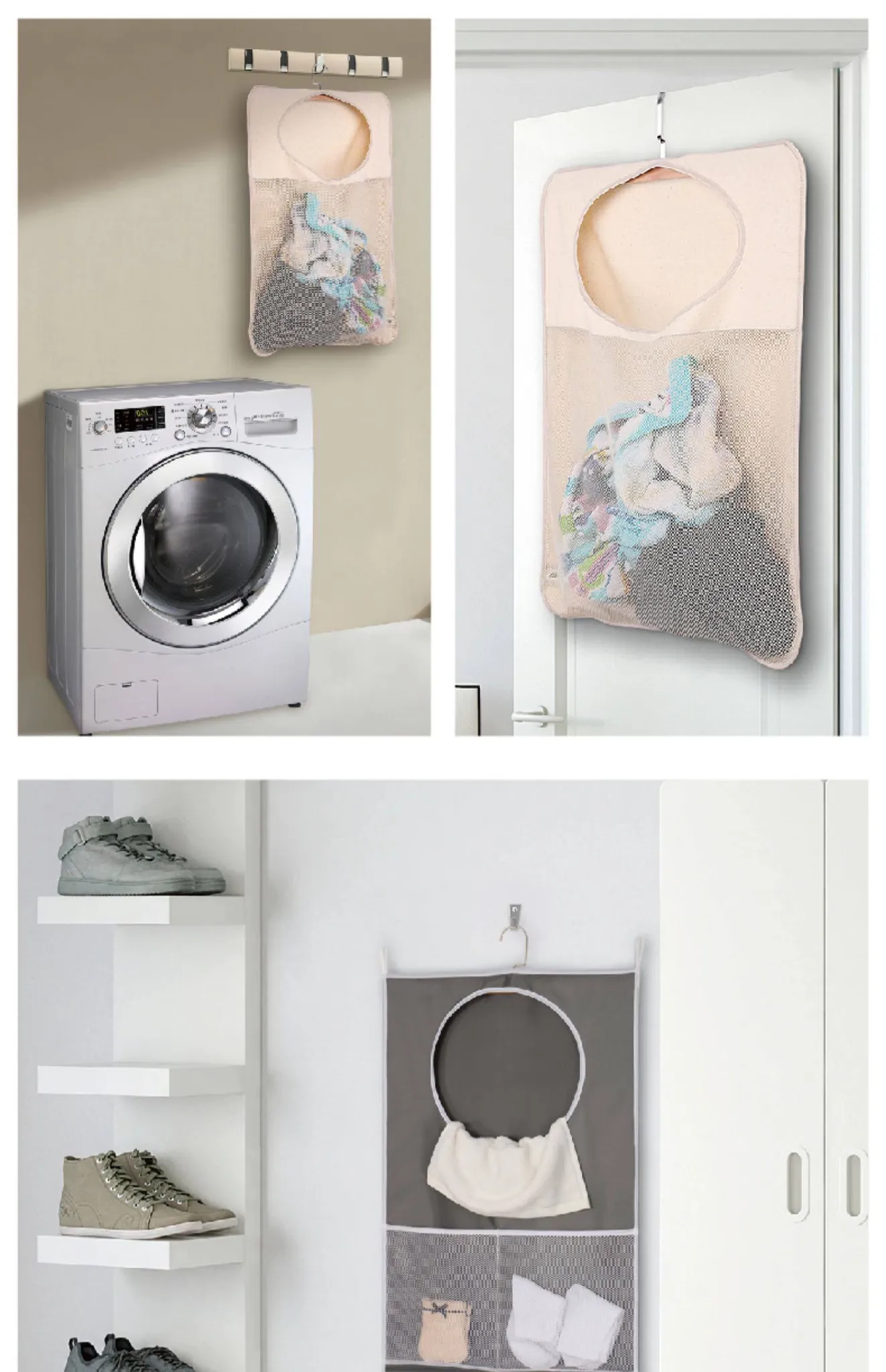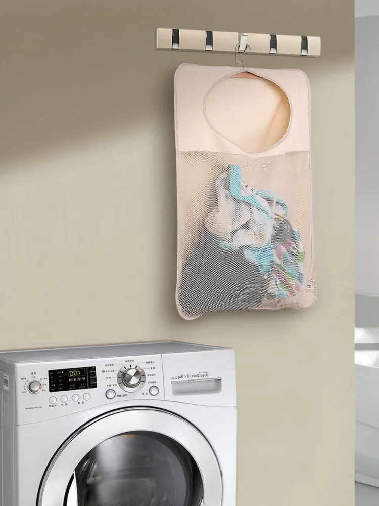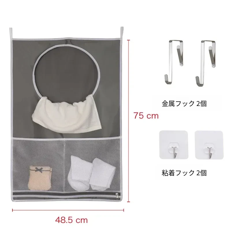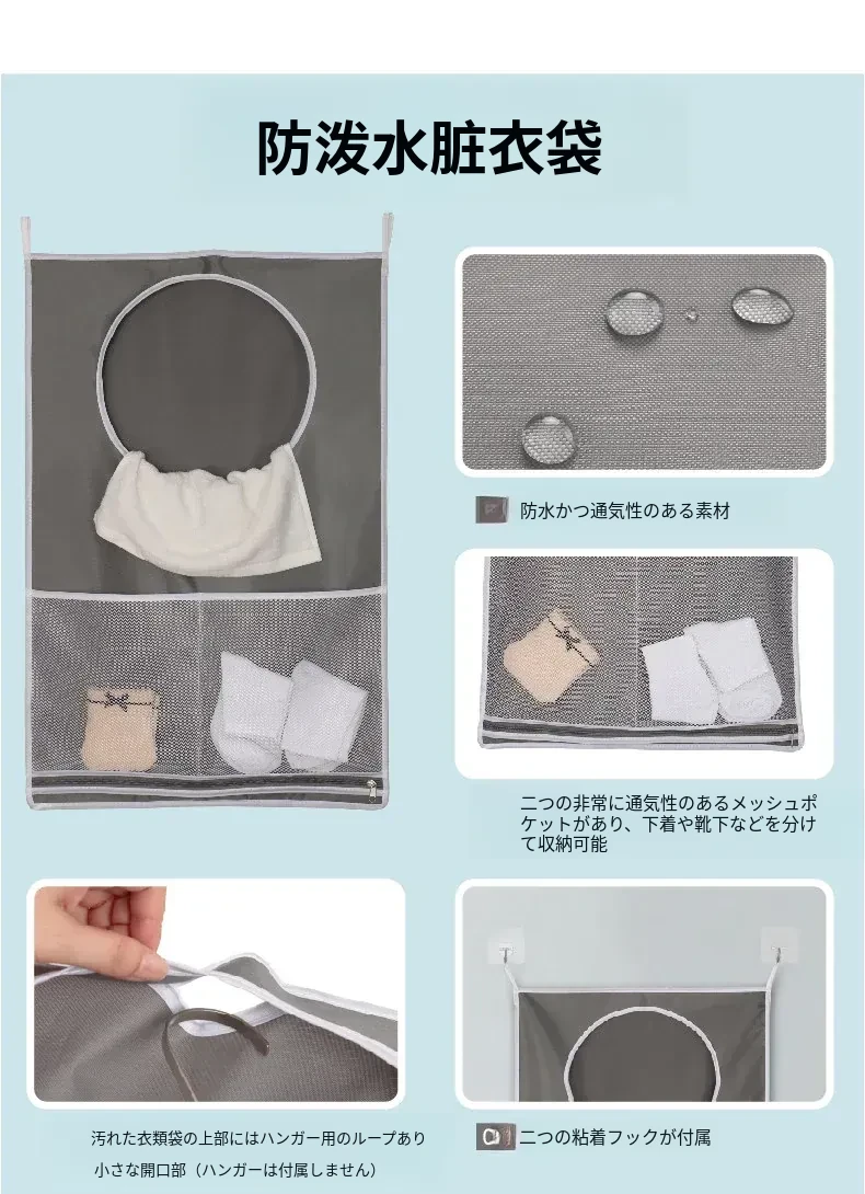 バスルームの汚れた衣類をスマートに整理!壁掛け収納ポケットで家の中をスッキリ。シャワールームのドアの後ろにぴったりフィットする便利な衣類収納グッズ。おしゃれで実用的な収納ソリューション!