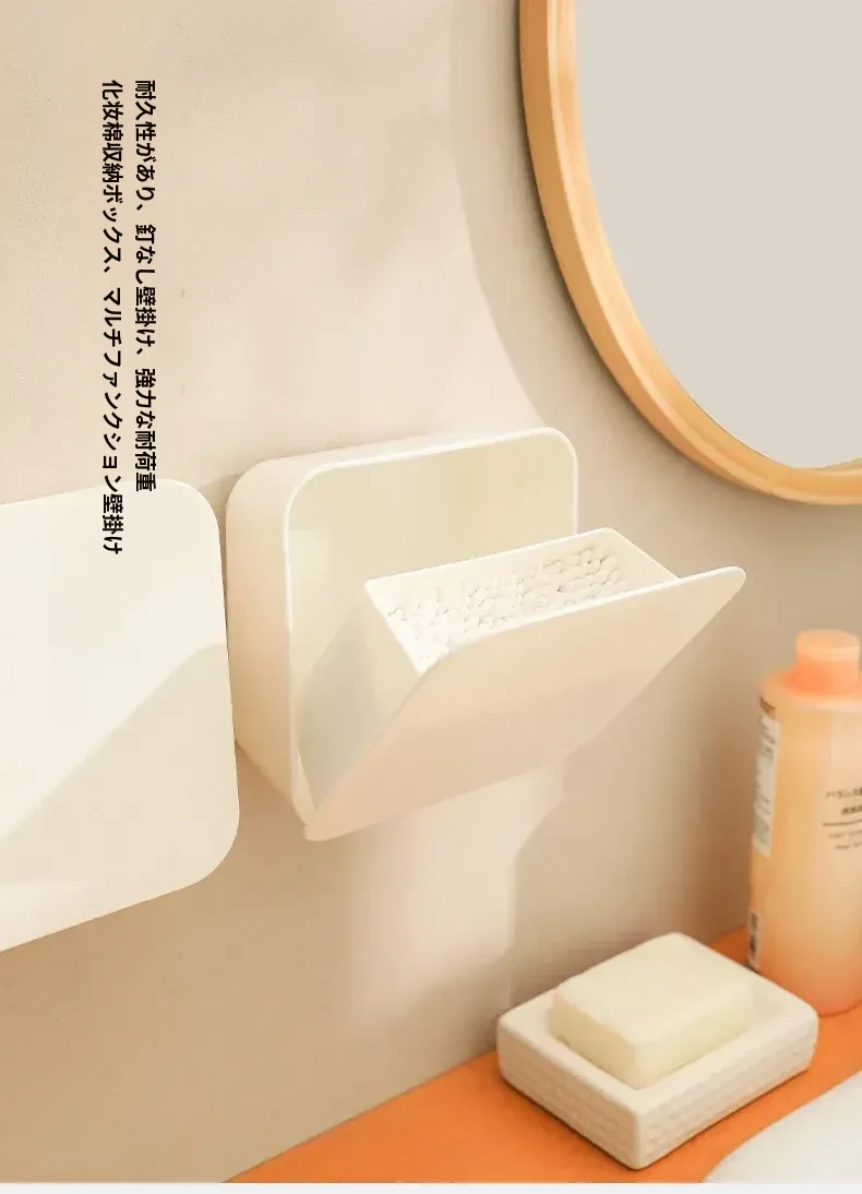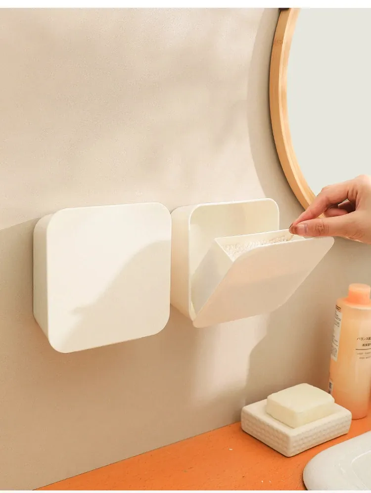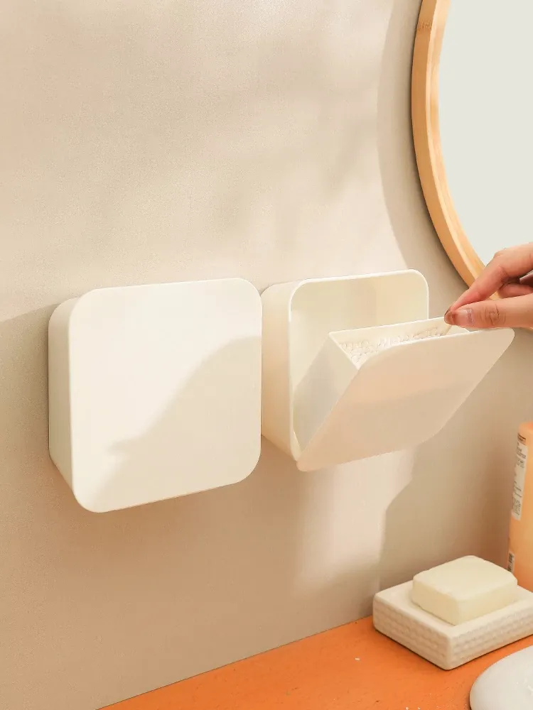 壁掛け式化粧品用コットン収納ボックス – 蓋付きでほこりから守る!メイク落とし用コットンや綿棒をスタイリッシュに整理整頓。デスクや壁にぴったりの収納アイテムで、毎日の美容ルーチンをもっと便利に!