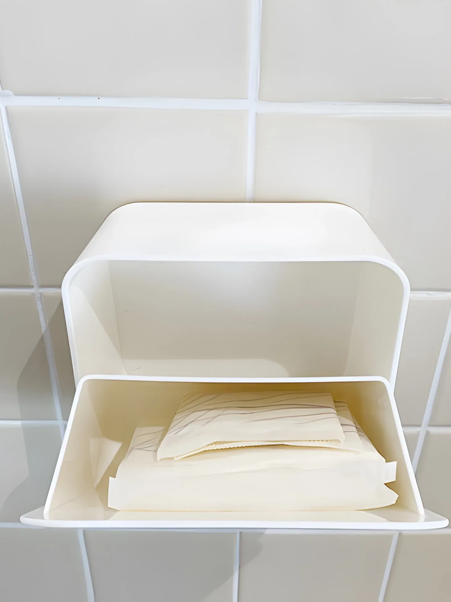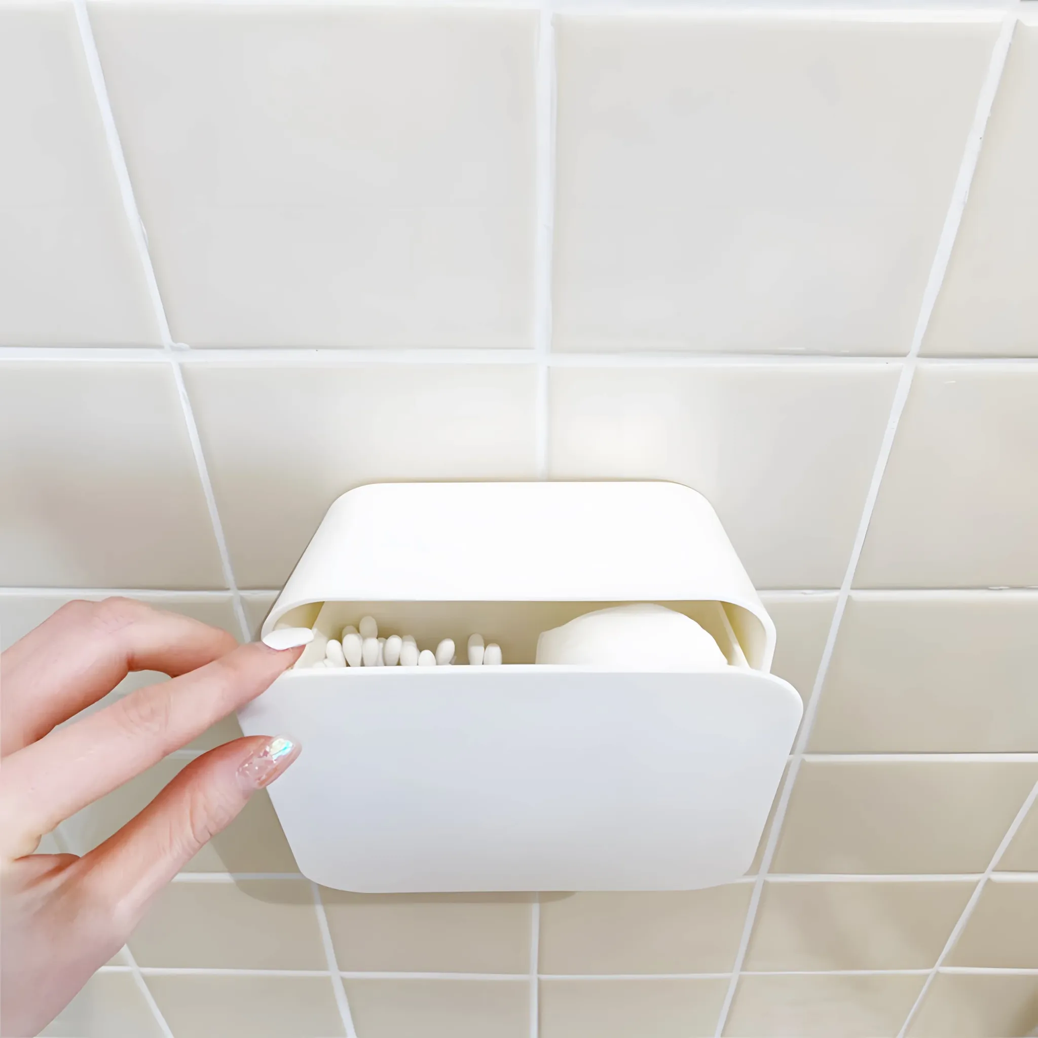 壁掛け式化粧コットン収納ボックス - ほこりを防ぐ蓋付き!メイク落とし用コットンや綿棒もスッキリ整理。デスク周りをおしゃれに保つ、便利で実用的なアイテムです!