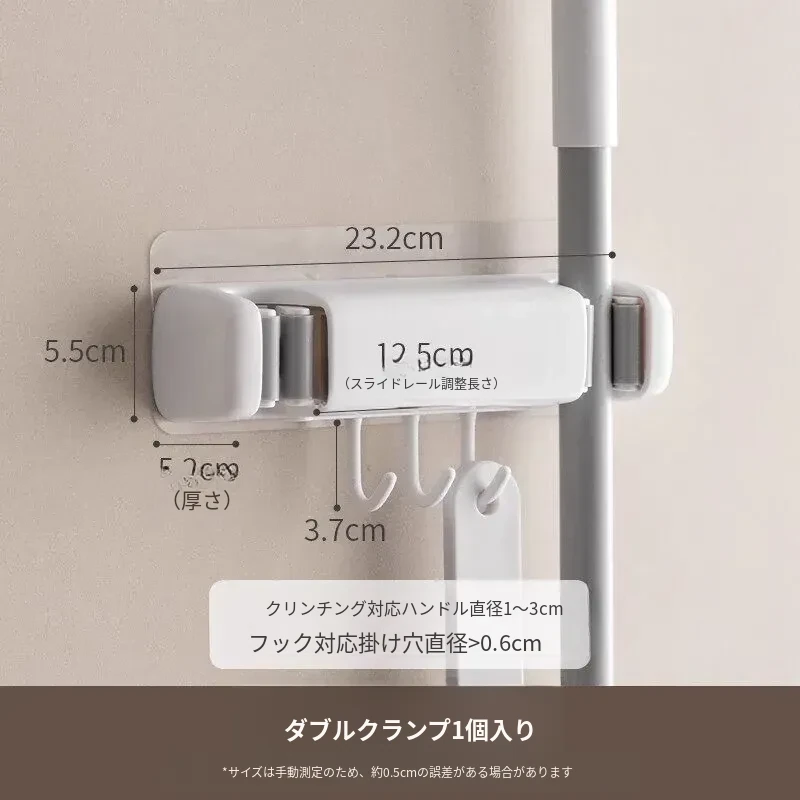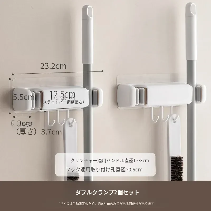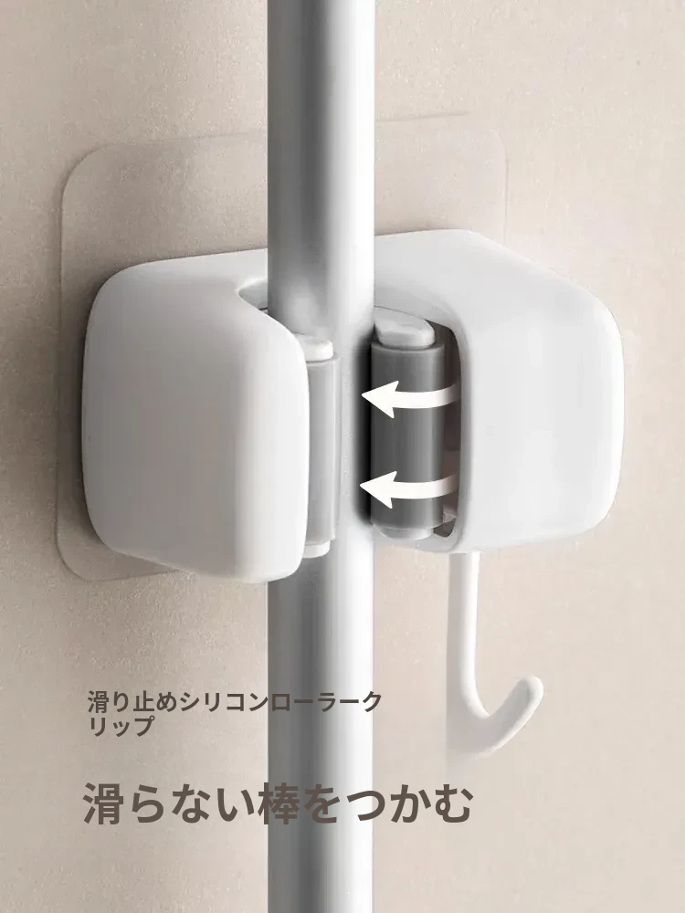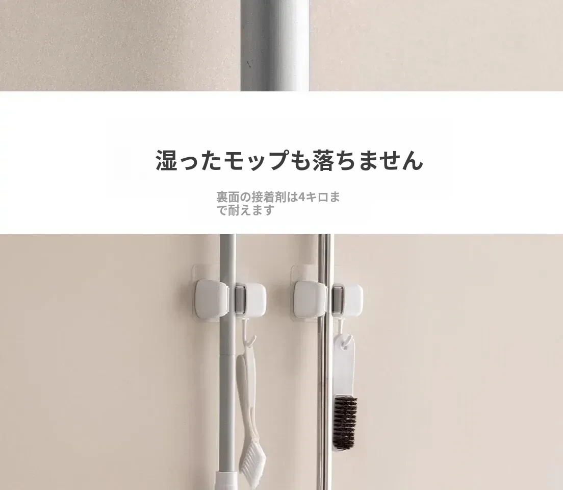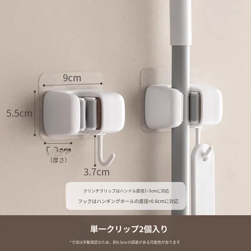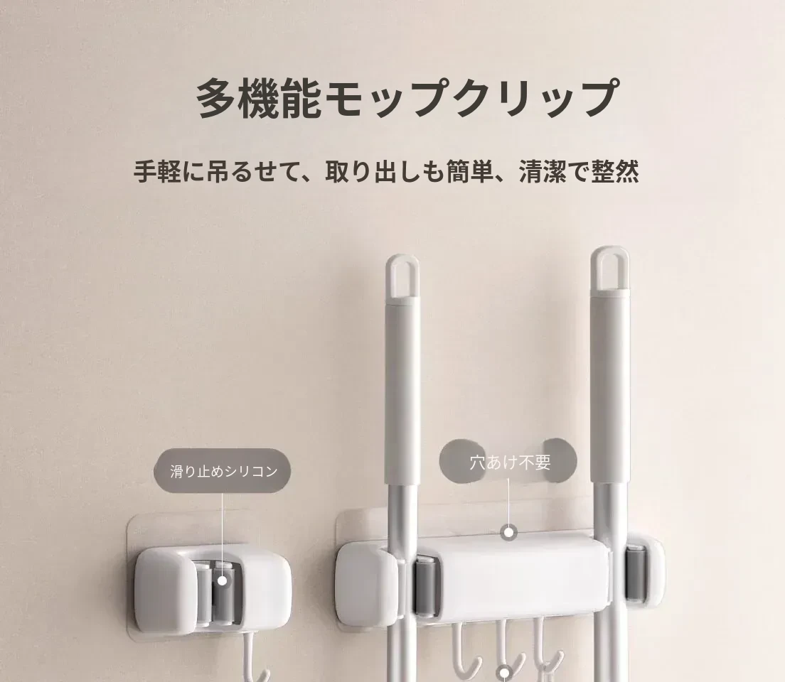 トイレ用モップフック - 穴を開けずに簡単取り付け!掃除道具の収納に最適な壁掛けクリップ。整理整頓が楽々、掃除がもっと効率的に!