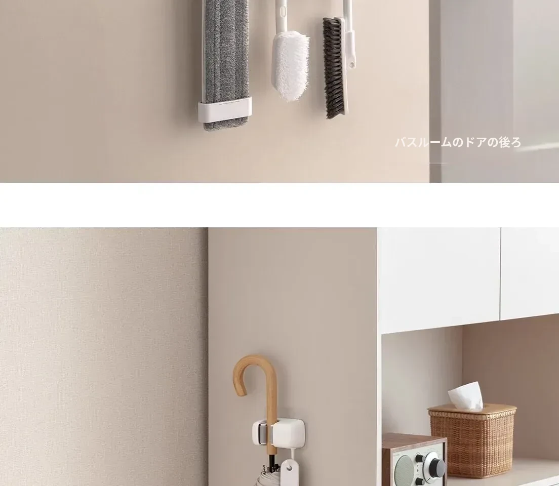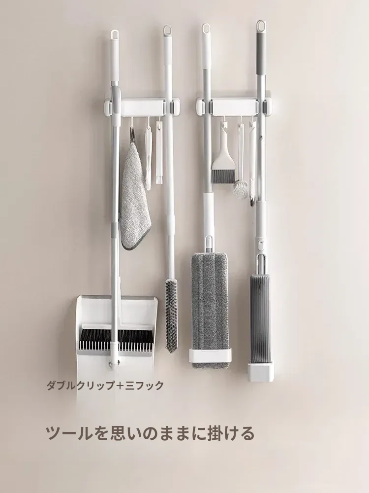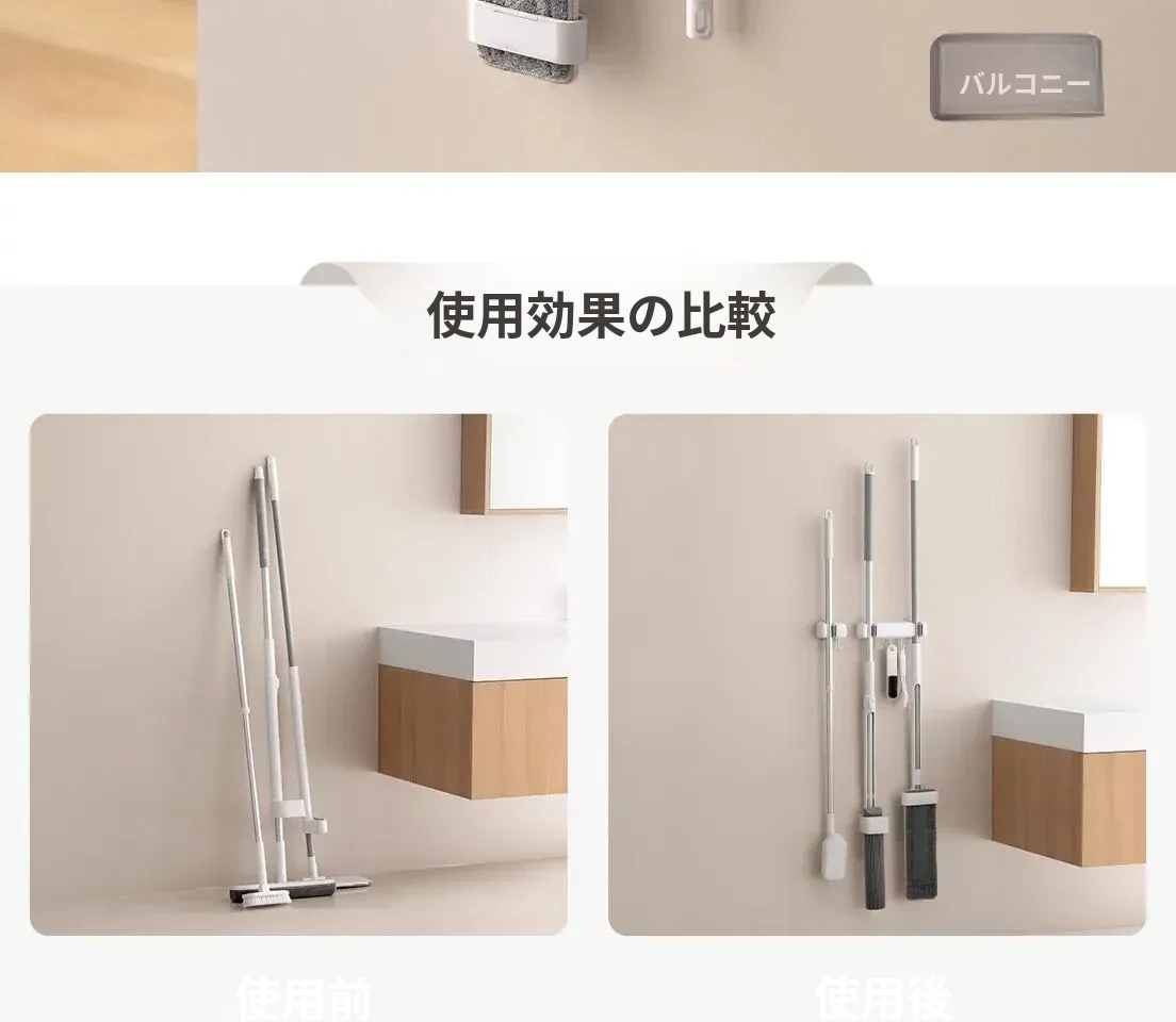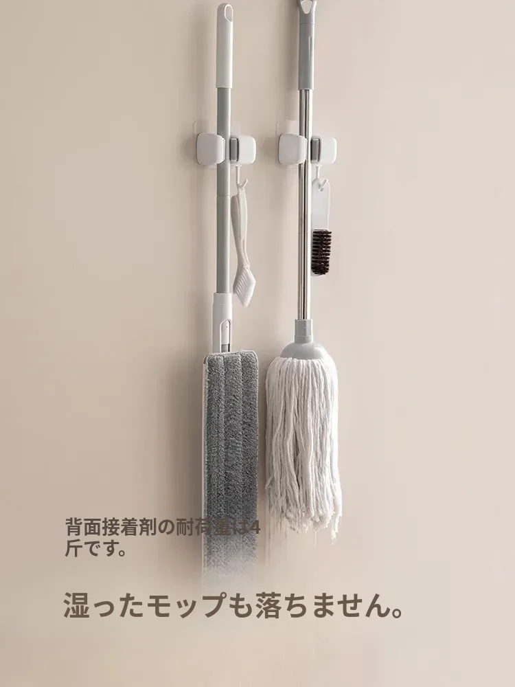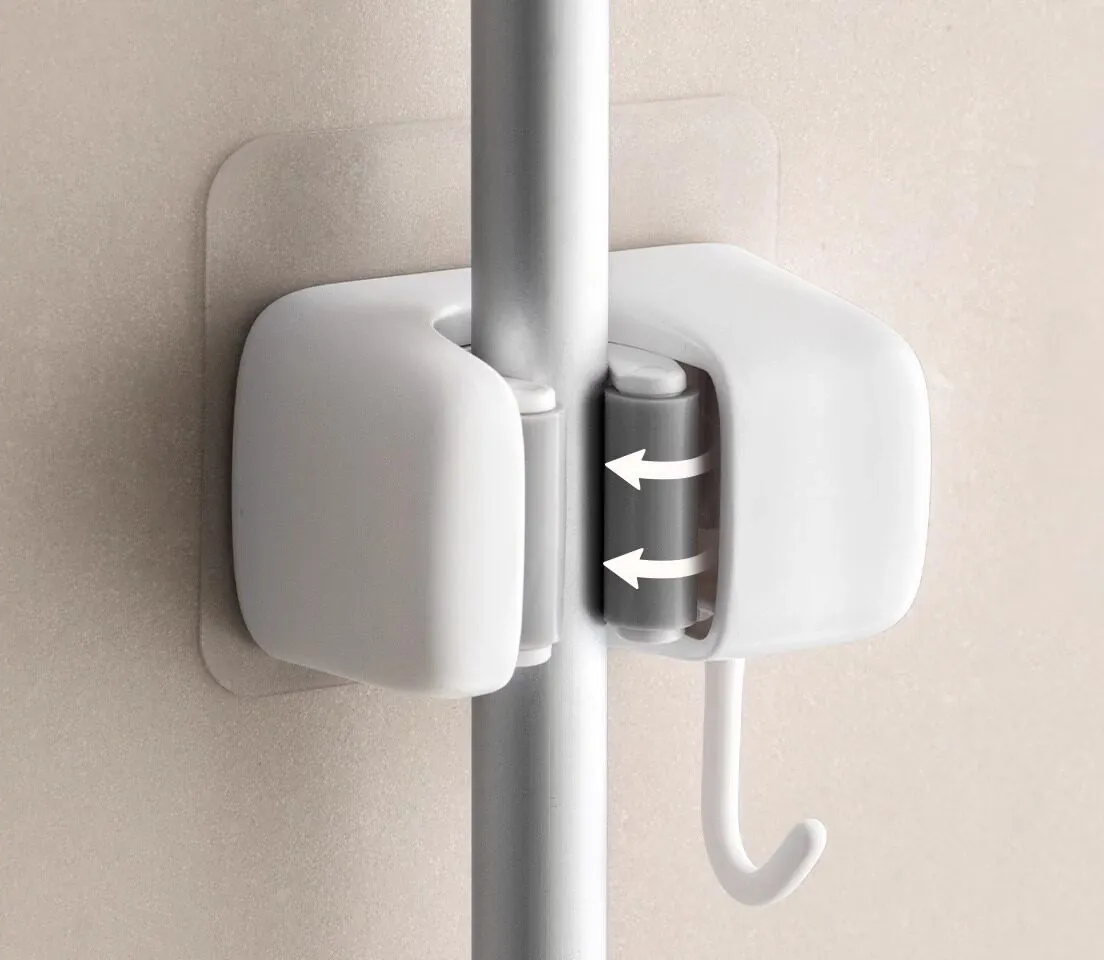 トイレ用モップフック - 穴を開けずに簡単取り付け!掃除道具の収納に最適な壁掛けクリップ。整理整頓が楽々、掃除がもっと効率的に!