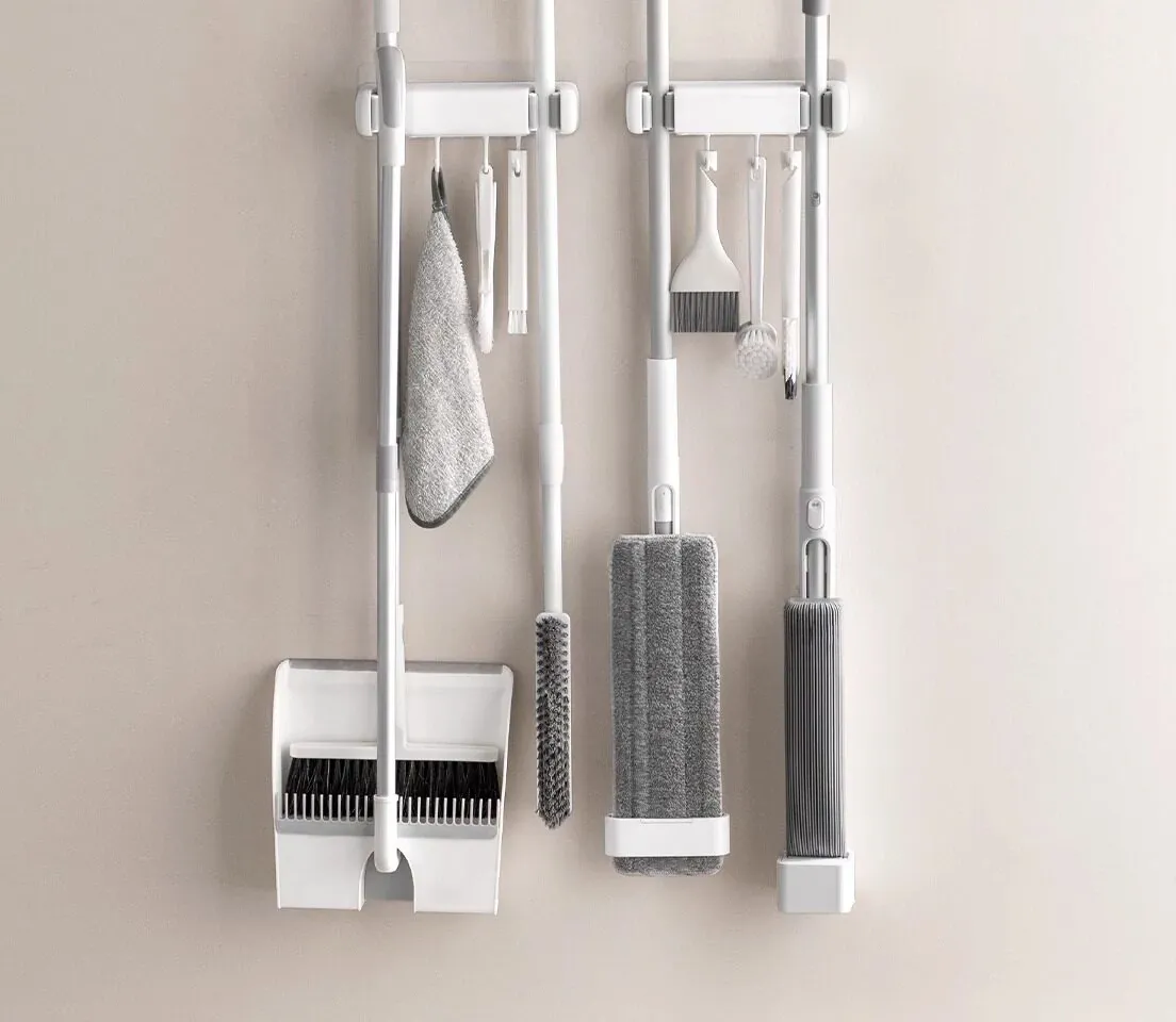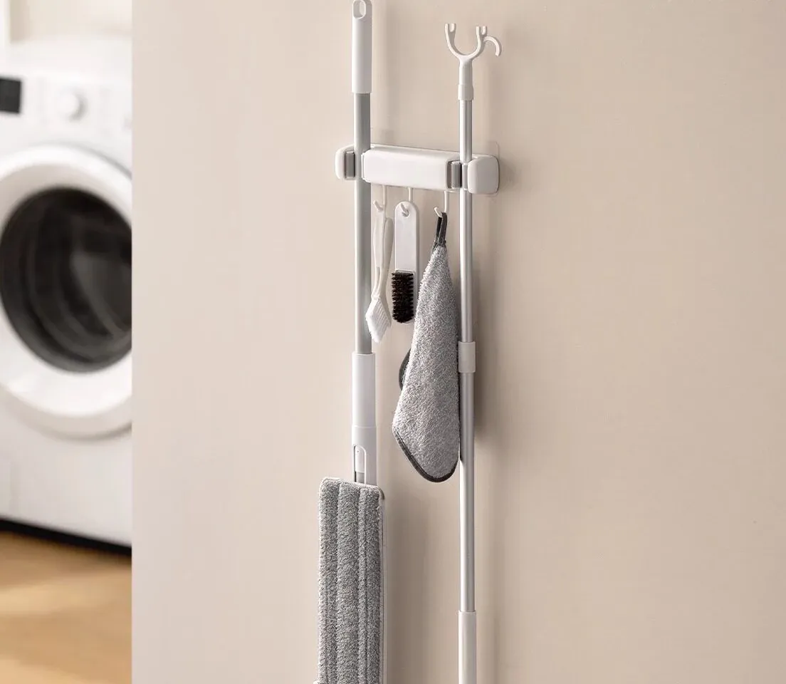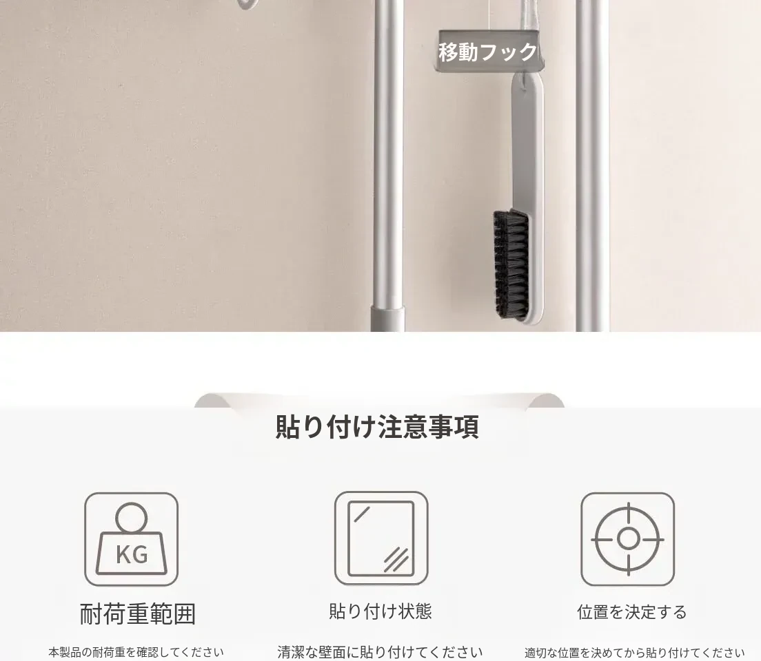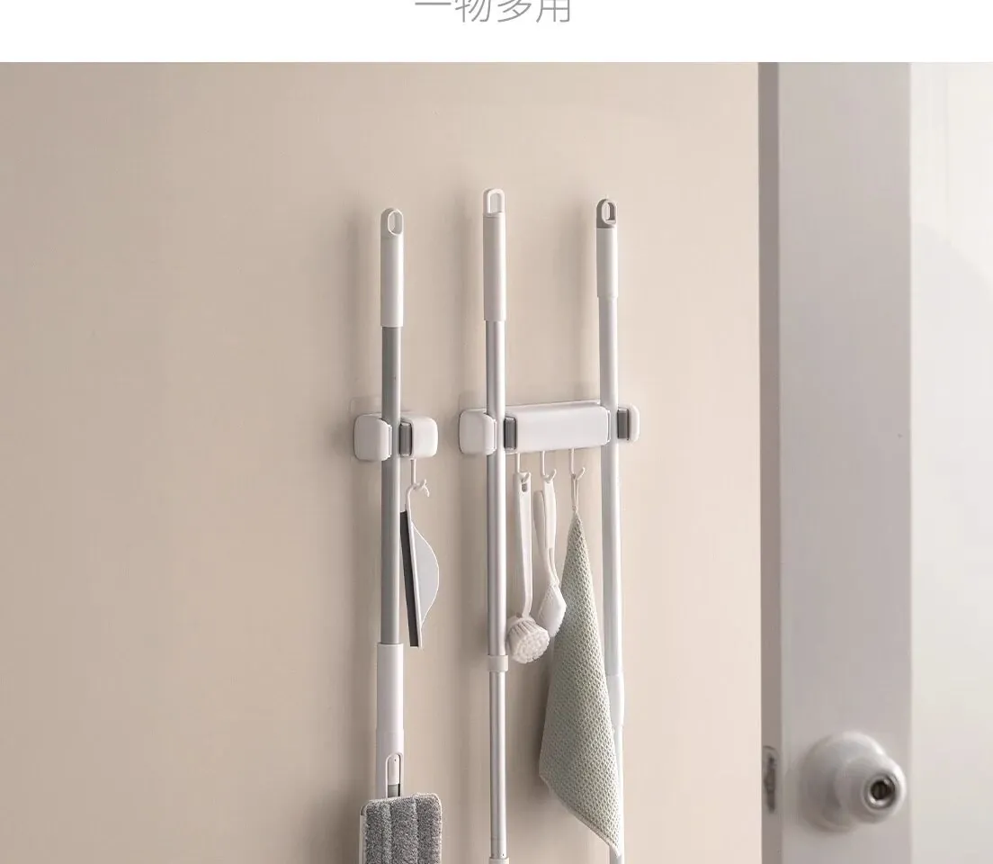 トイレ用モップフック - 穴を開けずに簡単取り付け!掃除道具の収納に最適な壁掛けクリップ。整理整頓が楽々、掃除がもっと効率的に!
