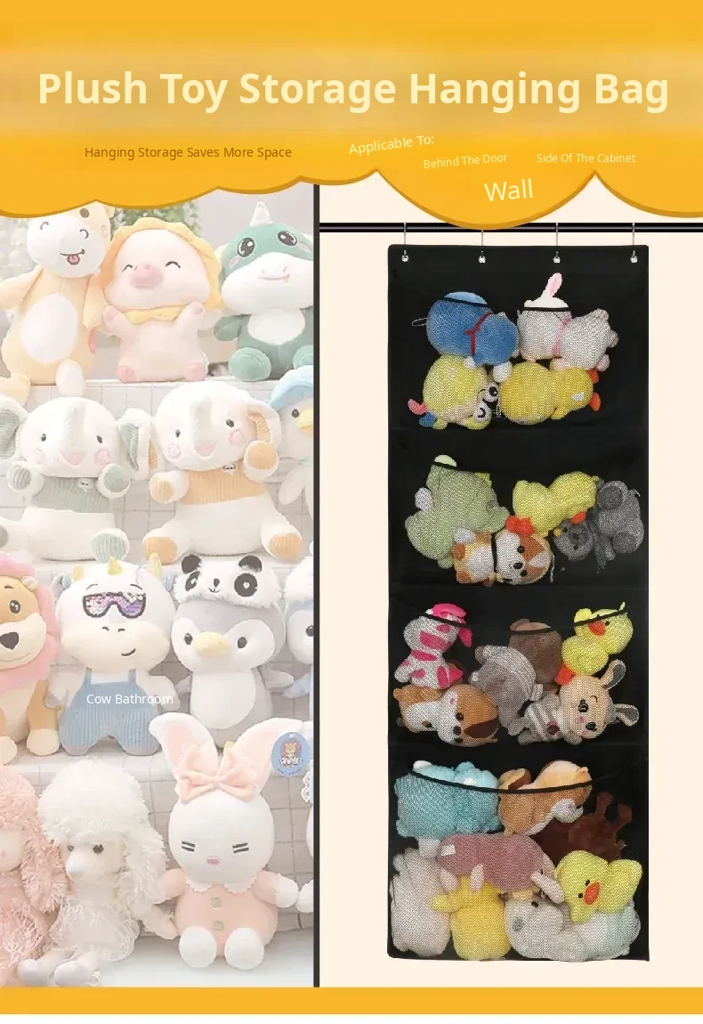 Wall-Mounted Plush Toy Storage Bag - Adorable Doll Organizer for Behind the Door, Perfect for Soft Toy and Bathroom Essentials. Keep Your Space Tidy and Fun!