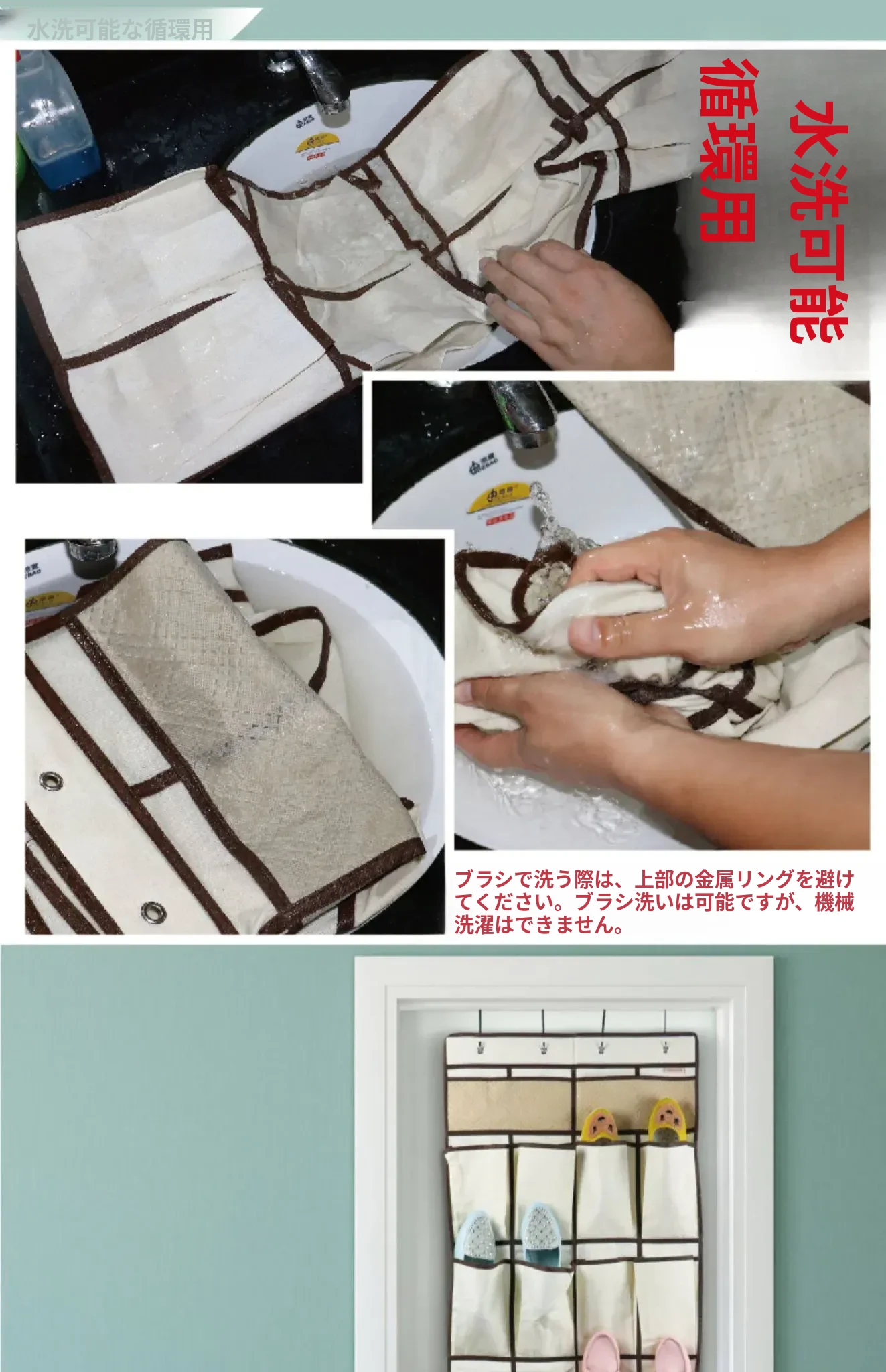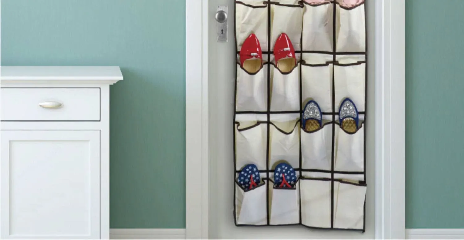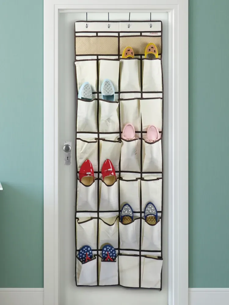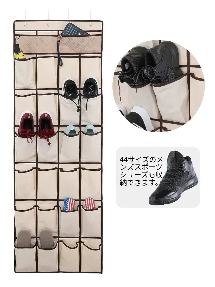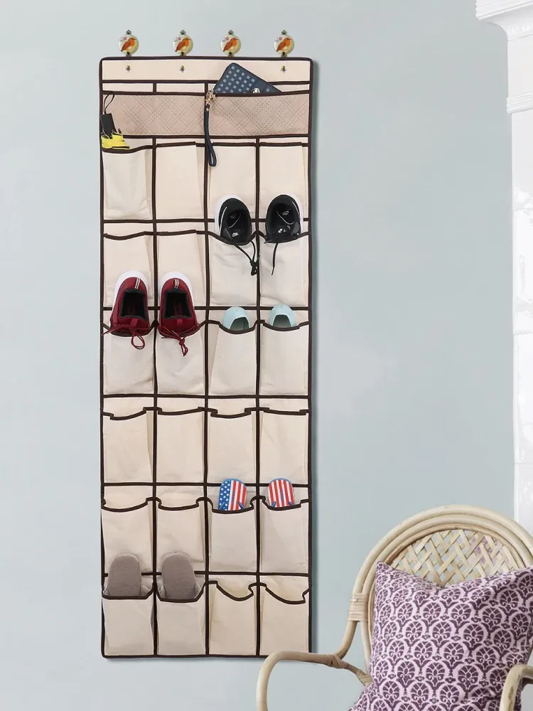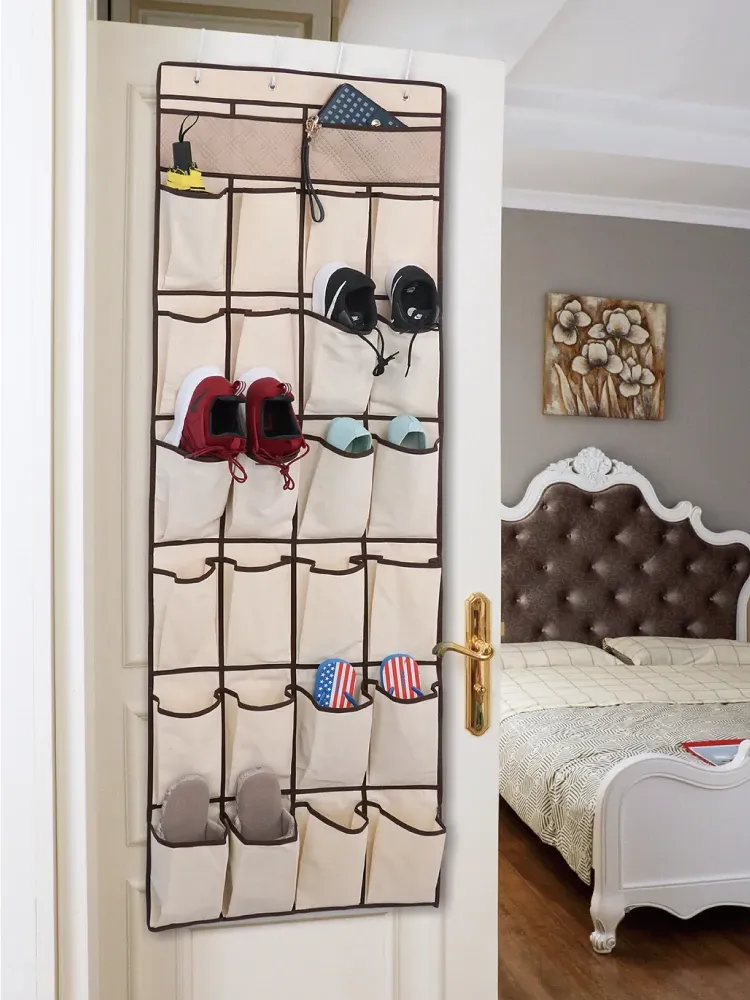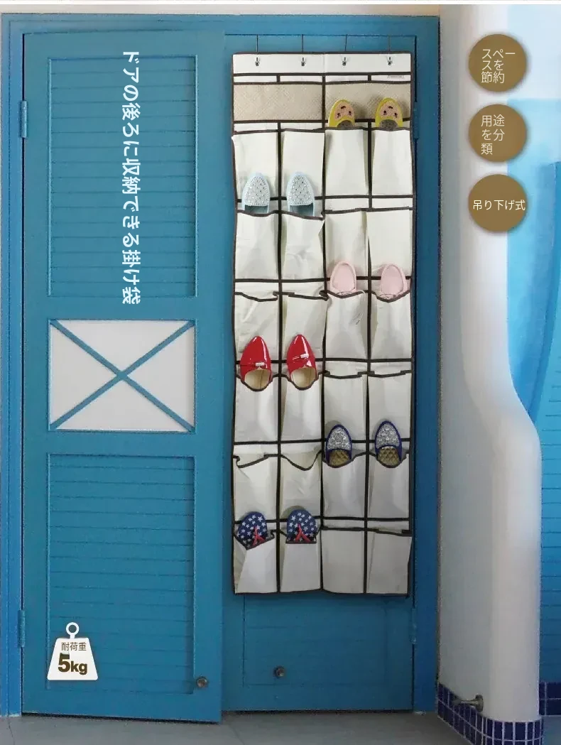壁掛け収納ポケット - 寮のドア裏に最適な多機能スリッパ収納袋!布製でスタイリッシュ、寝室の整理整頓をサポートする神アイテム!