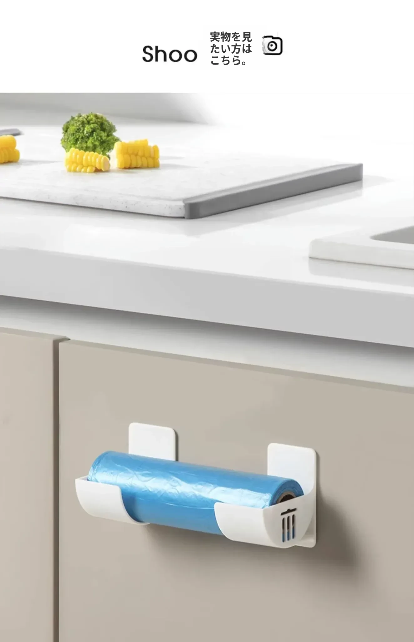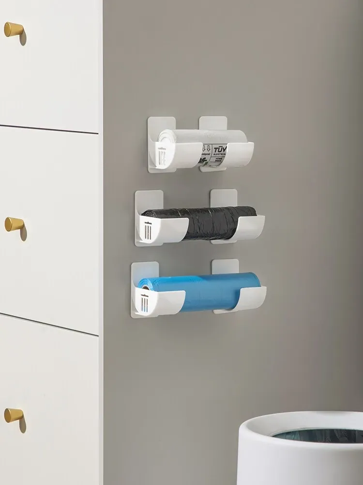 壁掛け収納棚 - 穴あけ不要で簡単取り付け!ゴミ袋やラップをスマートに収納できるキッチン・寝室用整理ラック。お部屋をスッキリ片付けて、毎日の生活をもっと快適に!