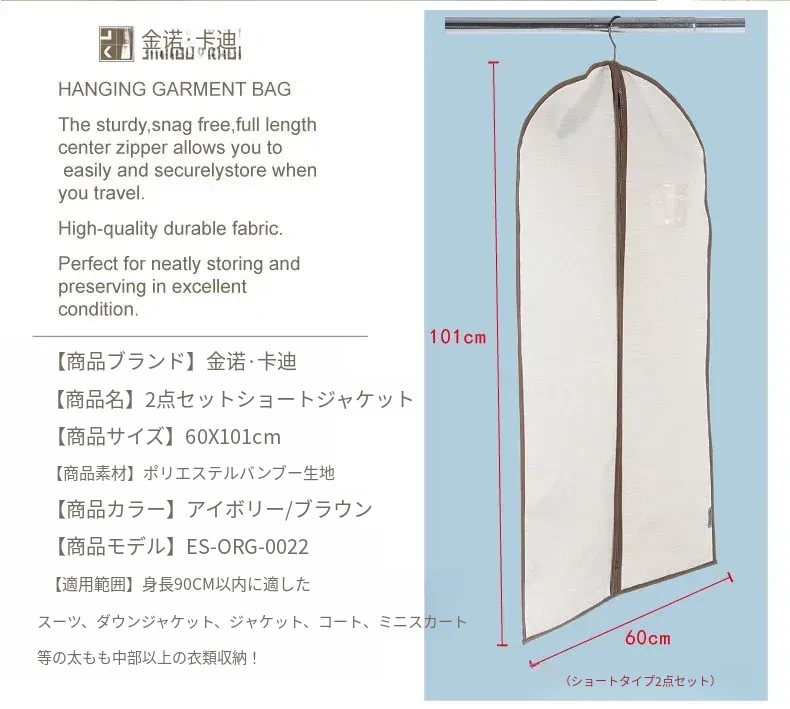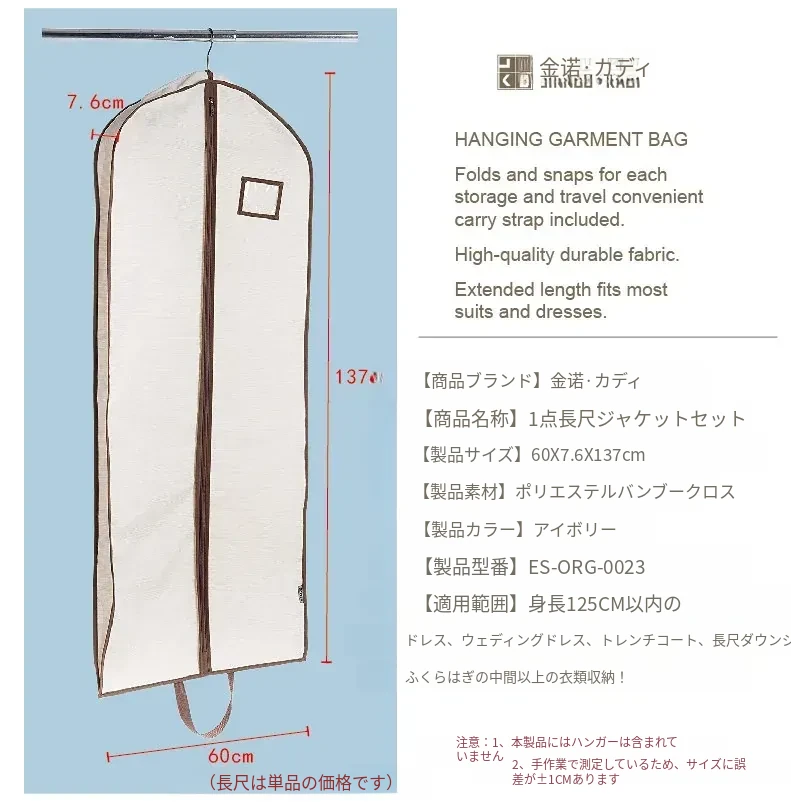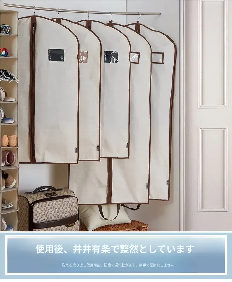 クローゼット用ハンガー式防塵袋|家庭用衣類収納カバー|スーツ・コート・ダウンジャケットをしっかりガード!スタイリッシュに収納できる便利アイテム!