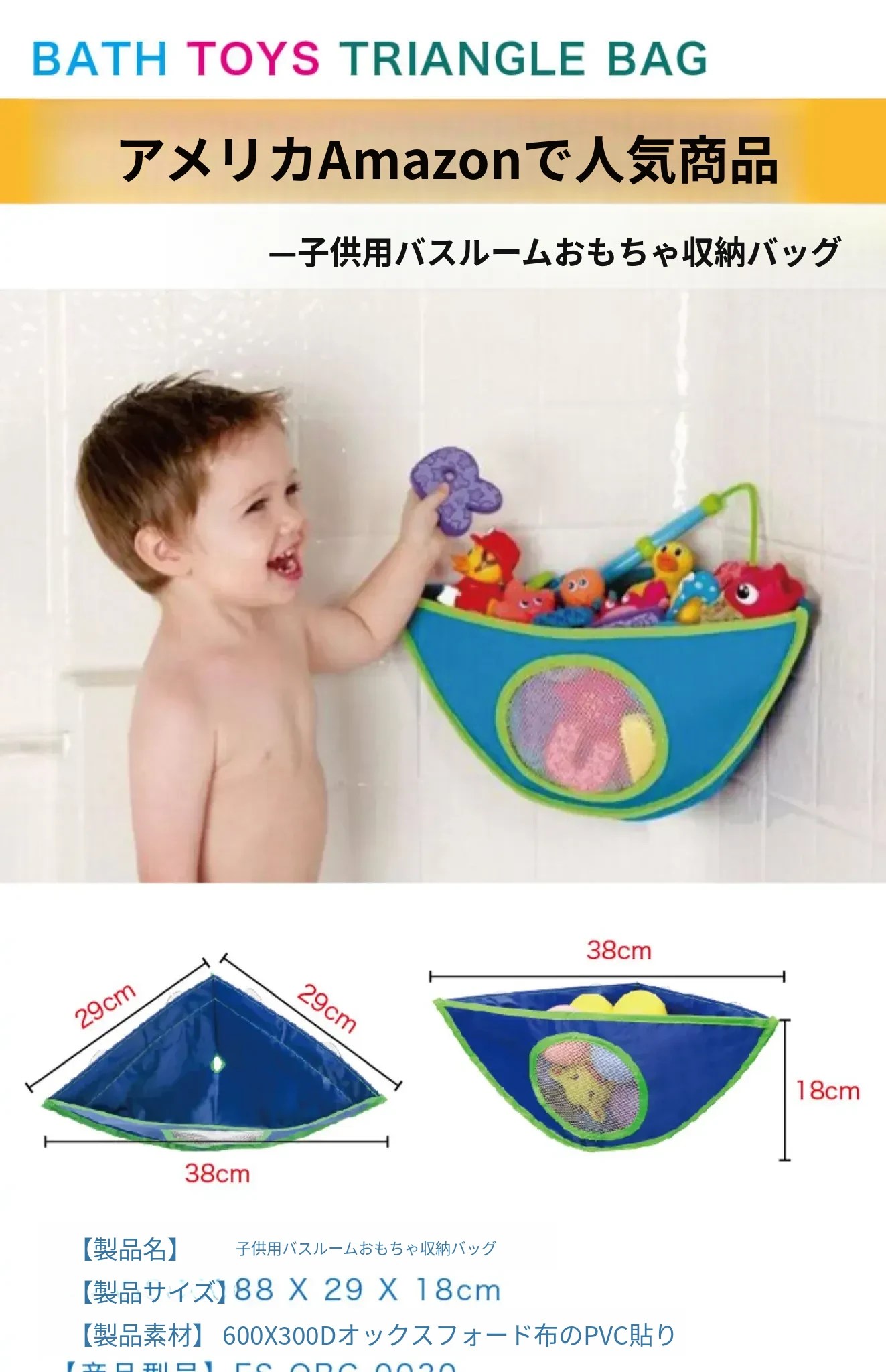 防水三角ネット壁掛け収納バッグ - お風呂で楽しく遊べる!オックスフォード生地製の子供用玩具収納袋、バスタイムがもっと楽しくなる便利アイテム!