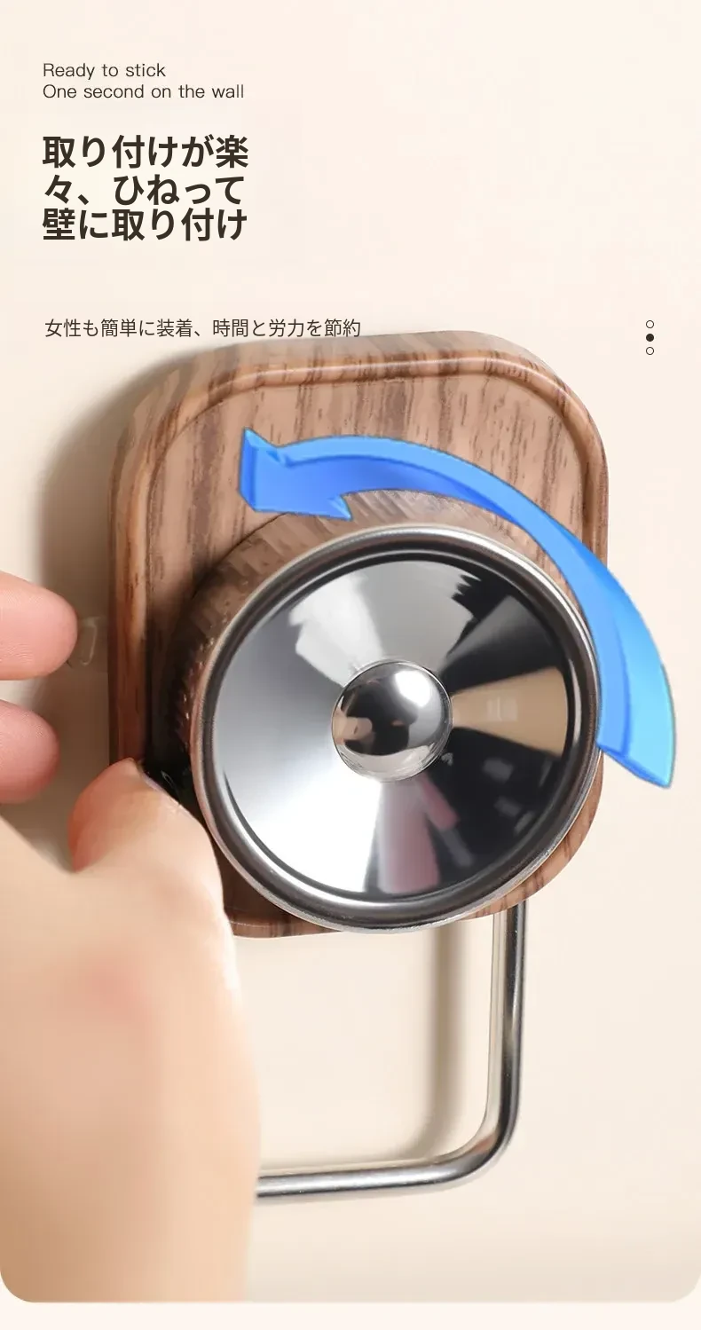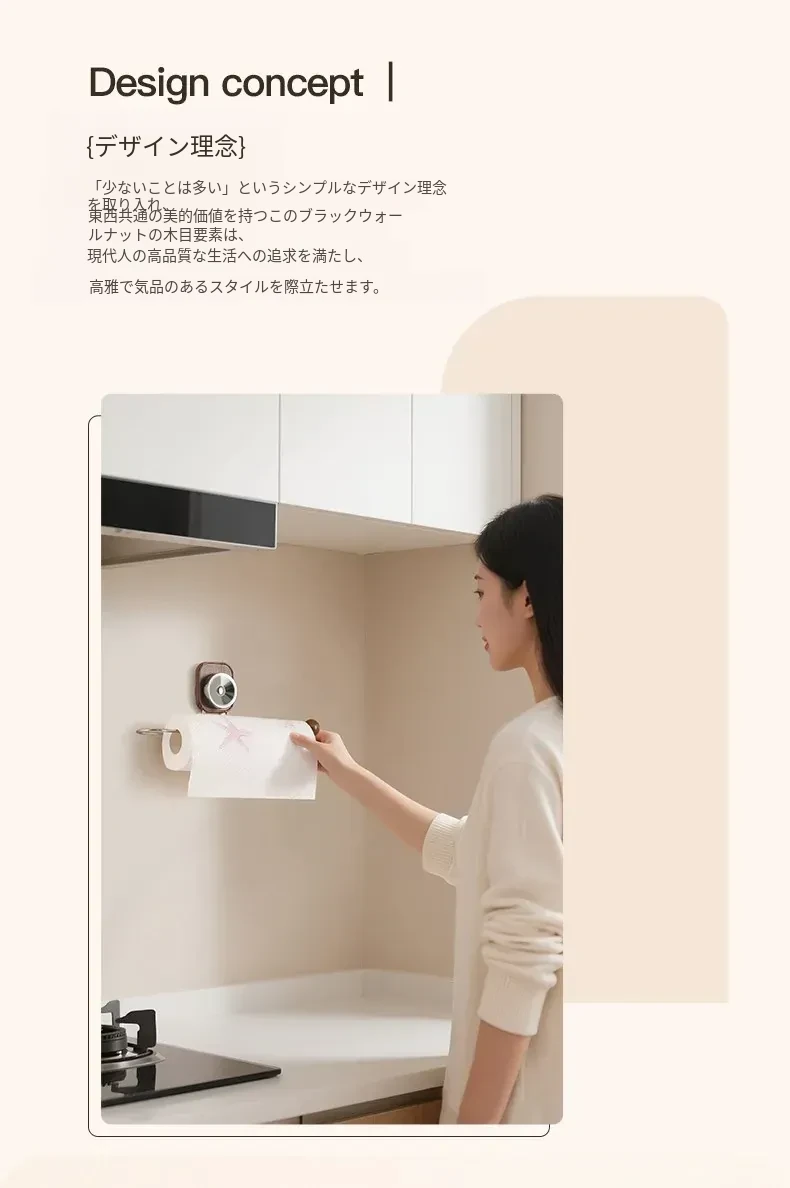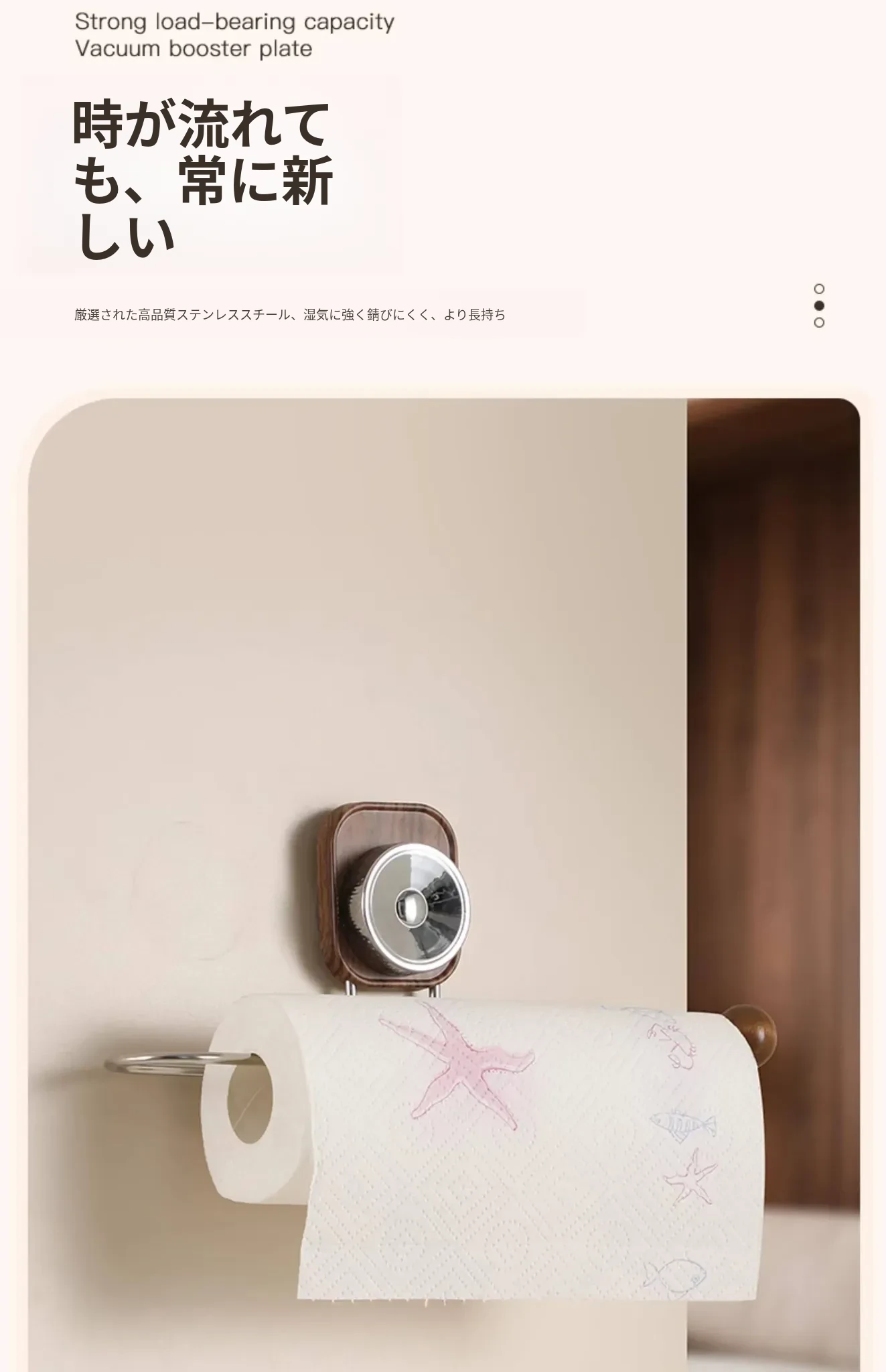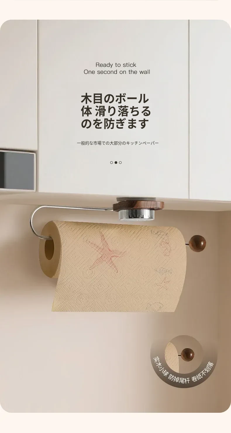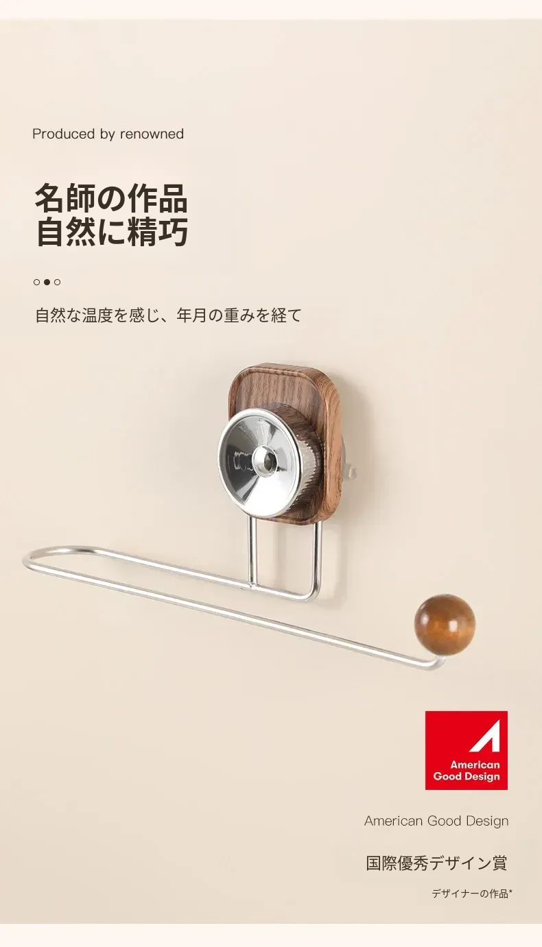 木目調キッチンペーパーラック|穴なし!強力吸盤で簡単取り付け|高級感あふれるシンプルなステンレス製収納ラック